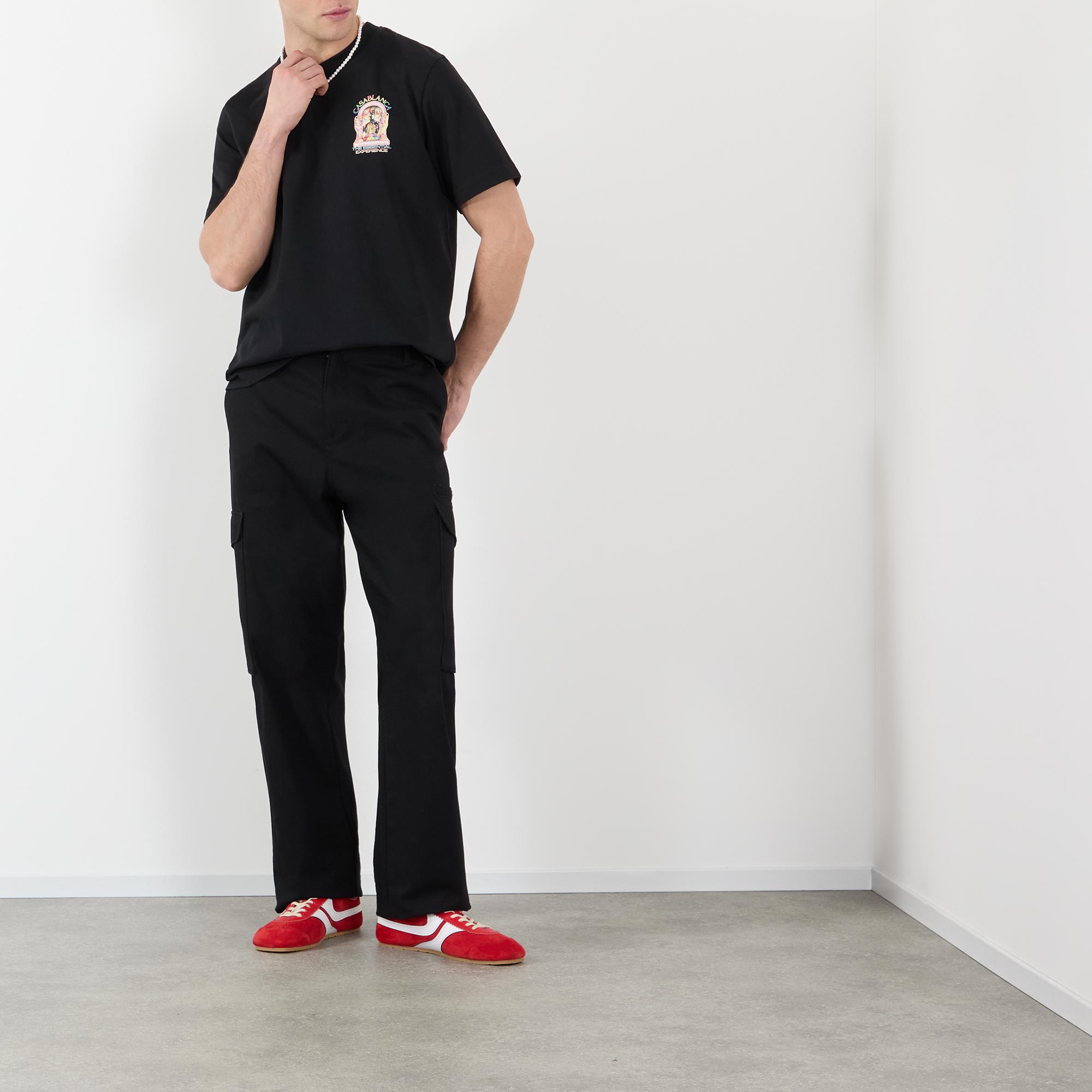 - Crew neck, short sleeves, straight hem, tonal stitching, logo graphic on the chest, enlarged logo graphic on the back