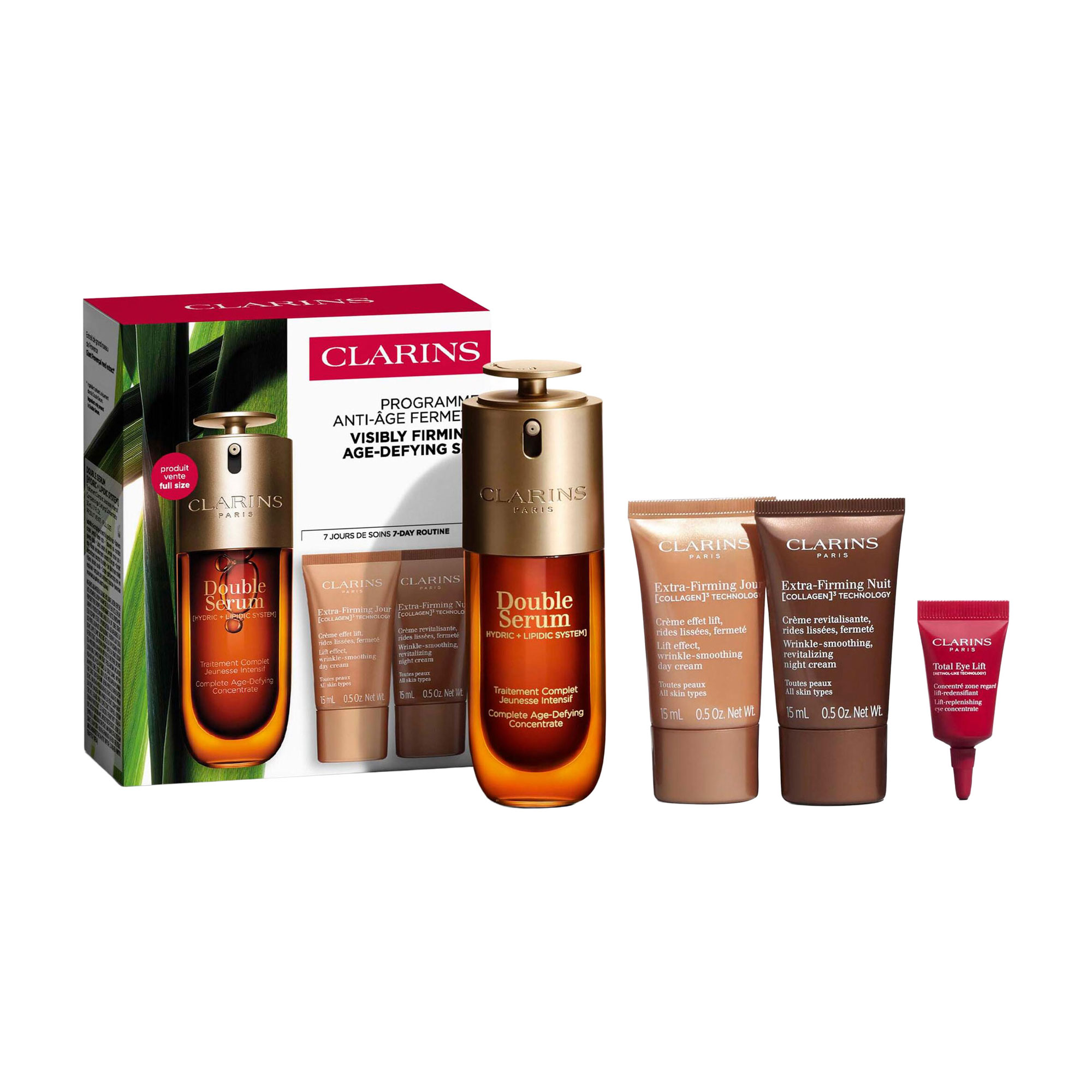 • Double Serum 50Ml - Aqua/Water/Eau. Squalane. Hexyl Laurate. Glycerin. Pentylene Glycol. Propanediol. Silybum Marianum Seed Oil. Butylene Glycol. Ethylene/Propylene/Styrene Copolymer. Parfum/Fragrance. Fructose. Tromethamine. Carbomer. Hydroxyacetophenone. Avena Sativa (Oat) Kernel Extract. Escin. Tocopheryl Acetate. Ethylhexylglycerin. Aloe Barbadensis Leaf Juice Powder. Sodium Acetylated Hyaluronate. Theobroma Cacao (Cocoa) Extract. Caprylic/Capric Triglyceride. Aesculus Hippocastanum (Horse Chestnut) Extract. Leontopodium Alpinum Flower/Leaf Extract. Disodium Edta. Maltodextrin. Xanthan Gum. Butylene/Ethylene/Styrene Copolymer. Curcuma Longa (Turmeric) Root Extract. Persea Gratissima (Avocado) Oil Unsaponifiables. Melissa Officinalis Leaf Extract. Caramel. Hippophae Rhamnoides Kernel Extract. Sodium Lactate. Musa Sapientum (Banana) Fruit Extract. Oenothera Biennis (Evening Primrose) Flower/Leaf/Stem Extract. Harungana Madagascariensis Extract. Kalanchoe Pinnata Leaf Extract. Mangifera Indica (Mango) Leaf Extract. Sodium Benzoate. Citric Acid. Centaurea Cyanus Flower Extract. Tocopherol. Hedychium Coronarium Root Extract. Coco-Glucoside. Pentaerythrityl Tetra-Di-T-Butyl Hydroxyhydrocinnamate. Dipsacus Sylvestris Extract. Glycine Soja (Soybean) Oil. Arundo Donax Stem Extract. Jania Rubens Extract. Potassium Sorbate. Sodium Citrate. Malpighia Emarginata (Acerola) Seed Extract. Arbutus Unedo Fruit Extract. Palmitoyl Tripeptide-1. Ci 14700/Red 4. Palmitoyl Tetrapeptide-7. [V4234A] Extra-Firming Day Cream 15Ml - Aqua/Water/Eau. Hexyl Laurate. Dicaprylyl Carbonate. Glycerin. Cetearyl Alcohol. Niacinamide. Tapioca Starch. 1,2-Hexanediol. Glyceryl Stearate. Peg-100 Stearate. Argania Spinosa Kernel Oil. Cetearyl Glucoside. Parfum/Fragrance. Butylene Glycol. Carbomer. Hydroxyacetophenone. Avena Sativa (Oat) Kernel Extract. Disodium Edta. Ethylhexylglycerin. Tocopheryl Acetate. Pentylene Glycol. Dimethicone. Sodium Hydroxide. Aloe Barbadensis Leaf Juice Powder. Propanediol. Caprylic/Capric Triglyceride. Betaine. Sorbitol. Dimethiconol. Marrubium Vulgare Extract. Maltodextrin. Orthosiphonstamineus Extract. Xanthan Gum. Sodium Benzoate. Balanites Roxburghii Seed Oil. Mitracarpus Scaber Extract. Phenethyl Alcohol. Carya Illinoinensis (Pecan) Shell Extract. Furcellaria Lumbricalis Extract. Tocopherol. Ci 15985/Yellow 6. Lapsana Communis Flower/Leaf/Stem Extract. Maris Sal/Sea Salt/Sel Marin. Arginine/Lysine Polypeptide. [V4461A] Extra-Firming Night Cream 15Ml - Aqua/Water/Eau. Dicaprylyl Carbonate. Caprylic/Capric Triglyceride. Glycerin. Cetearyl Alcohol. Hydrogenated Coco-Glycerides. Niacinamide. 1,2-Hexanediol. Glyceryl Stearate. Peg-100 Stearate. Argania Spinosa Kernel Oil. Hydroxyethyl Acrylate/Sodium Acryloyldimethyl Taurate Copolymer. Cetearyl Glucoside. Cellulose. Hydroxyacetophenone. Parfum/Fragrance. Butylene Glycol. Avena Sativa (Oat) Kernel Extract. Disodium Edta. Ethylhexylglycerin. Tocopheryl Acetate. Pentylene Glycol. Aloe Barbadensis Leaf Juice Powder. Propanediol. Maltodextrin. Polysorbate 60. Sorbitan Isostearate. Persea Gratissima (Avocado) Fruit Extract. Betaine. Sorbitol. Marrubium Vulgare Extract. Orthosiphon Stamineus Extract. Xanthan Gum. Sodium Benzoate. Balanites Roxburghii Seed Oil. Mitracarpus Scaber Extract. Phenethyl Alcohol. Tocopherol. Carya Illinoinensis (Pecan) Shell Extract. Furcellaria Lumbricalis Extract. Lapsana Communis Flower/Leaf/Stem Extract. Maris Sal/Sea Salt/Sel Marin. Arginine/Lysine Polypeptide. [V4462A] Total Eye Lift 3Ml - Aqua/Water/Eau. Caprylic/Capric Triglyceride. Propanediol. Cetearyl Alcohol. Butyrospermum Parkii (Shea) Butter. Hydrogenated Coco-Glycerides. Pentylene Glycol. Panthenol. Glycerin. Glyceryl Stearate. Peg-100 Stearate. Cetearyl Glucoside. Caffeine. Steareth-21. Hydroxyacetophenone. Dimethicone. Chlorphenesin. Avena Sativa (Oat) Kernel Extract. Carbomer. Ethylhexylglycerin. Pvp. Tocopheryl Acetate. Ci 77891/Titanium Dioxide. Synthetic Fluorphlogopite. Disodium Edta. Escin. P