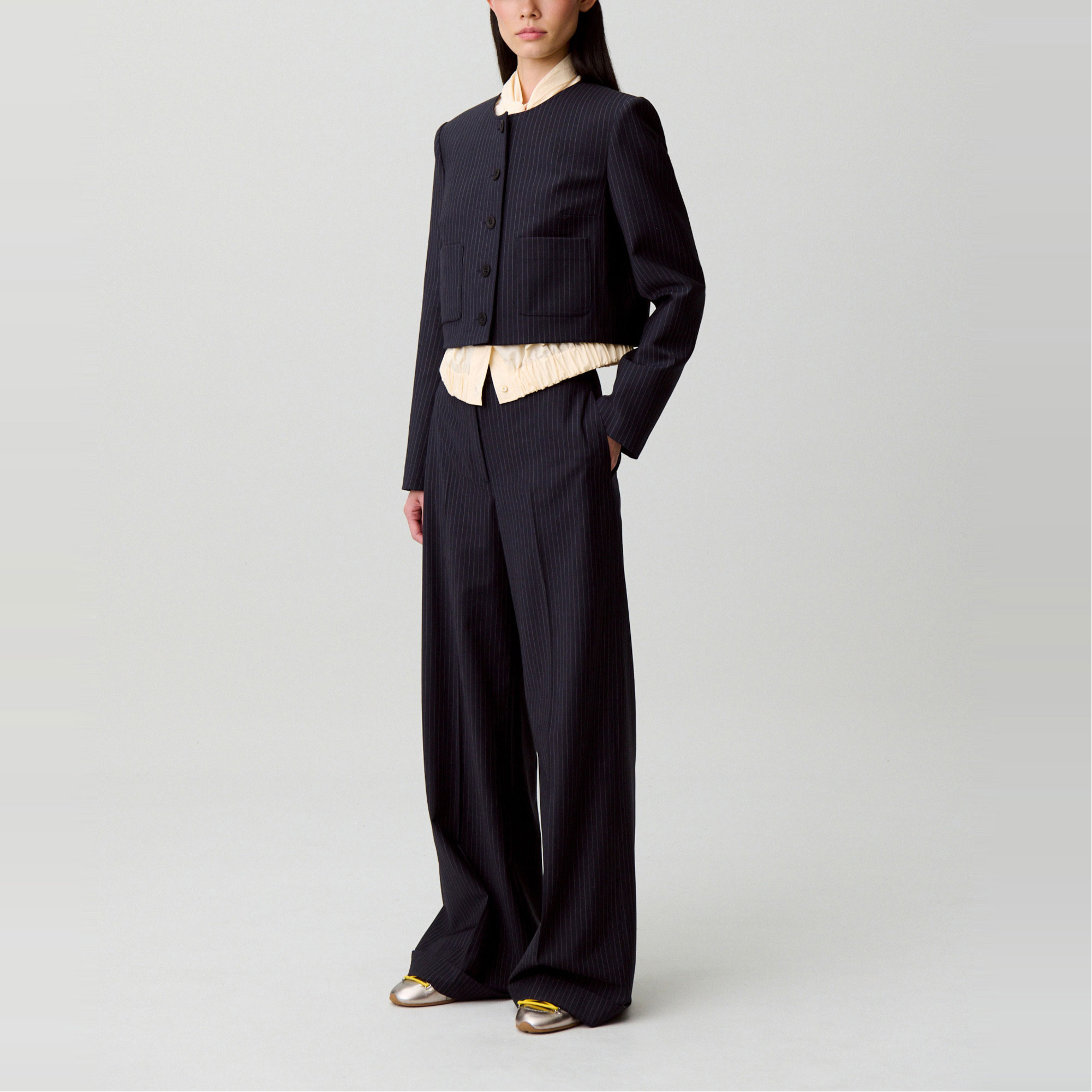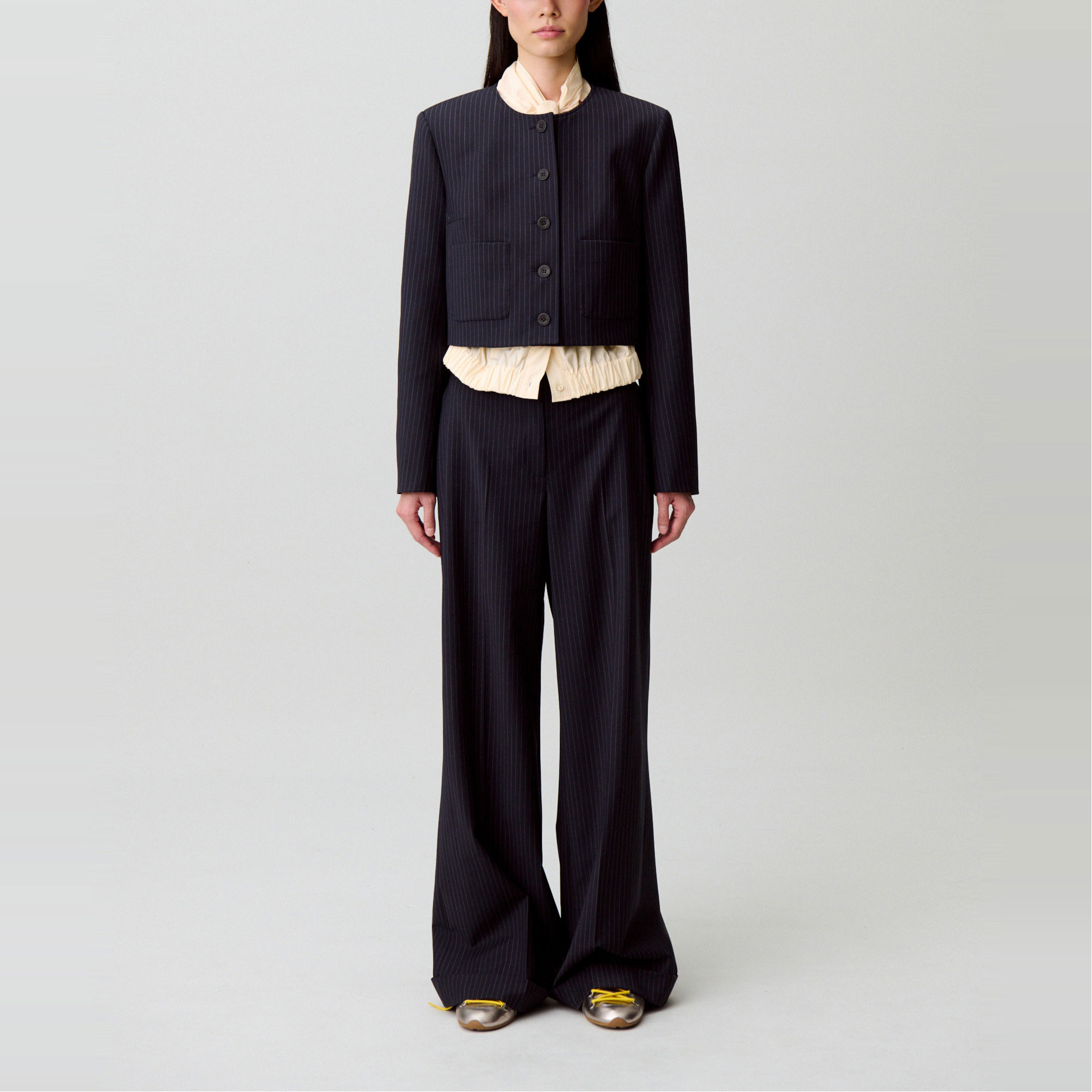 Quantity for Pinstripe Cropped Jacket