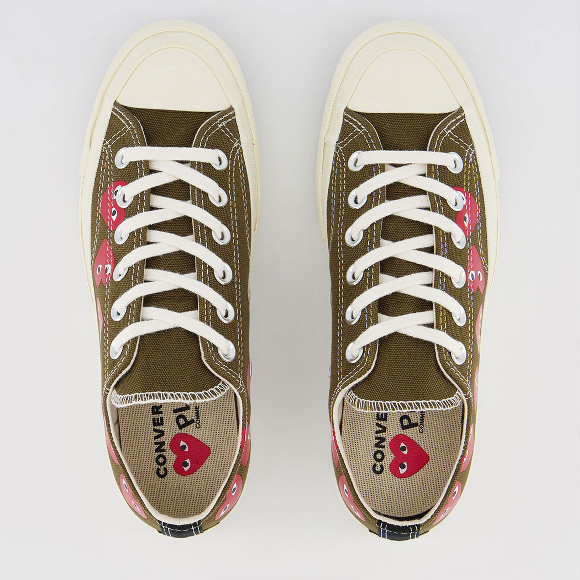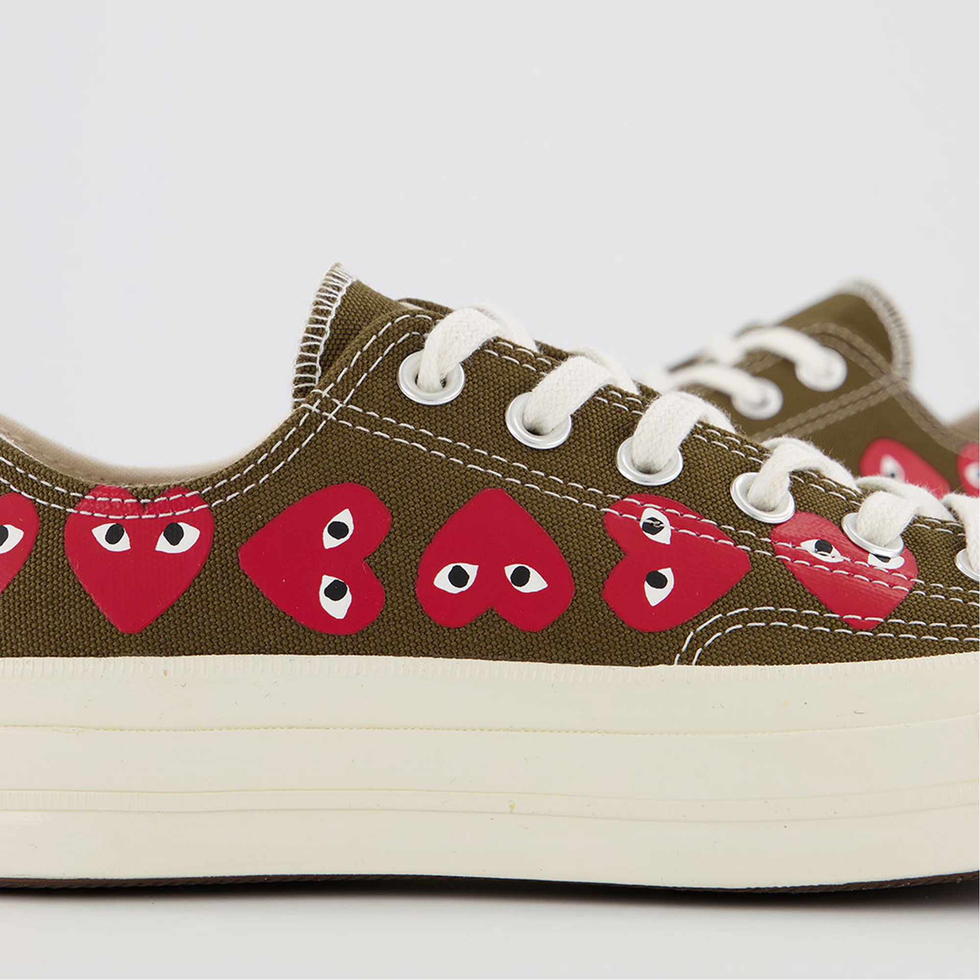 - Lace-up fastening, playful CDG bug-eye heart by Filip Pagowski detail, low-top
