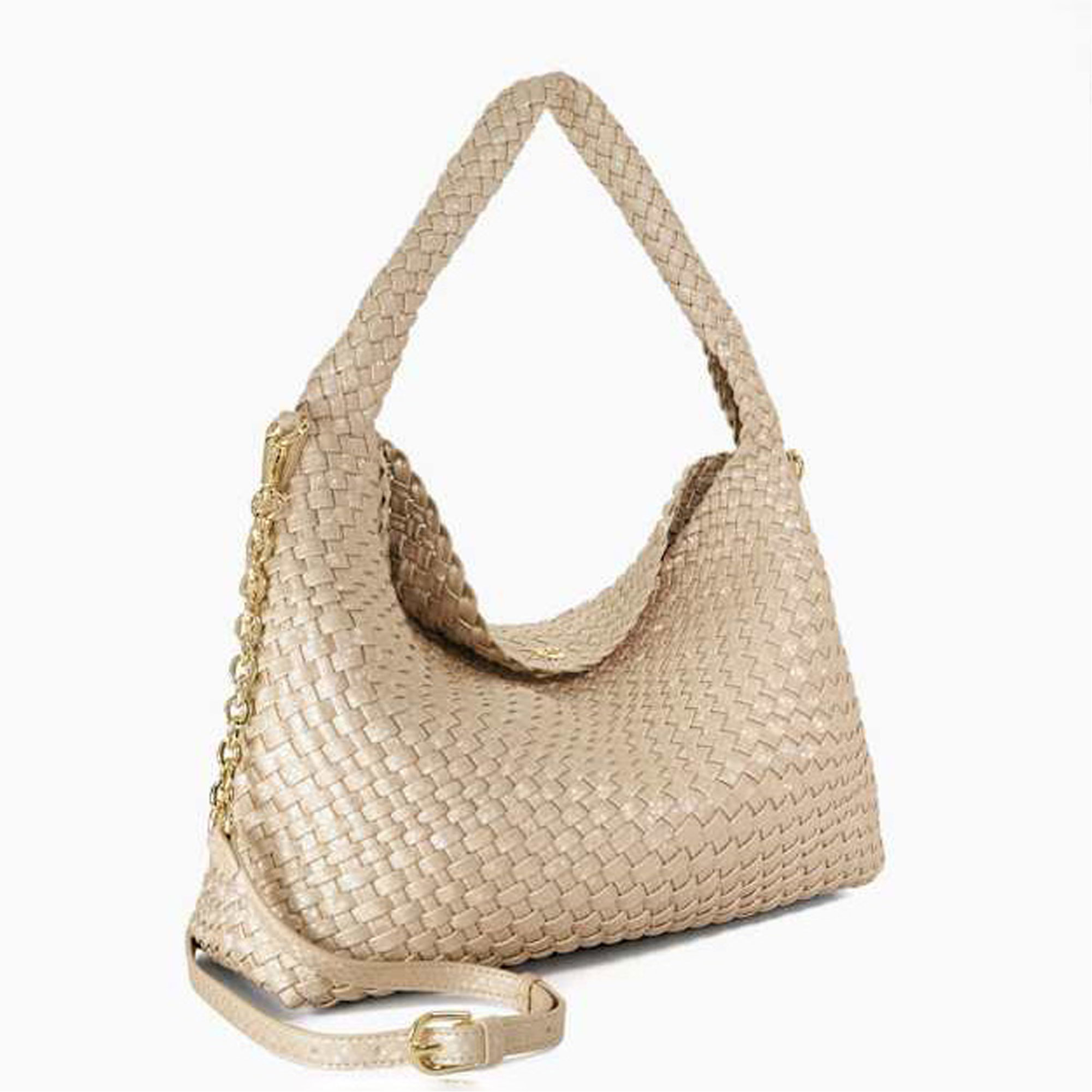- Modern yet timeless silhouette, hand-woven texture, luxurious finish, branded closure, adjustable strap for hands-free styling