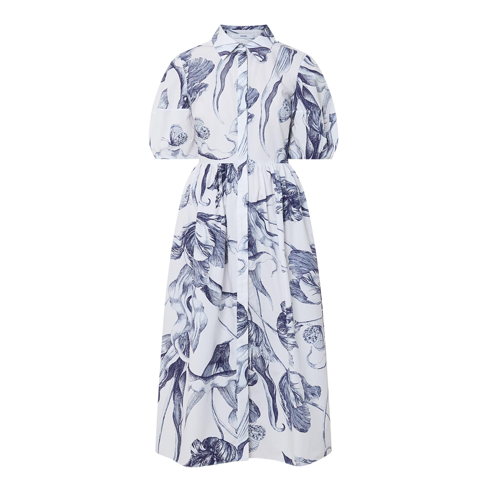 Erdem take inspiration from scientific drawings by naturalist Maria Sibylla Merian in the design of floral prints this season, which can be seen adorning this dress. Cut from a heavy poplin, it features a collared neckline and short puff sleeves, falling to a voluminous midi-length hemline.