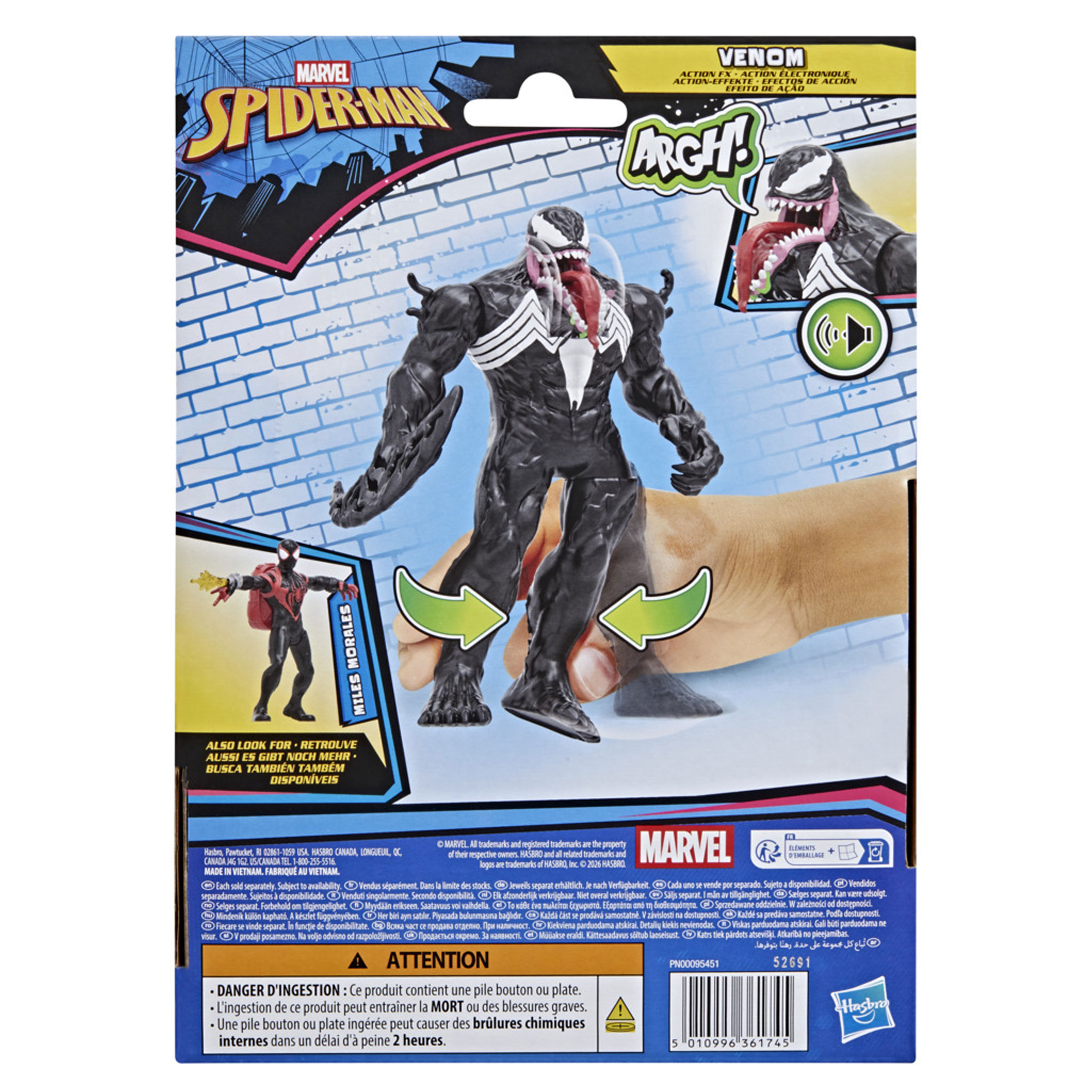 - Venom Action FX figure, symbiote suit design, six unique sound effects, collectible action figure