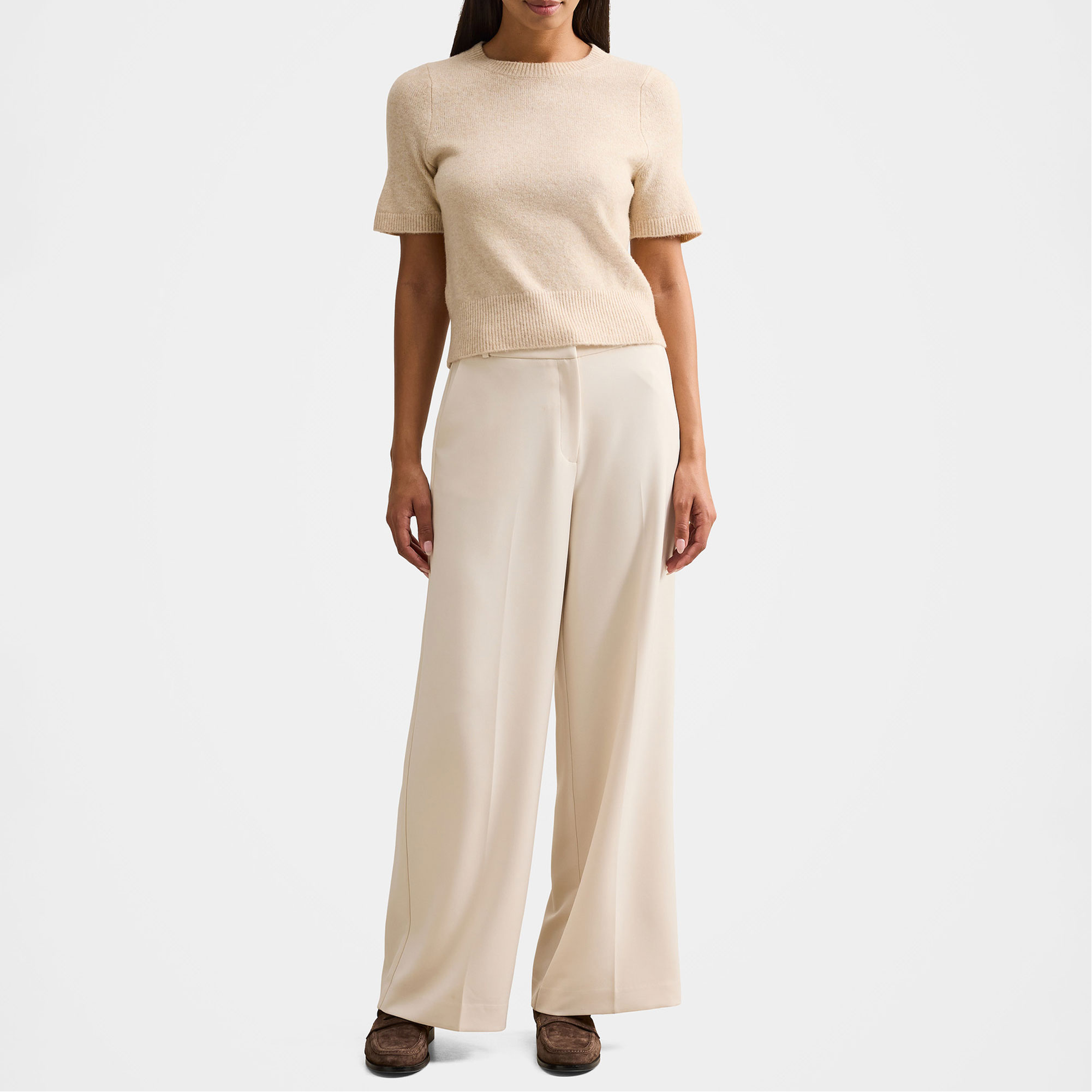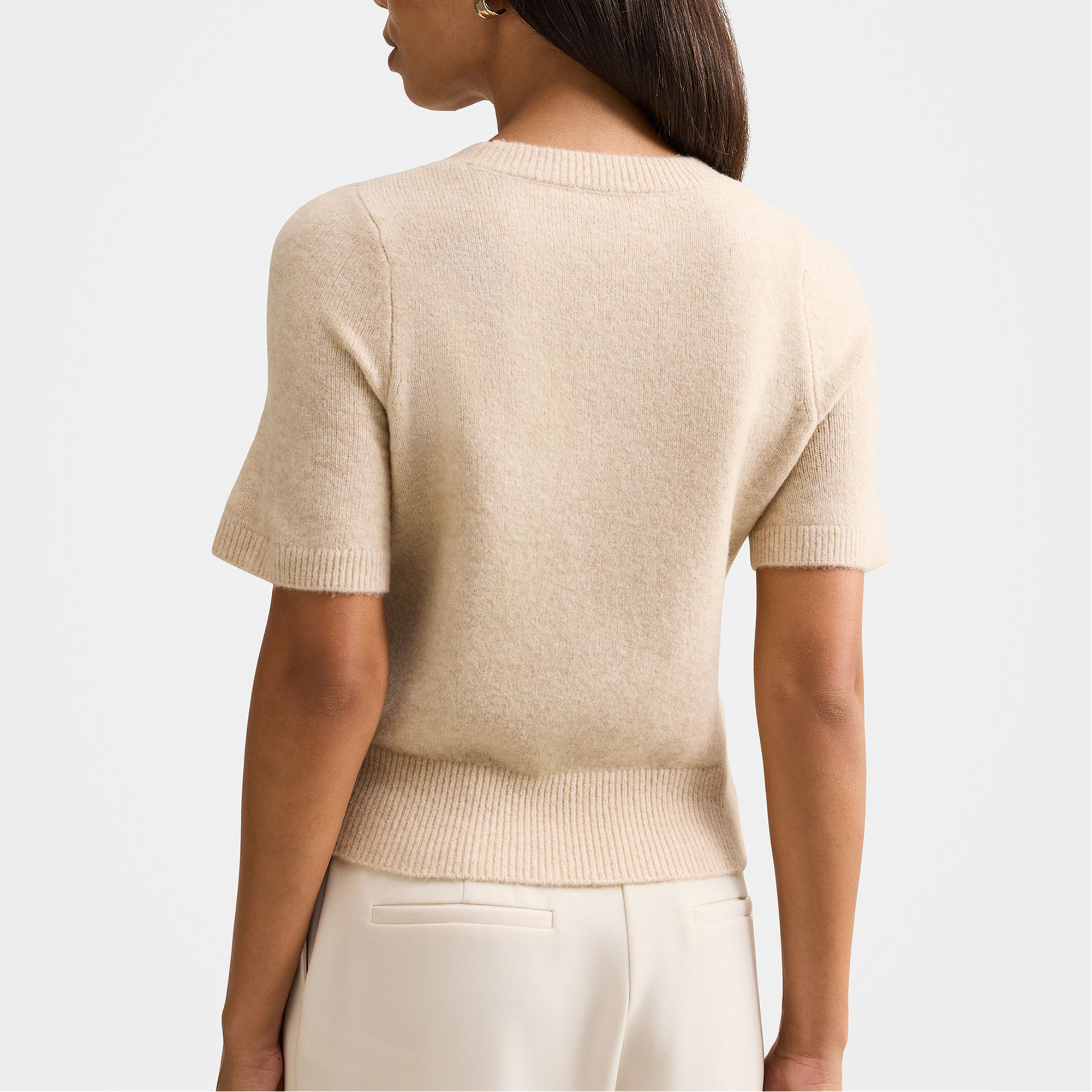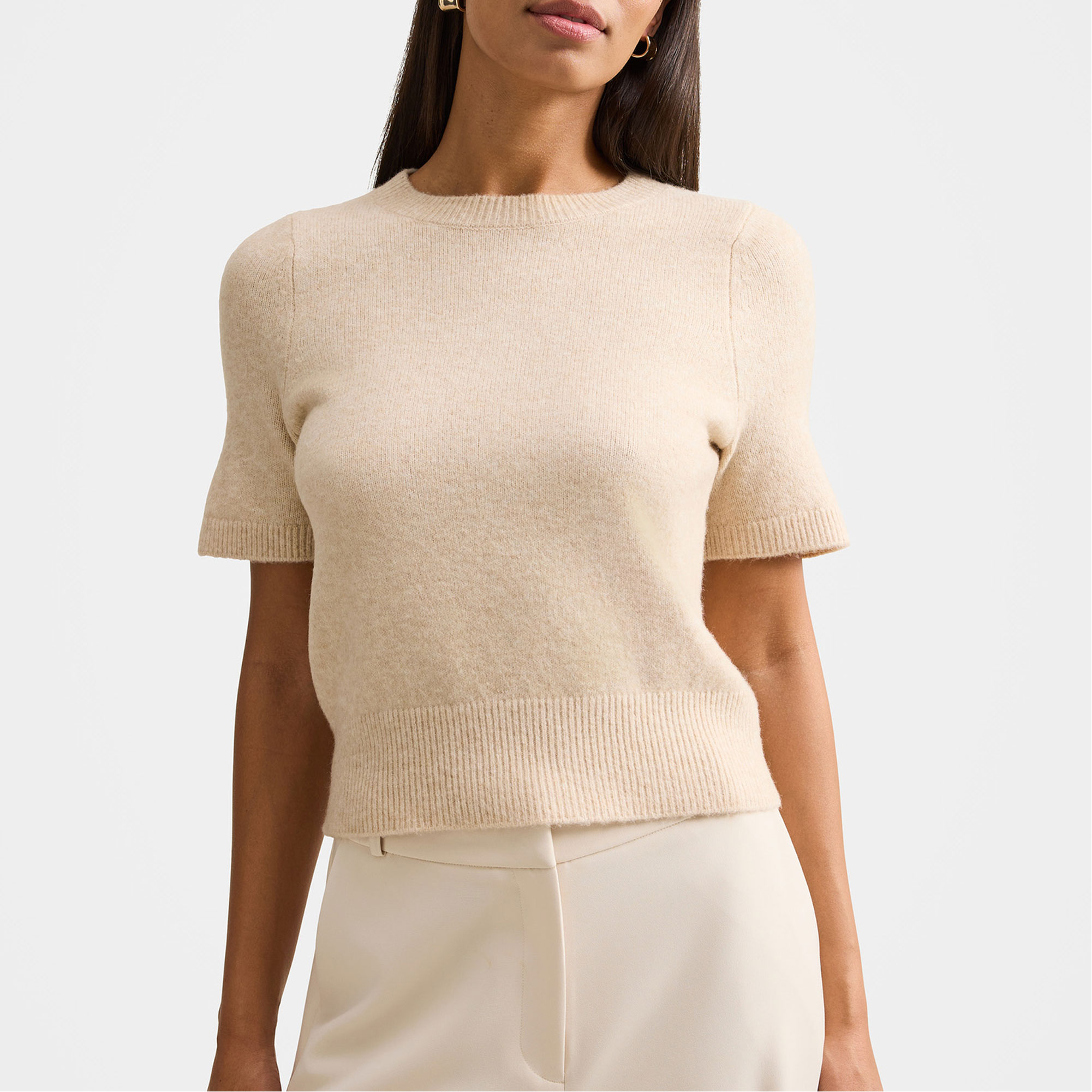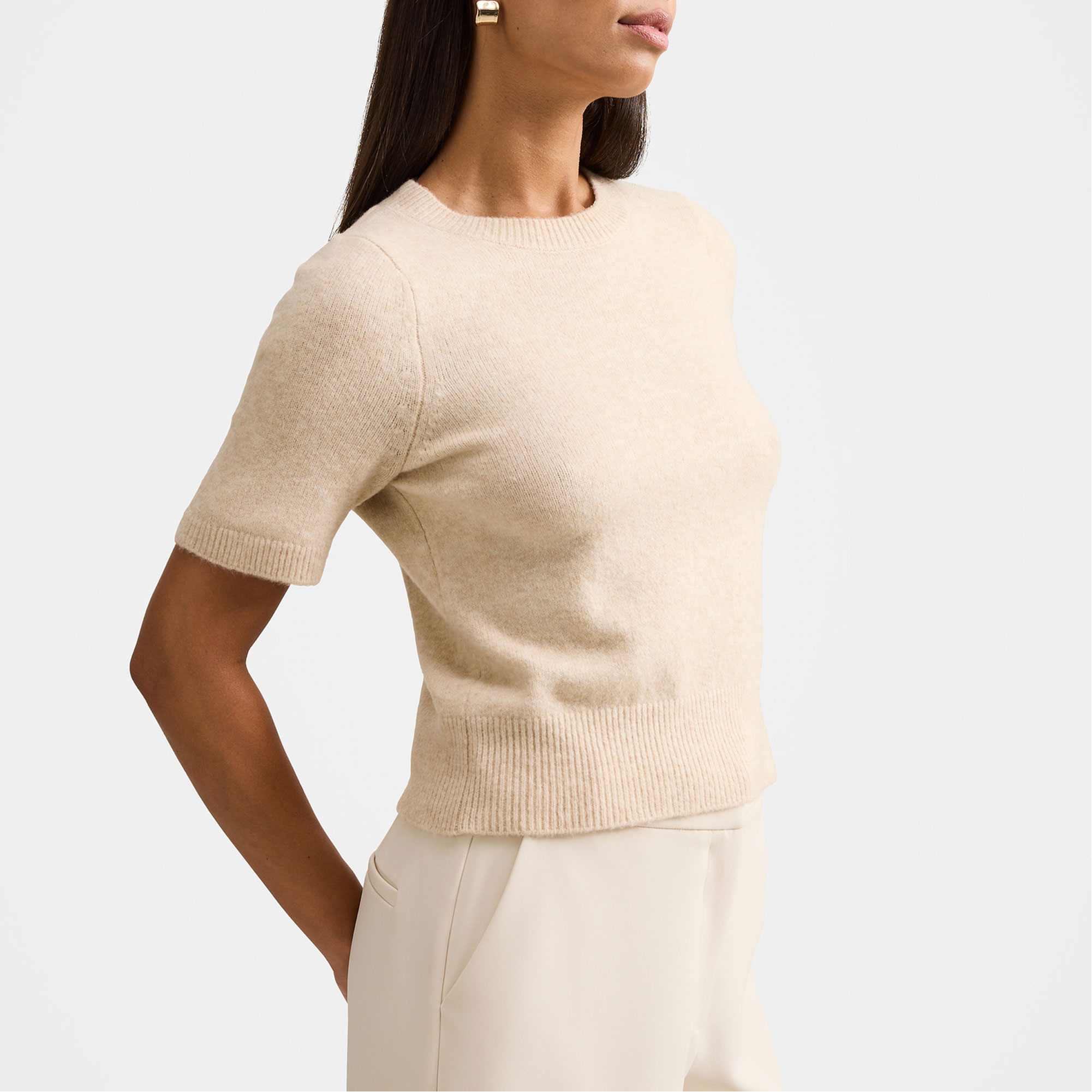 - Wool-blend fabrication, classic round neckline, ribbed hem, neck and sleeve edge, half sleeves length, easy slip-on style
