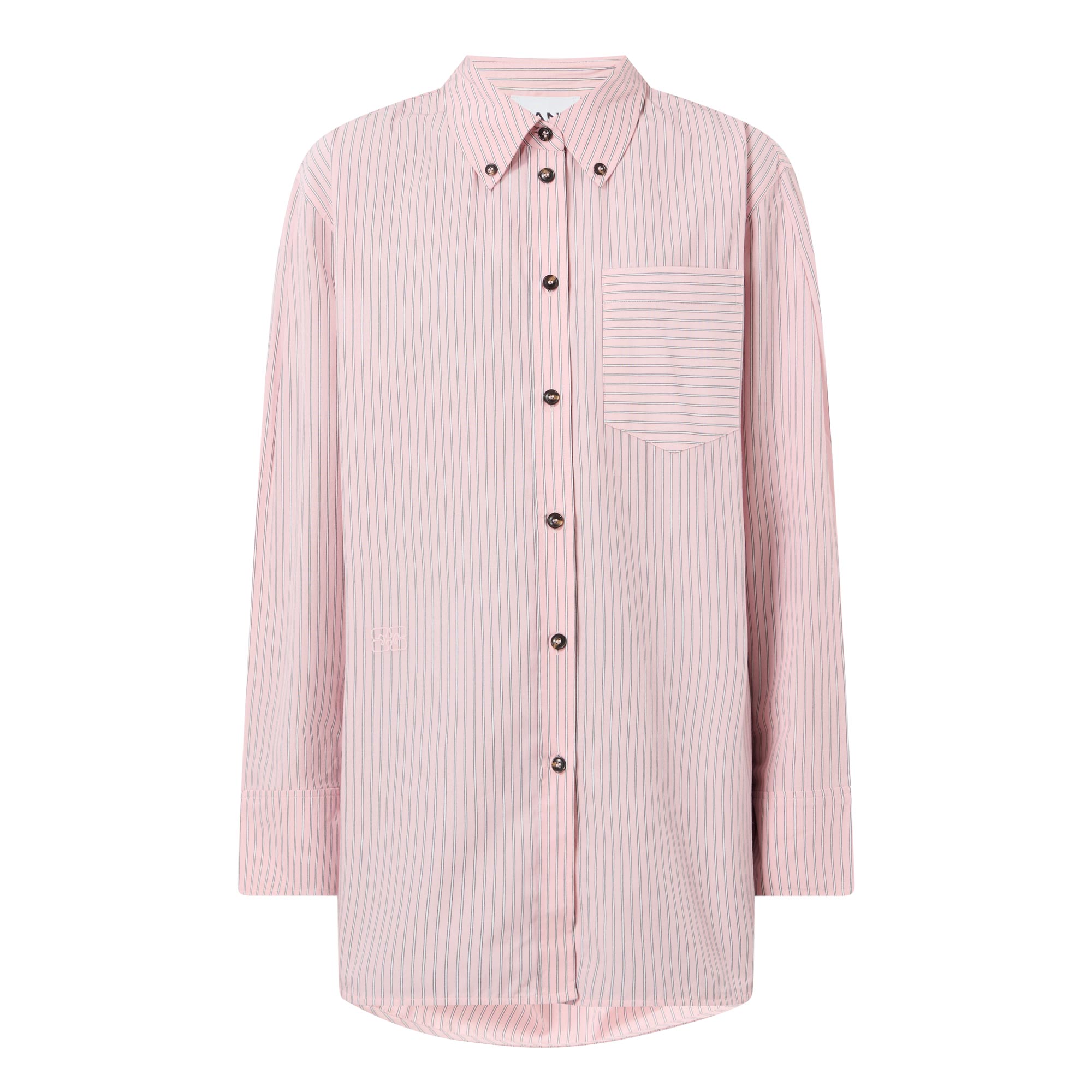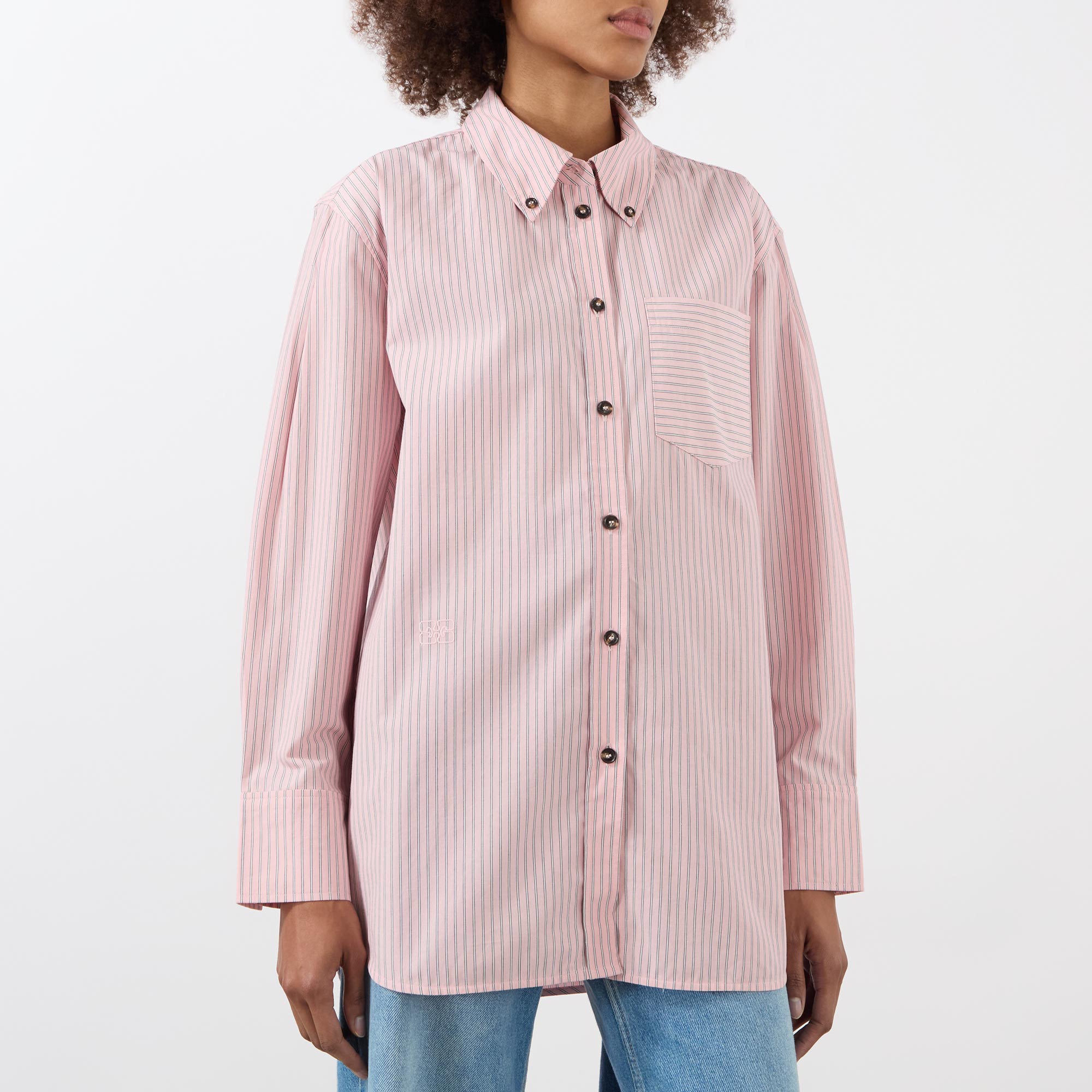 - Button down collar, dropped shoulders, long sleeves, buttoned cuffs, front button placket, one chest patch pocket, curved hem, rear box pleat, striped pattern