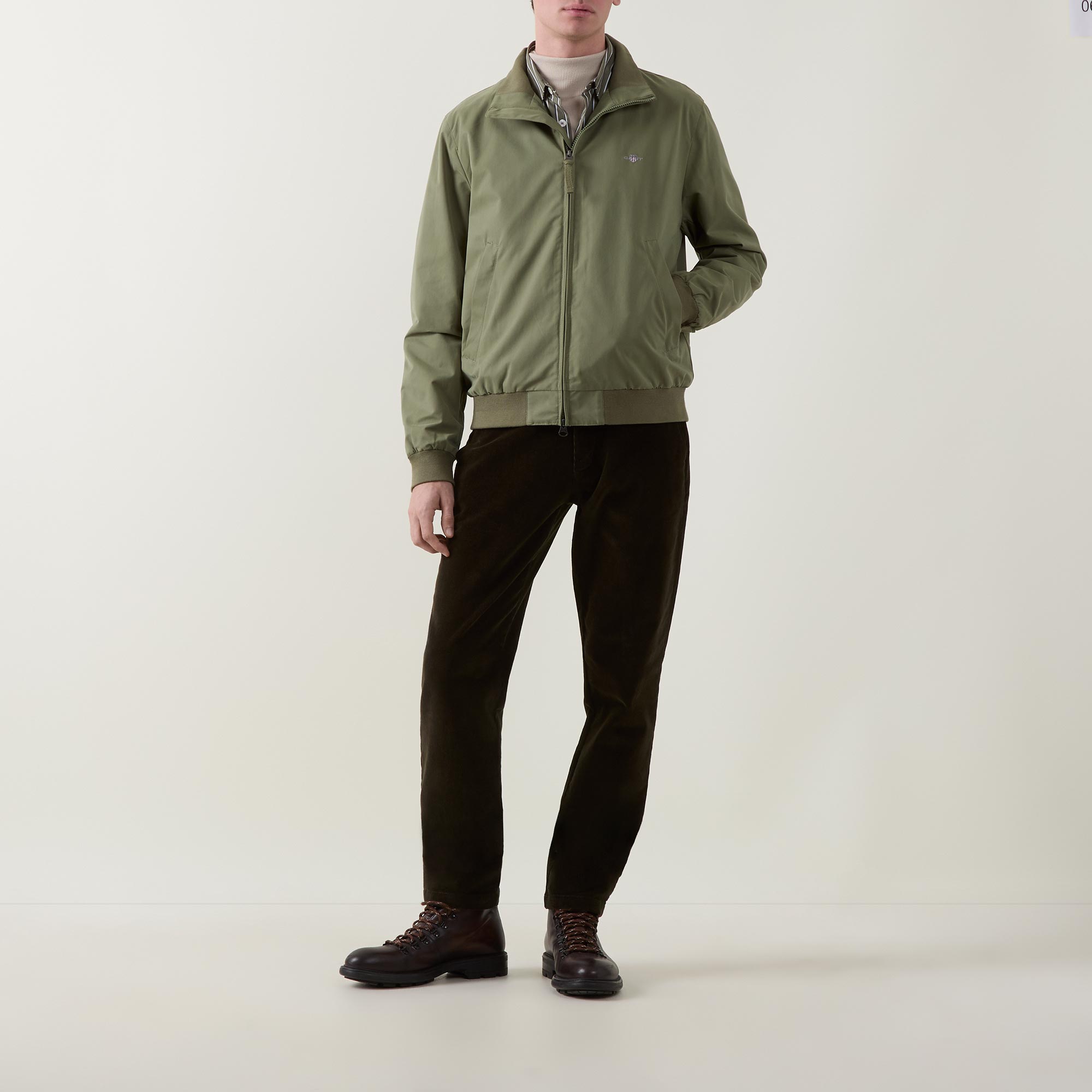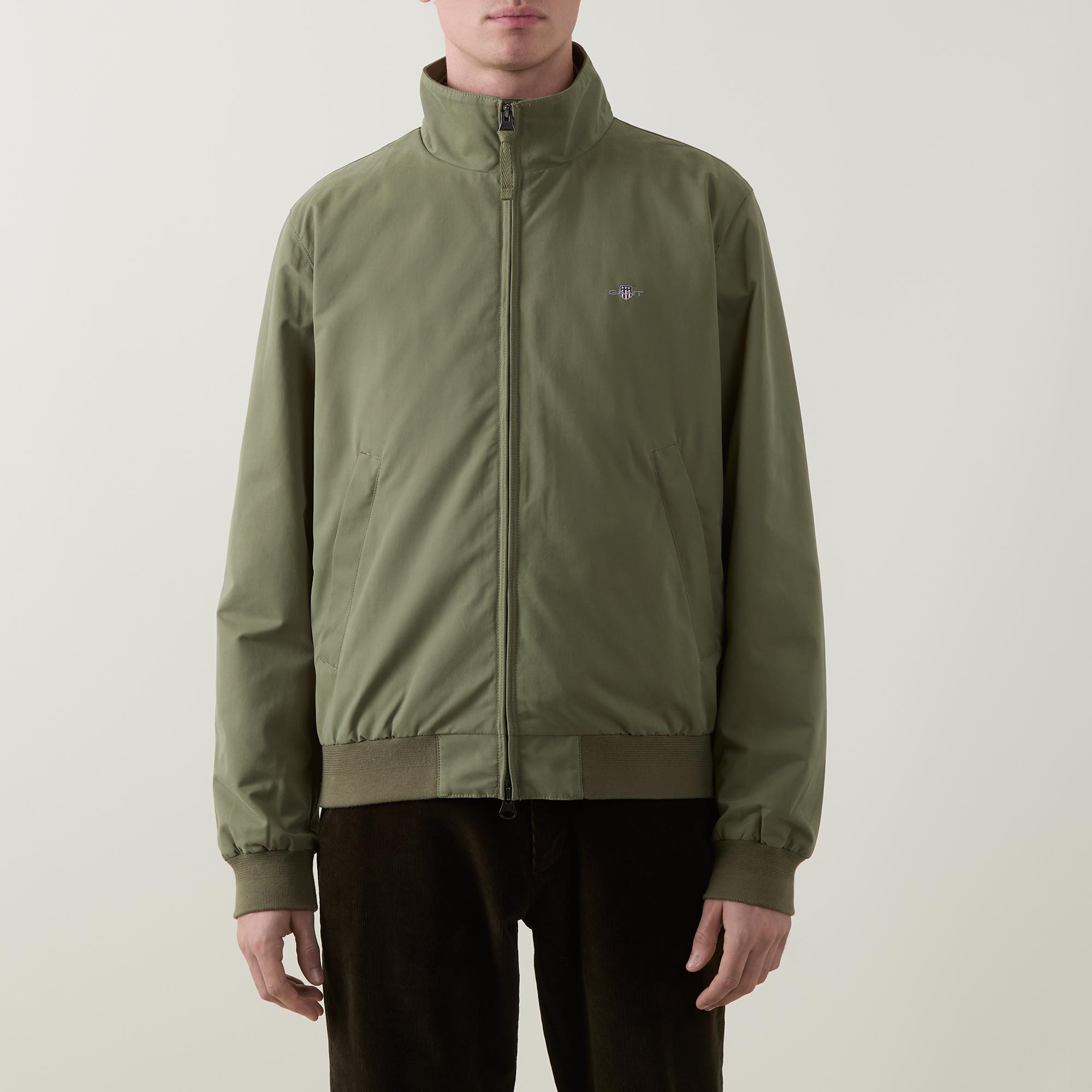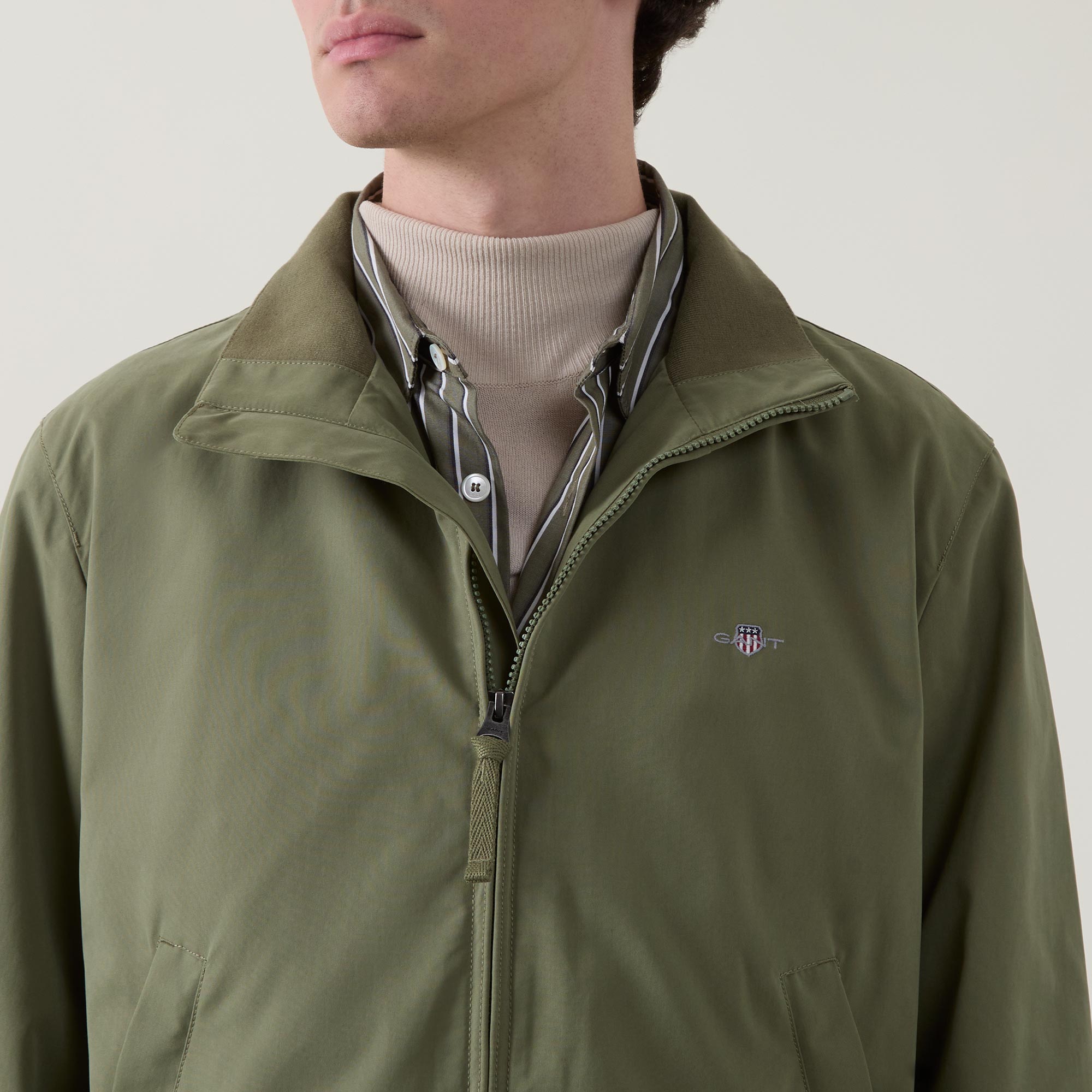 - Stand collar, long sleeves, front zip fastening, two angled pockets with zip fastenings, straight hem, ribbed trims, Shield logo detail on the chest, lightweight, water-repellent shell