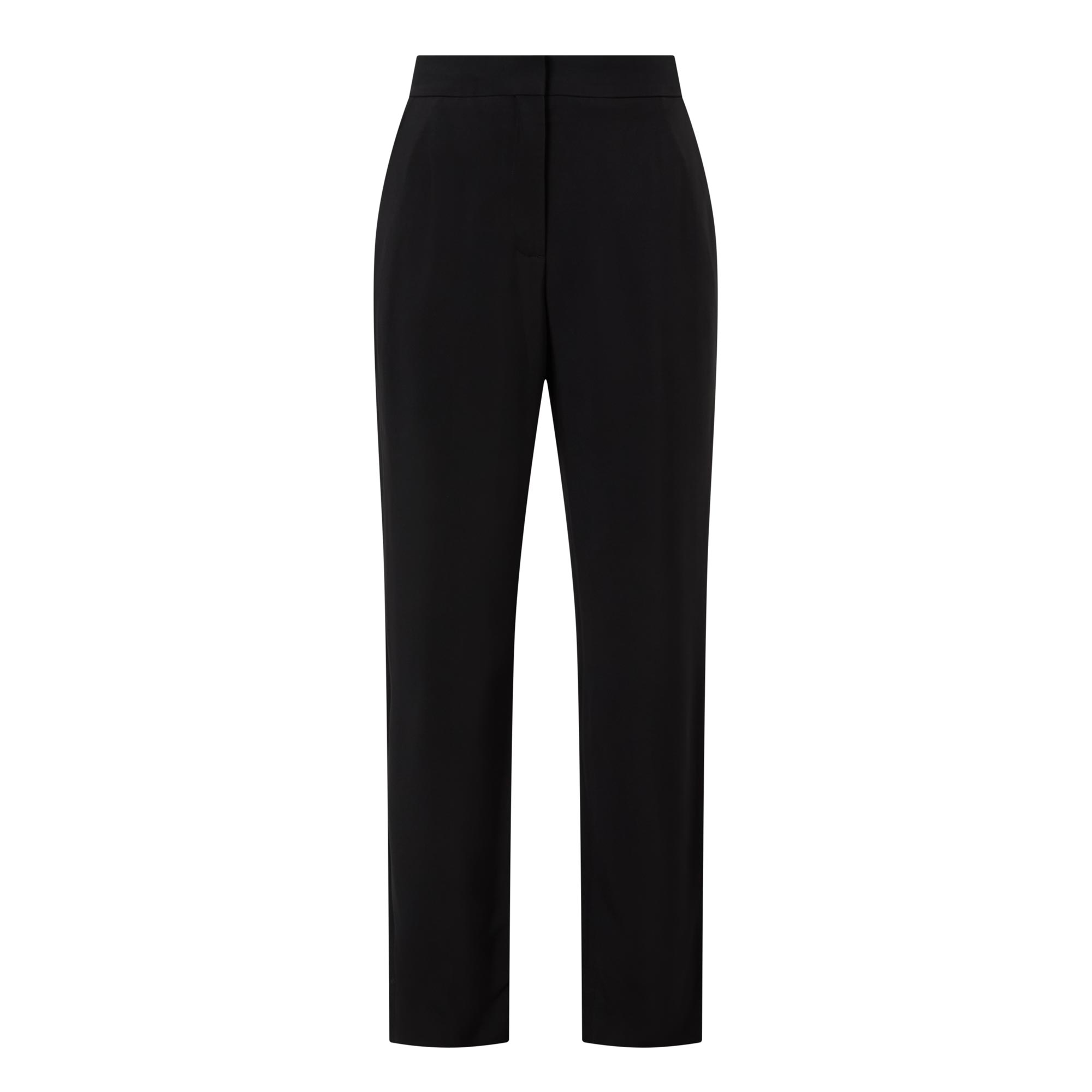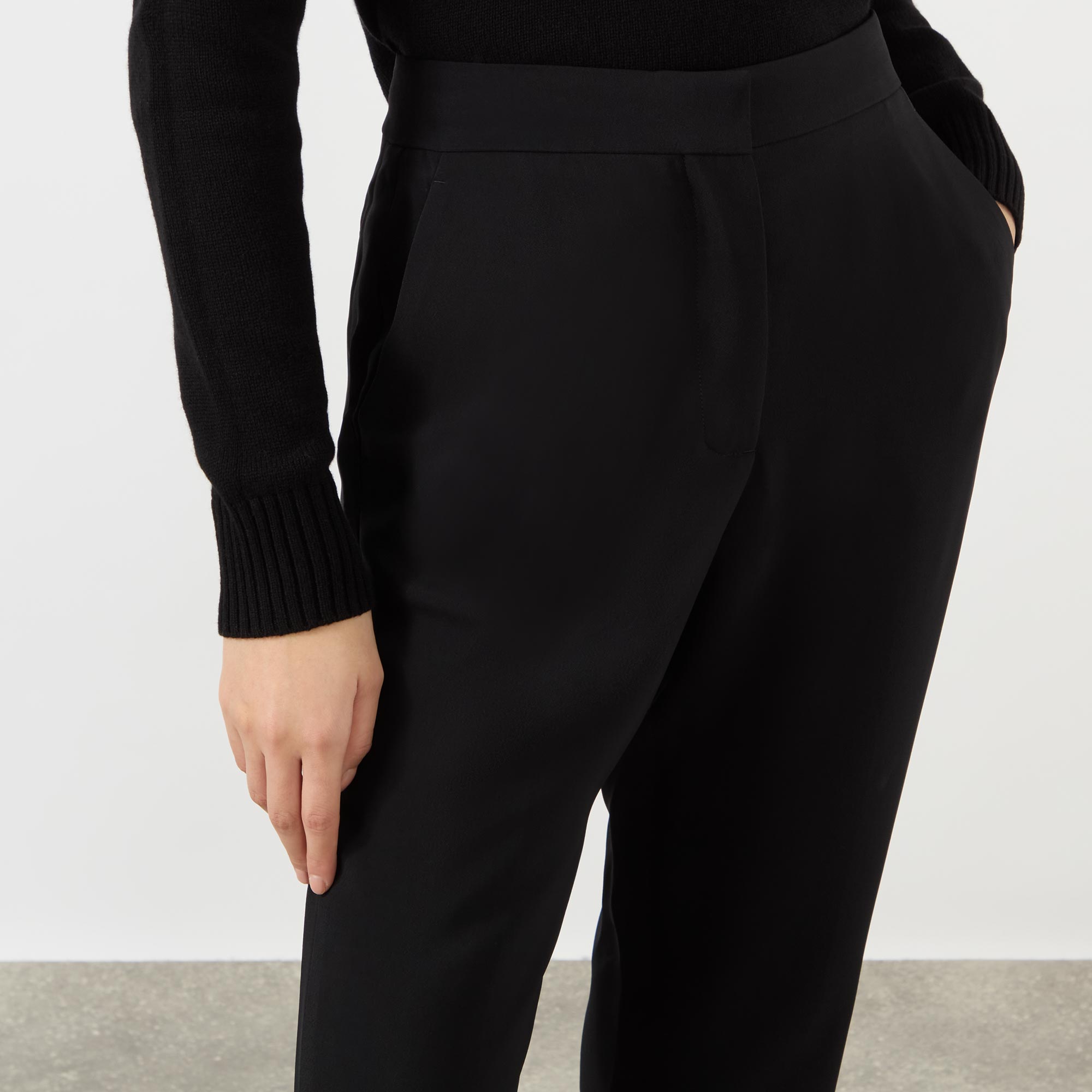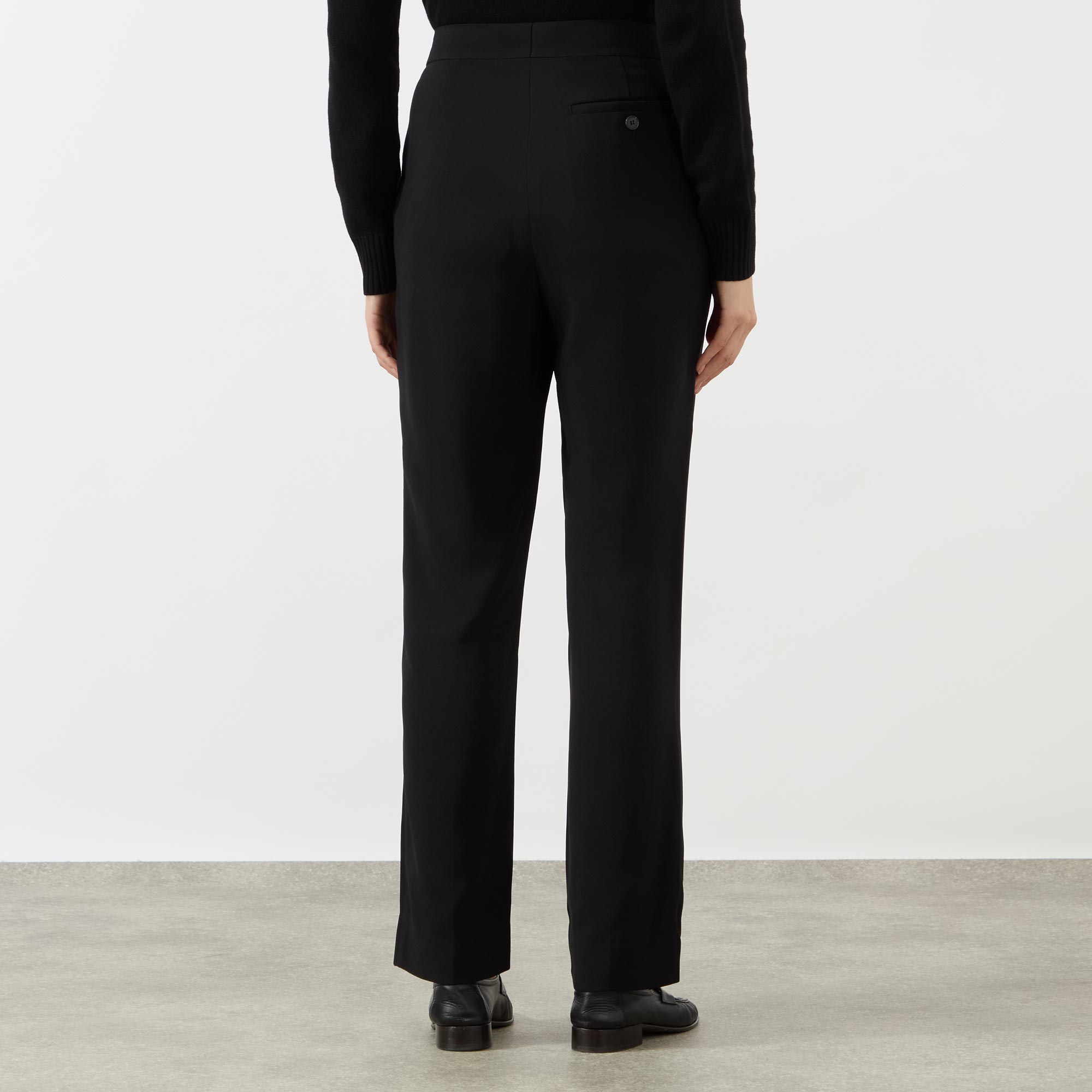 • Concealed zip-fly and hook-and-bar fastening, two side in-seam pockets, one rear welt pocket with button fastening, high-rise, slim-cut leg, pressed creases, smooth fabric