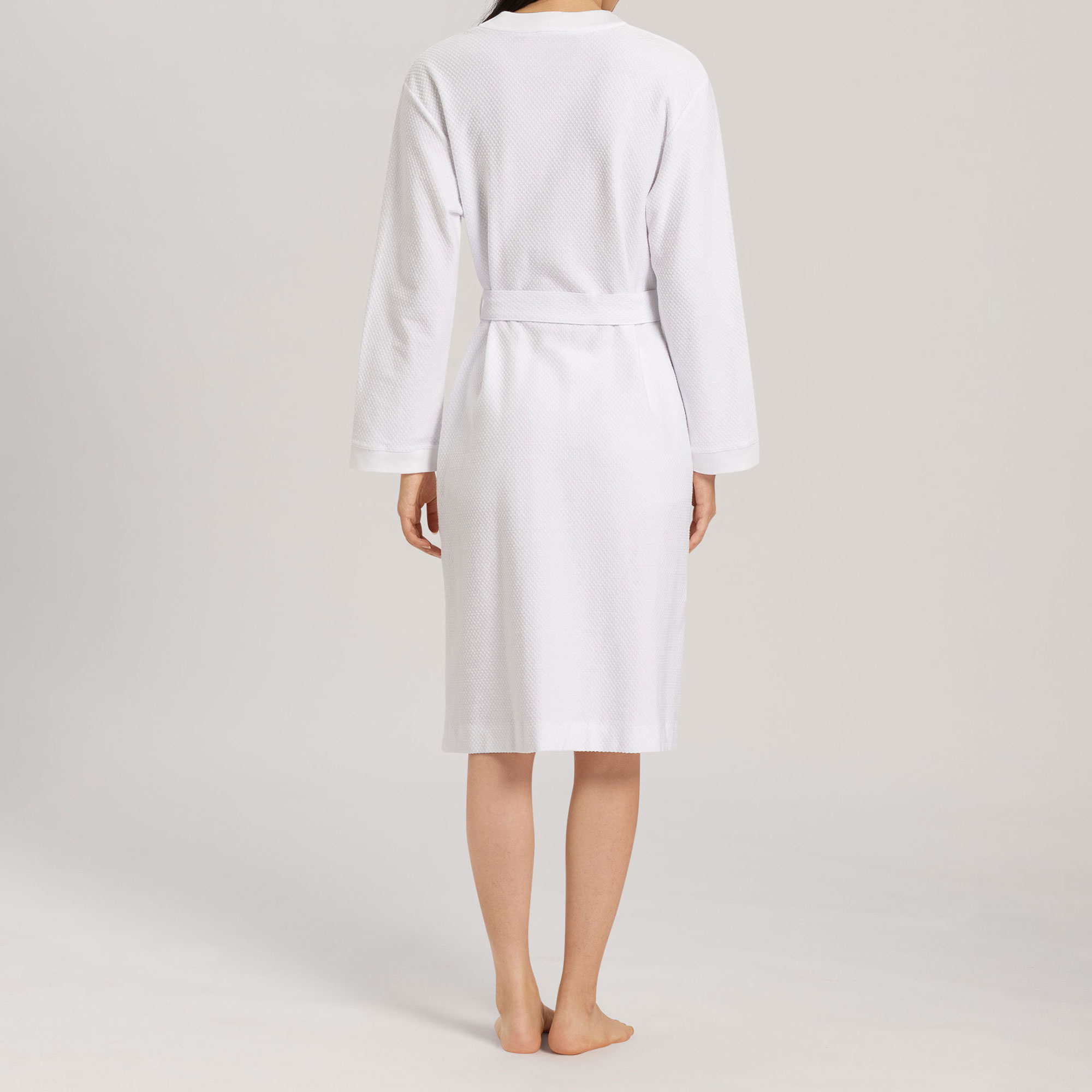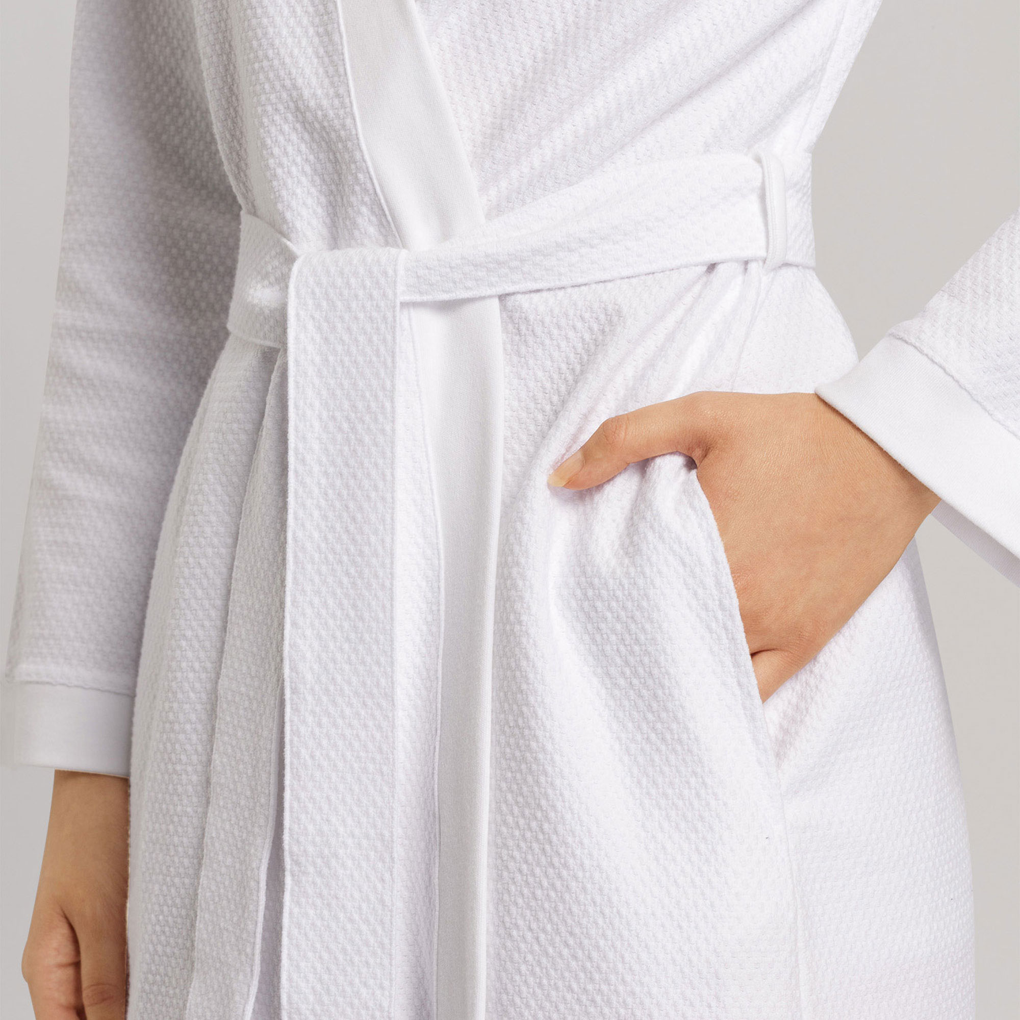 - Long wide sleeves, shawl collar, self-fabric belt, cotton waffle finish