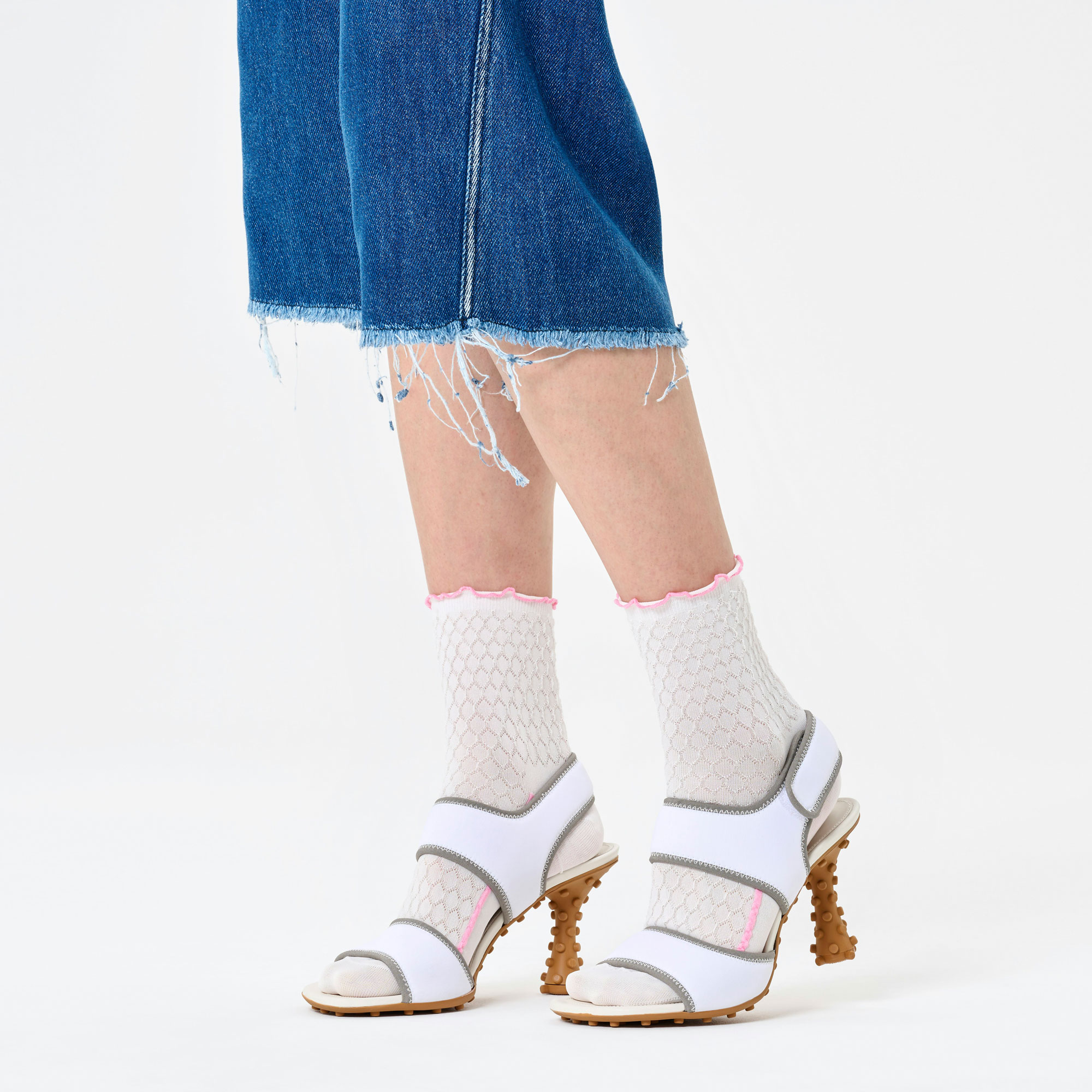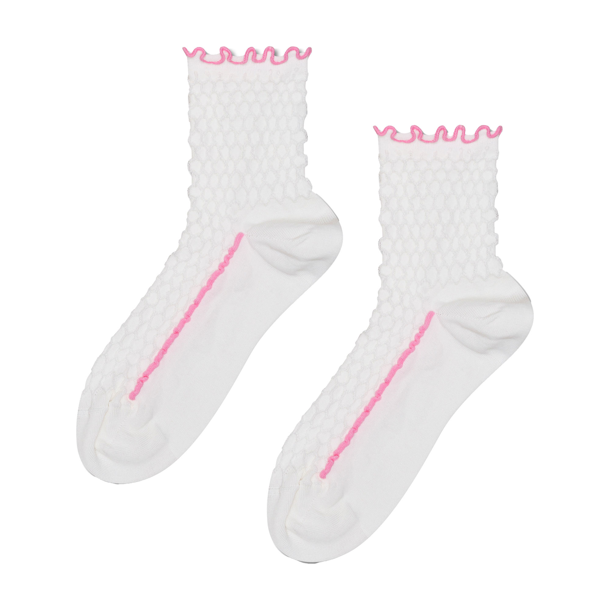 • Reinforced heel and toe, seamless toe, scalloped trim, crew-cut design, textured pattern, sheen finish