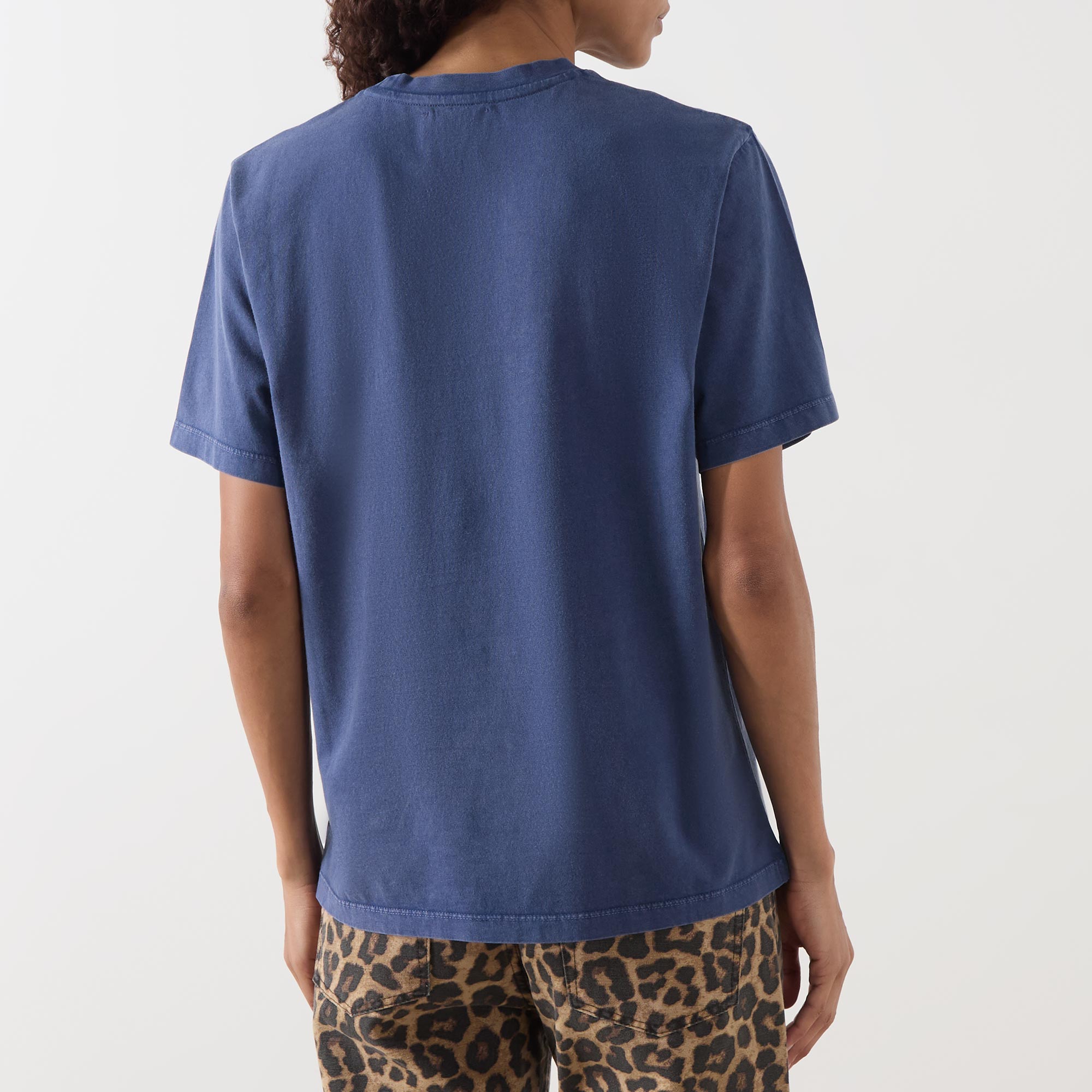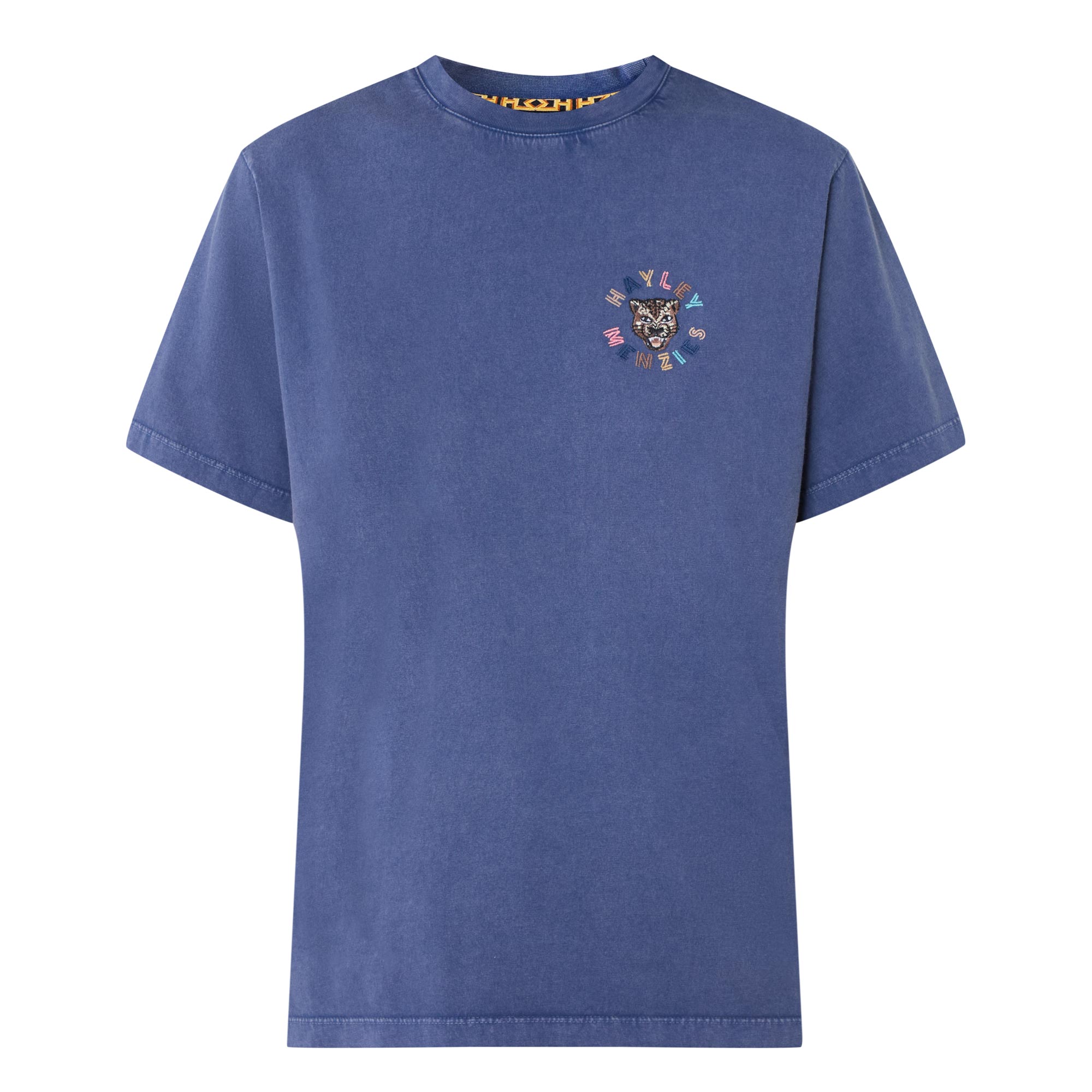• Crew neck, dropped shoulders, short sleeves, straight hem, embroidered logo lettering on the chest, cheetah head logo, acid-wash finish