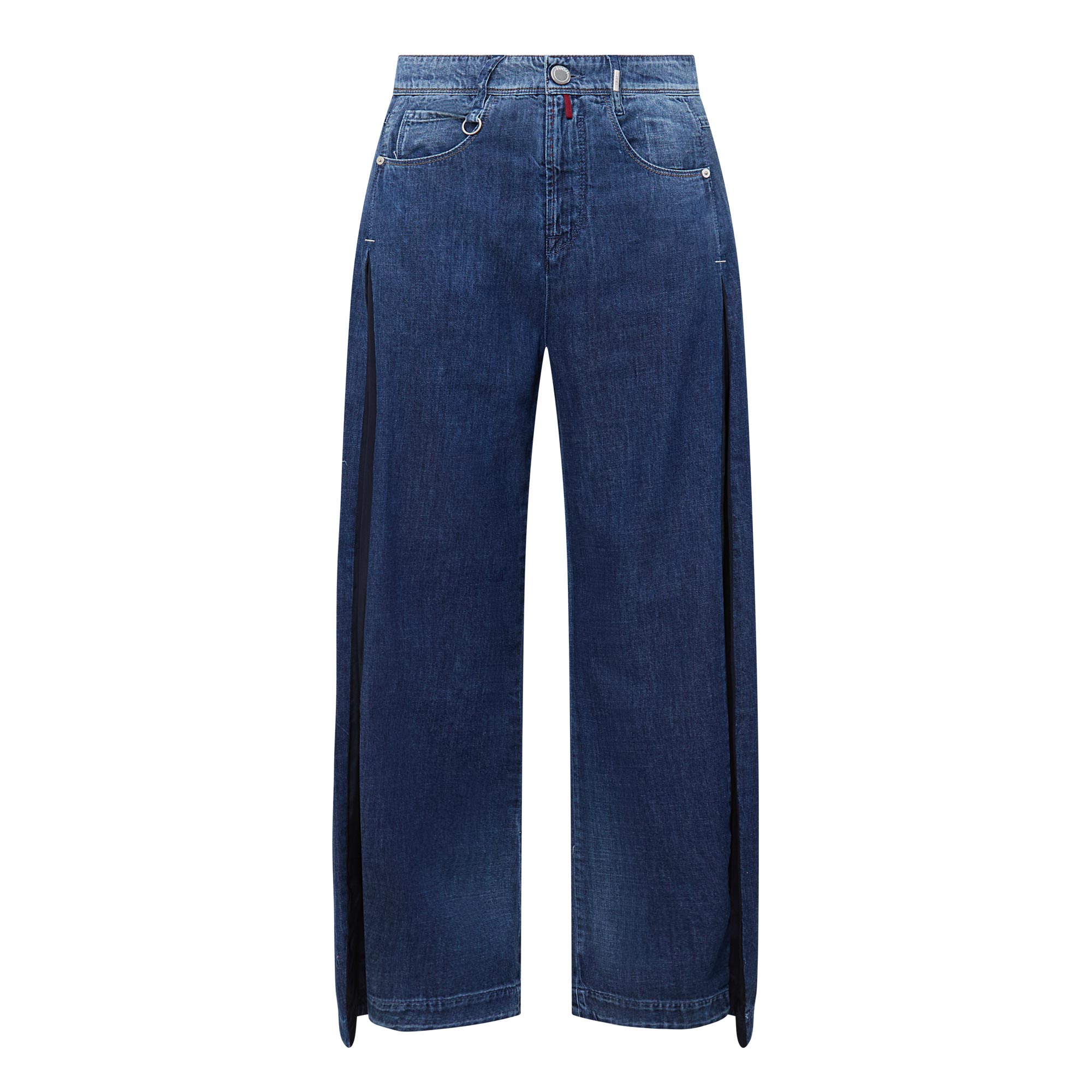 - Zip-fly and button fastening, belt loops, five-pocket design, attached D-ring, rear logo patch, faded detailing, low-rise, barrel-cut leg, smooth denim finish