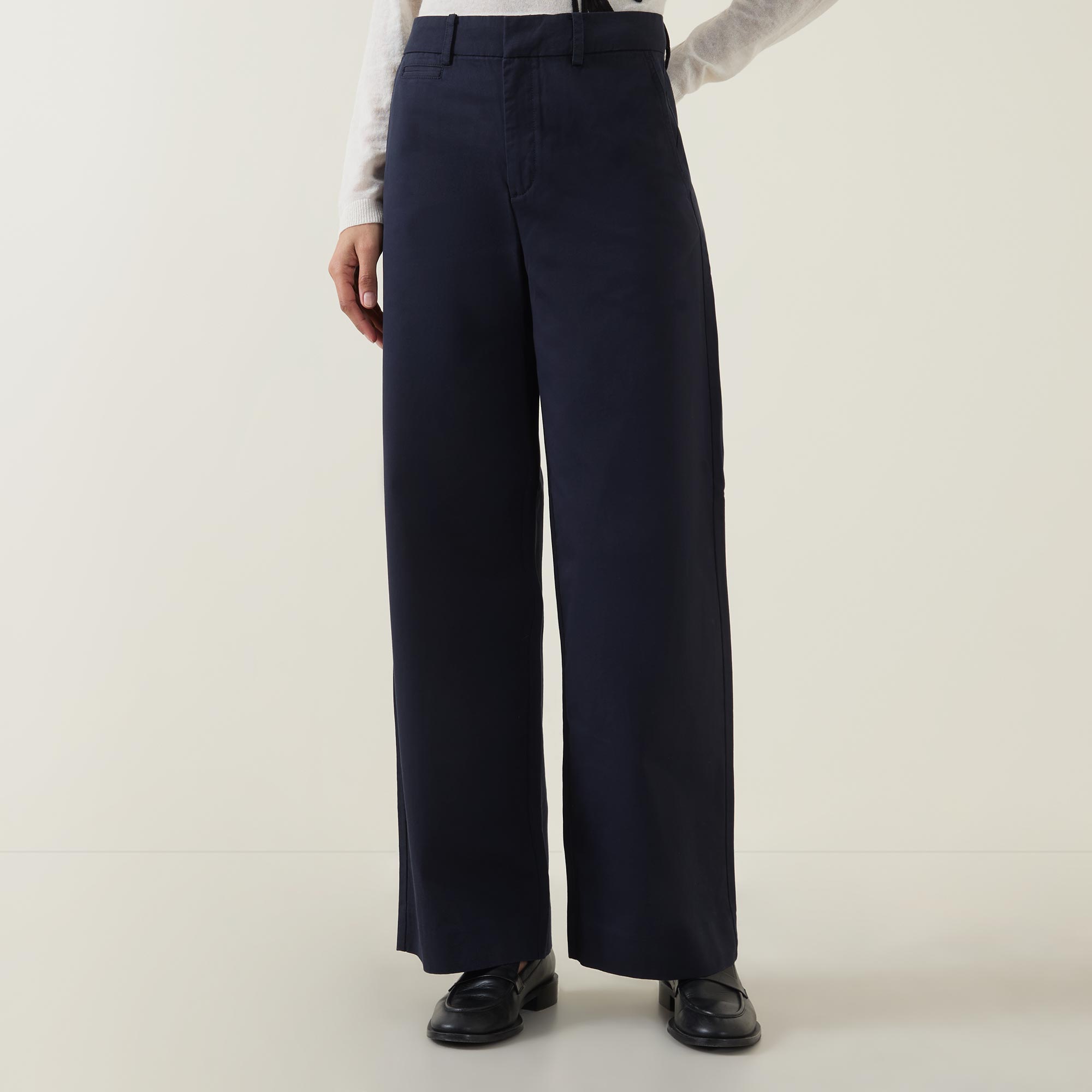 - Mid rise, straight leg, covered waistband, belt loops, concealed fly with hook and bar fastening, two side entry pockets, two rear welt pockets, clean hems, tonal stitching, smooth finish