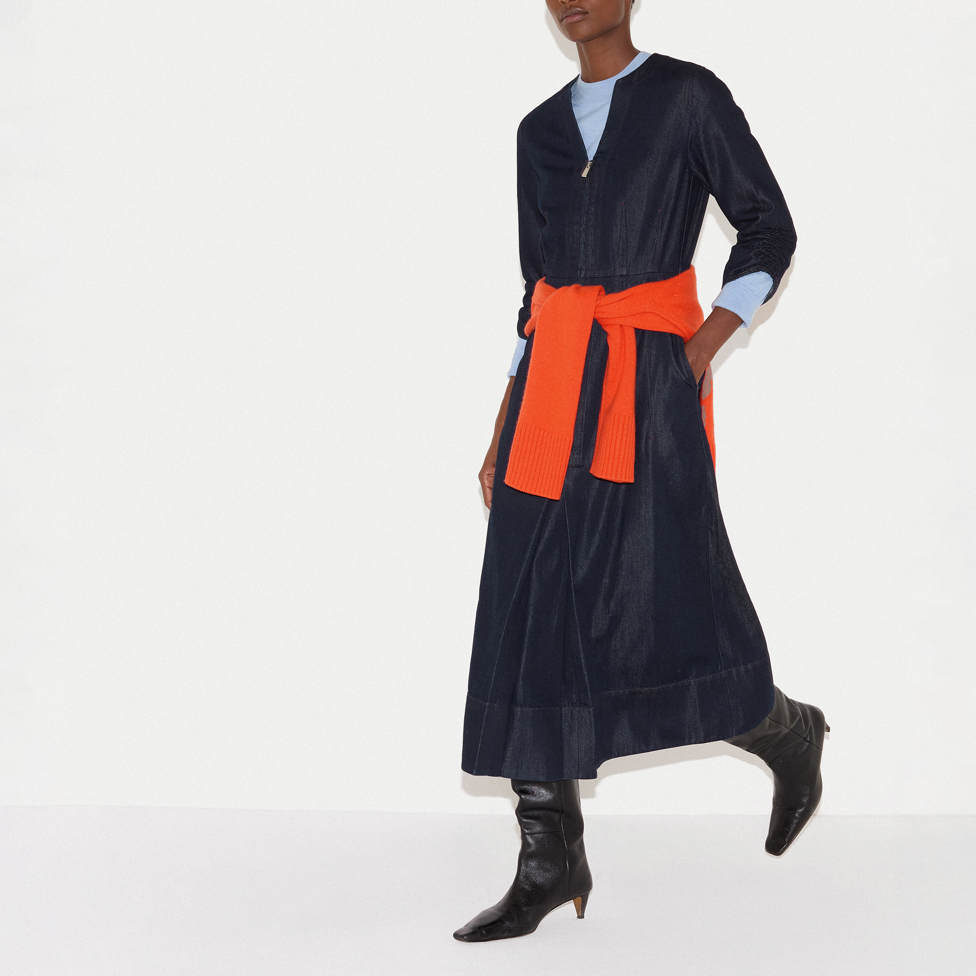 JIGSAW Chambray Zip Flared Dress