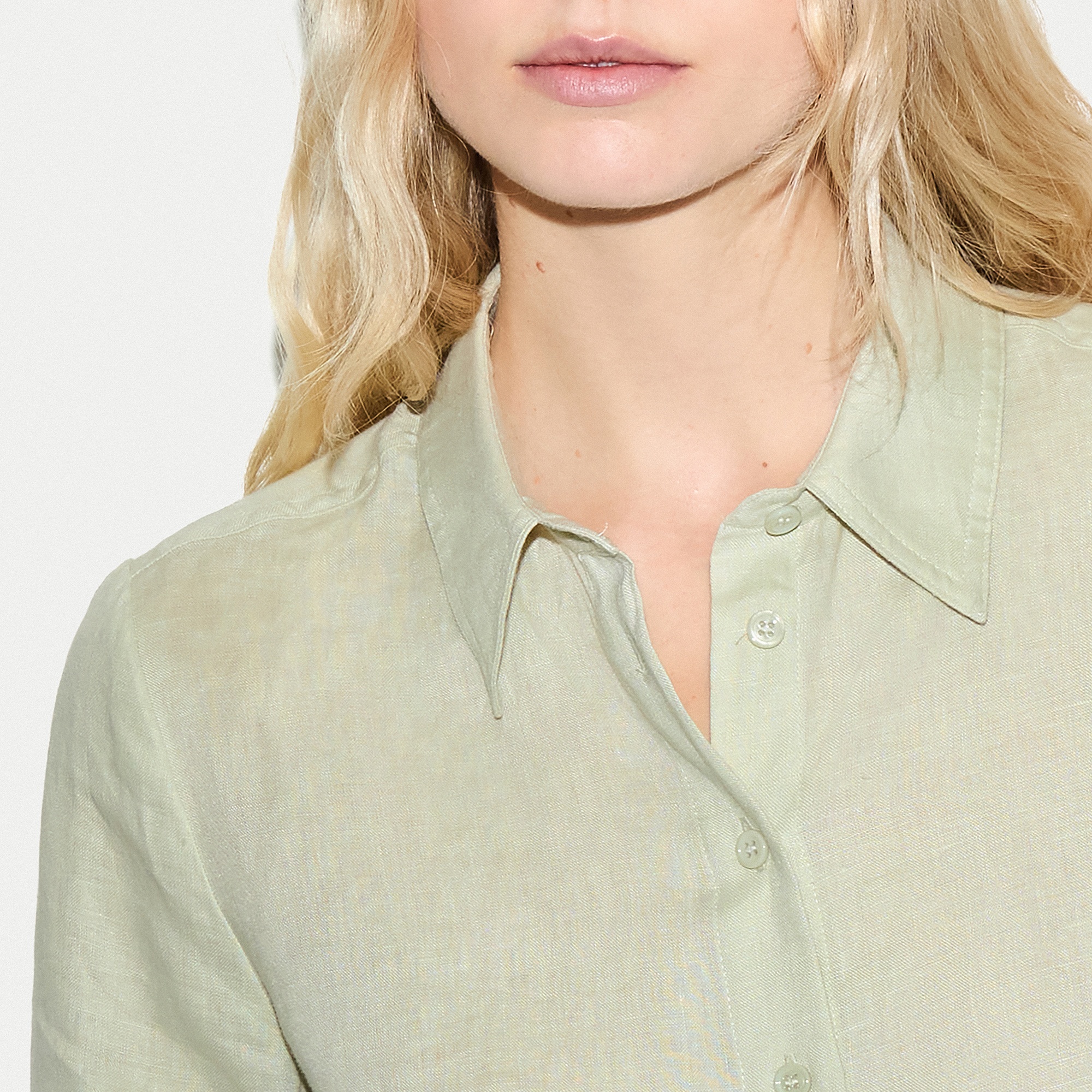 - Buttoned cuffs, linen construction, button-down front, collar