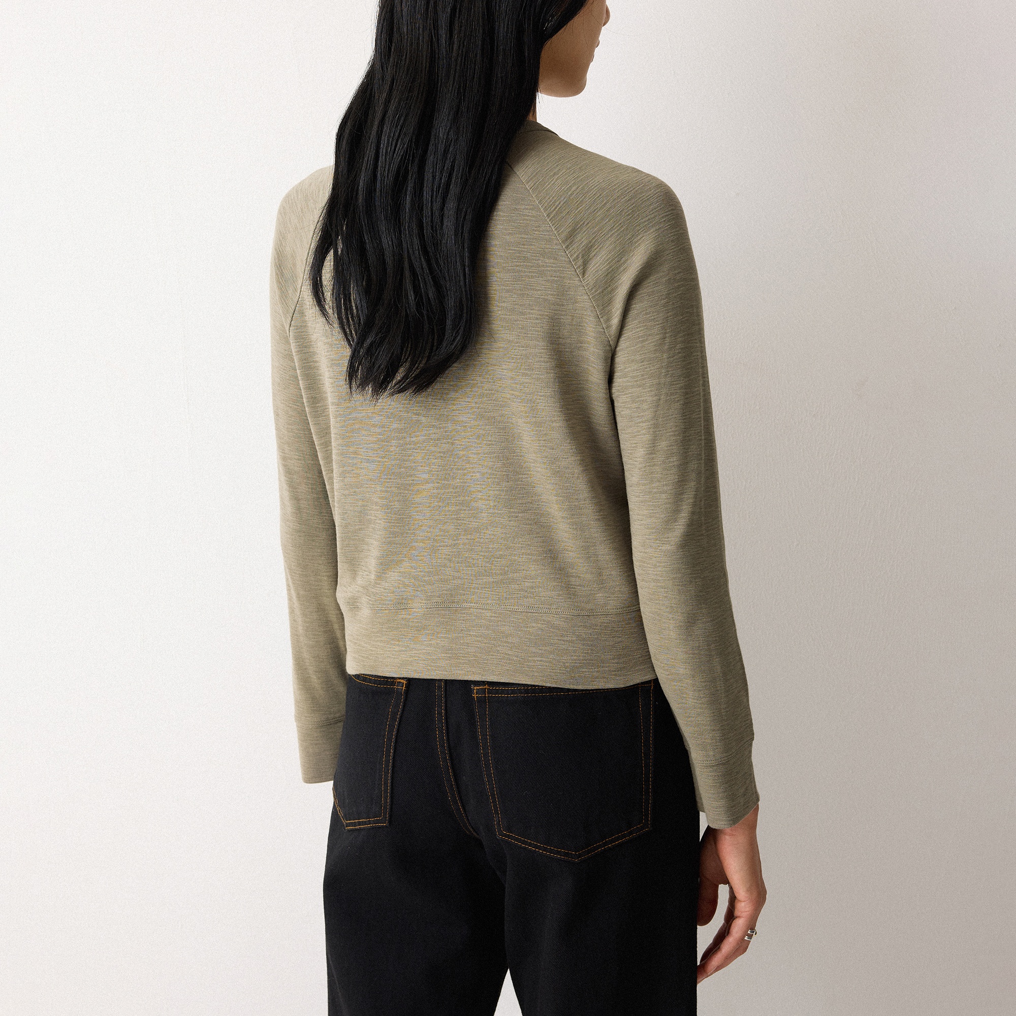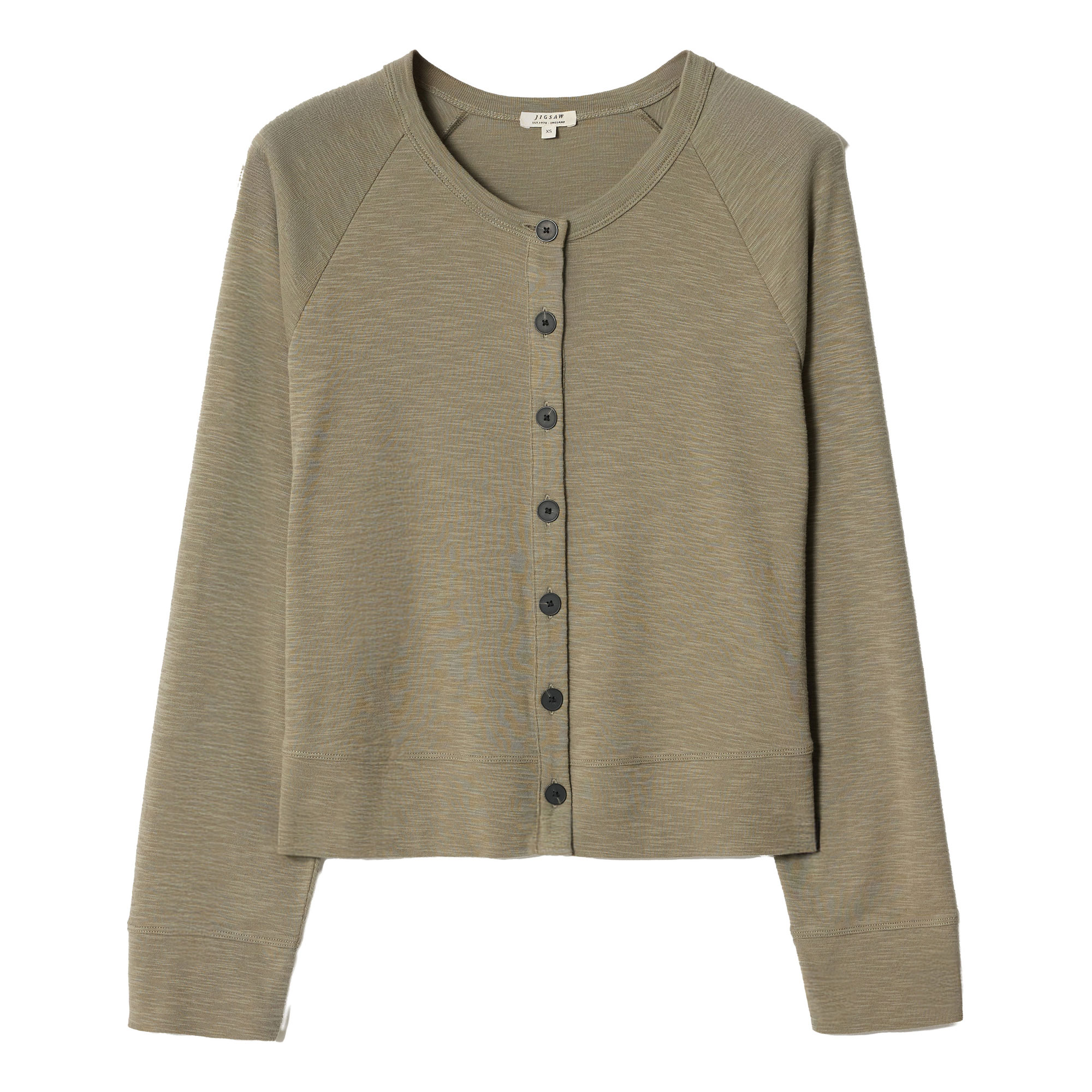 - Slub jersey, crew neckline, long sleeves, straight hemline, button fastenings