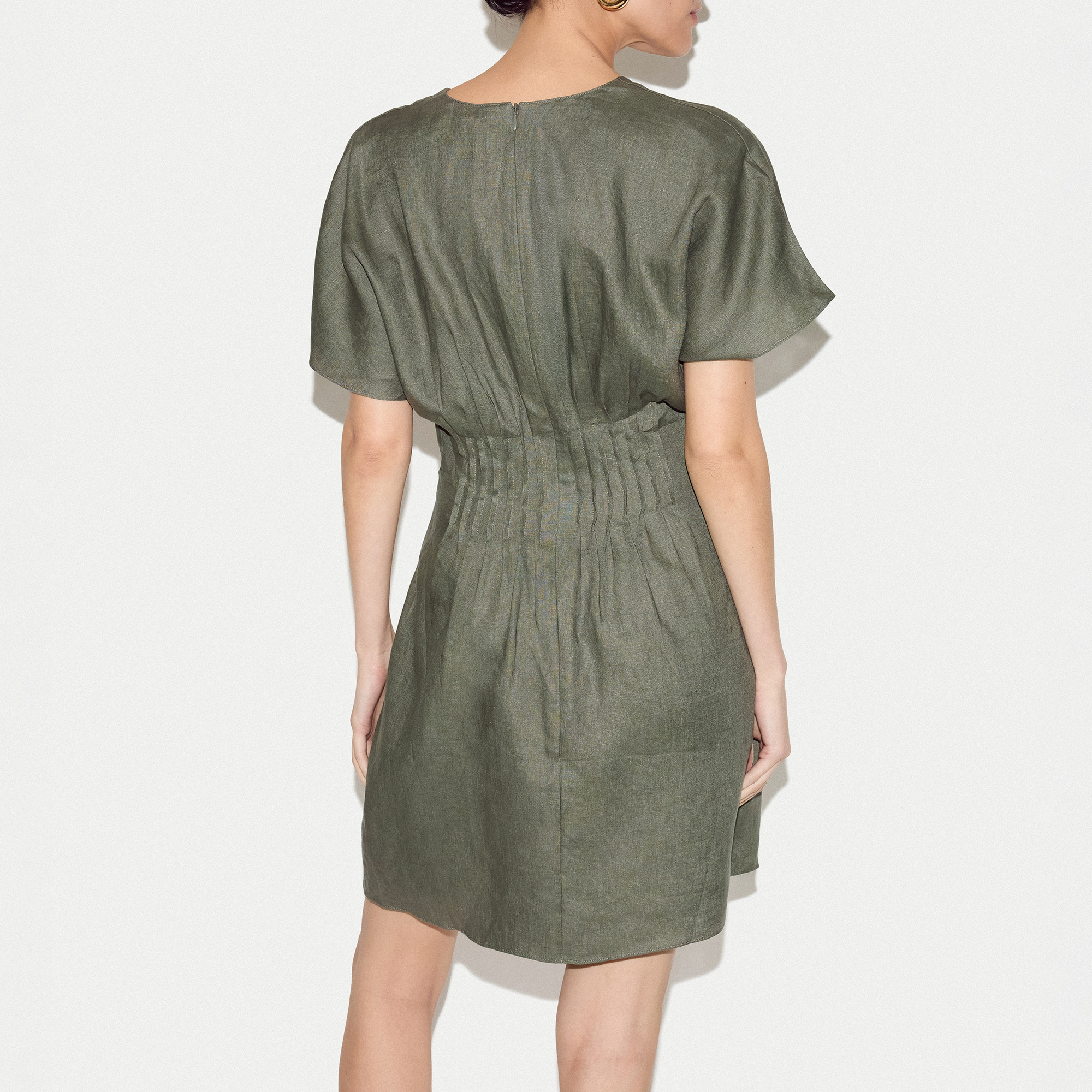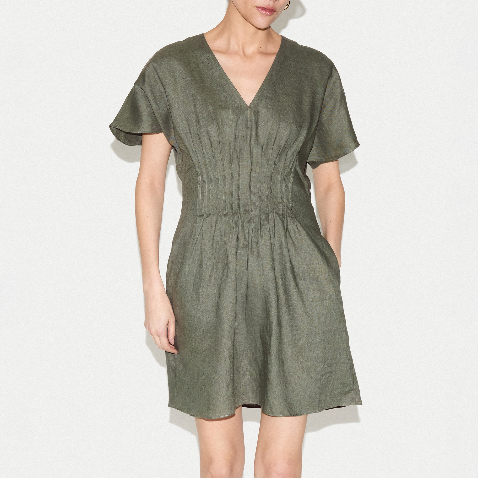 JIGSAW Pintuck Linen Mini Flared Dress