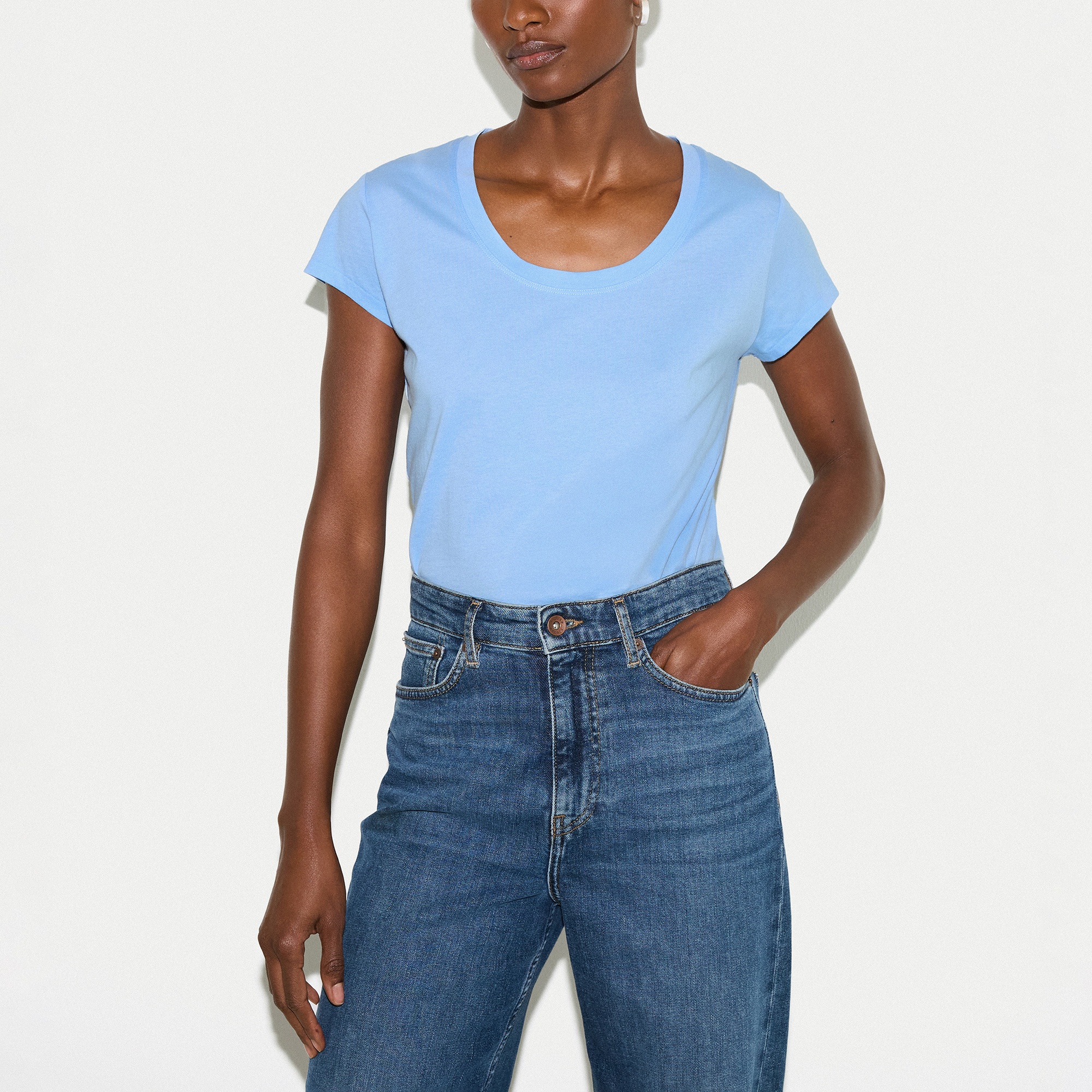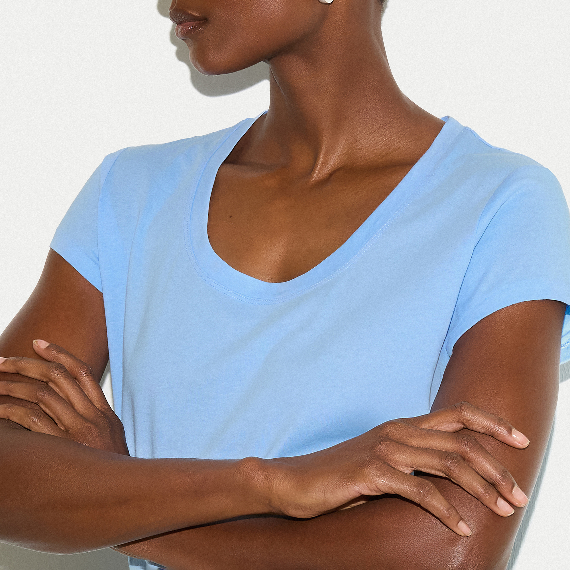 - Supima cotton fabric, soft feel, scoop neckline