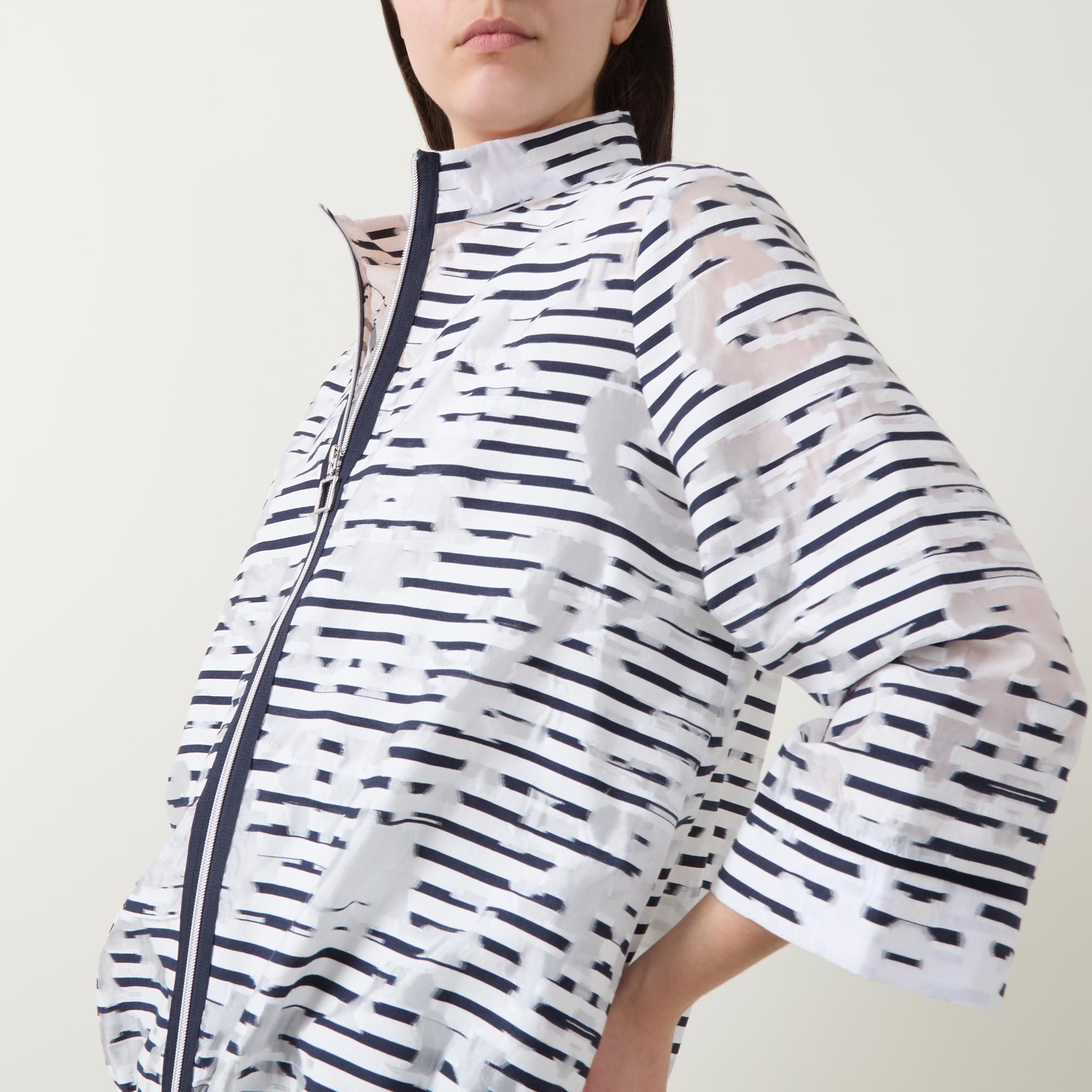 - High neckline, cropped sleeves, striped, contrast print, zip fastening