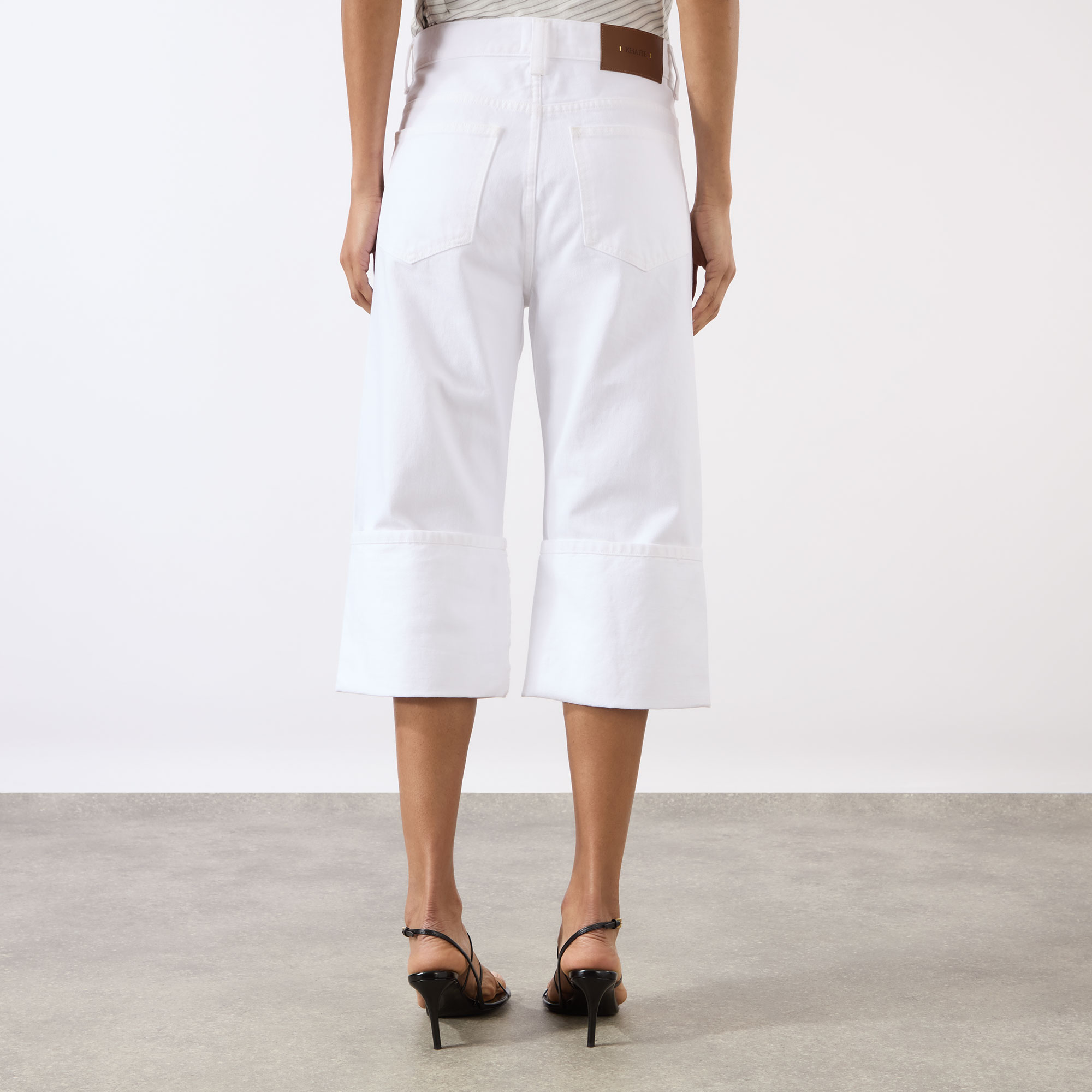 - Button and fly zip fastening, belt loops, five-pocket style, wide-cut silhouette, logo badge to the rear, turned-up cuffs