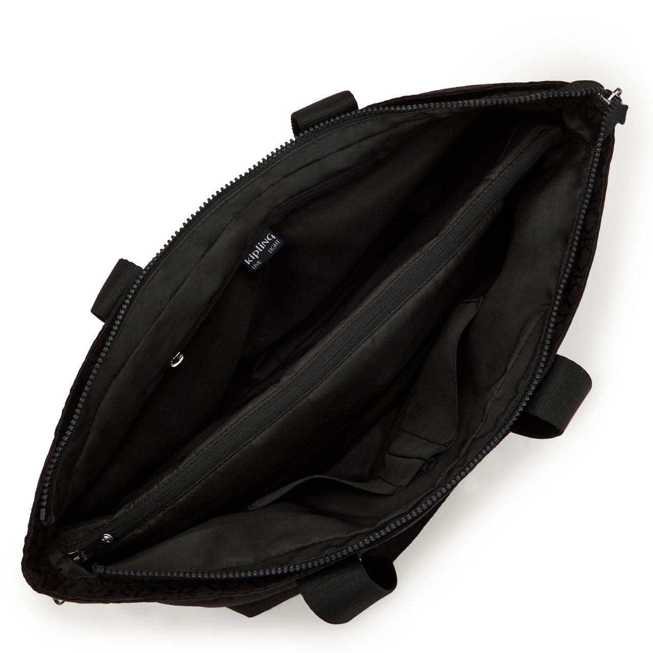 Features: Top handles, magnetic fastening, fits A4 documents, key leash, metal monkey keyring, lined, silver-tone hardware. Interior: Two main compartments, one laptop compartment that stores laptops up to 15inches, two pen compartments, one zipped pocket
