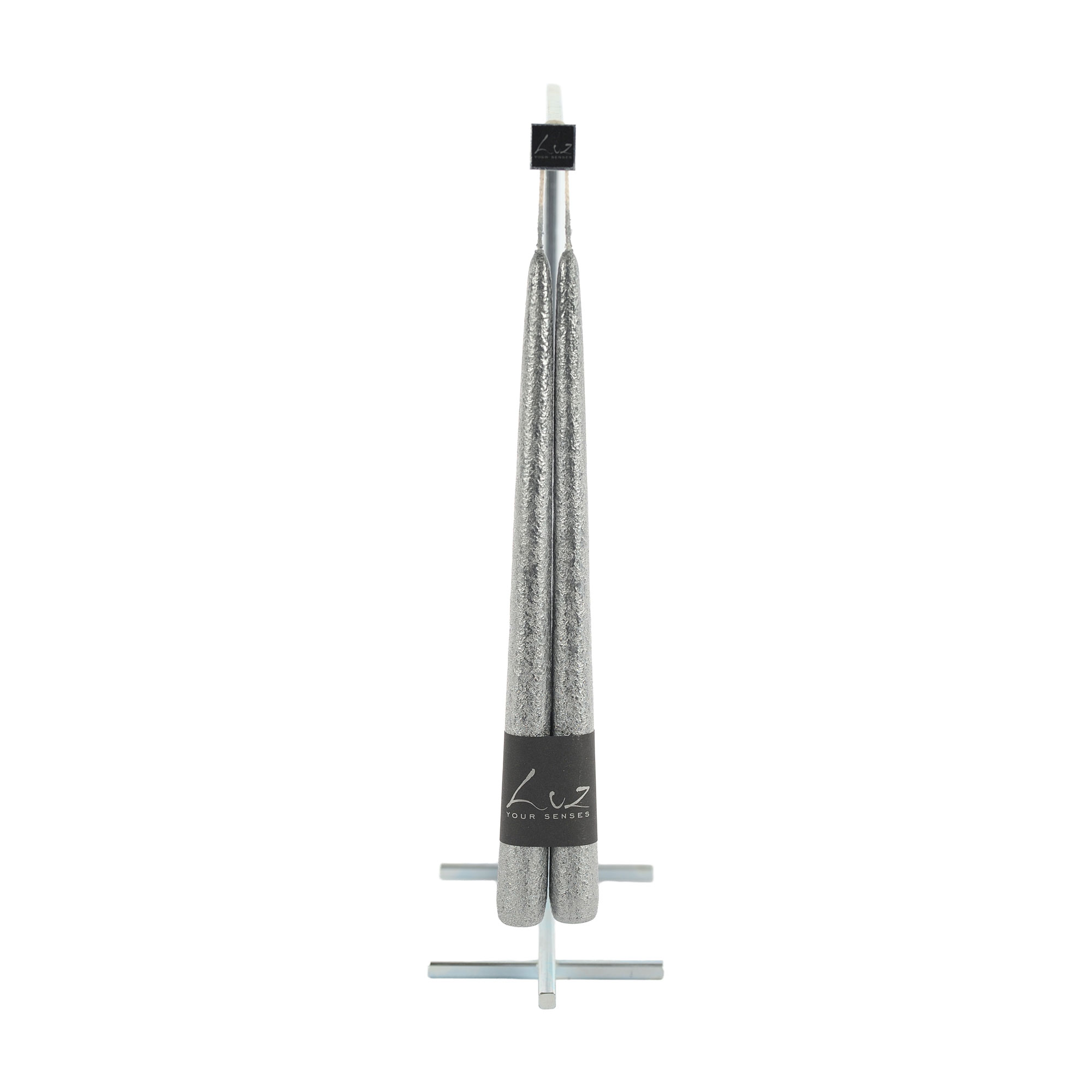 LUZ Black Silver Pair of Rustic Tapers