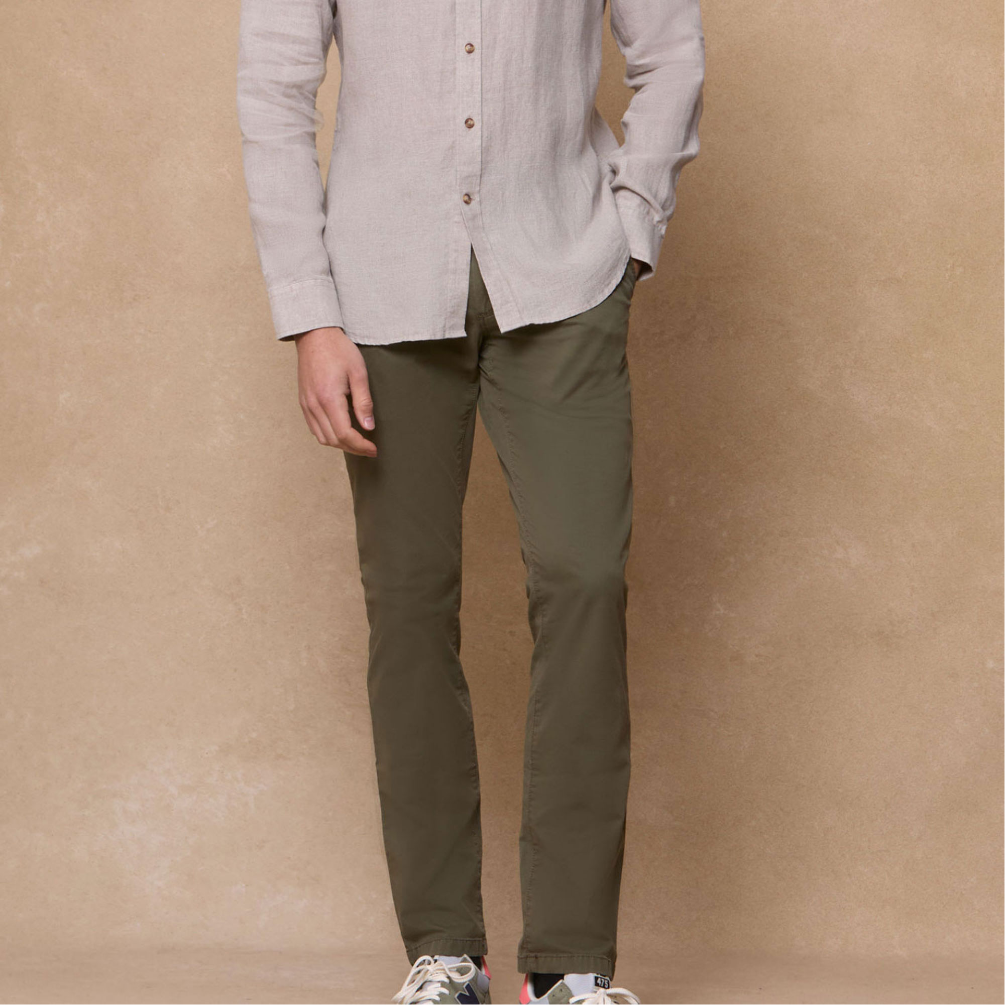 - Composition and Care: 78% cotton, 18% Tencel, 4% elastane. Machine wash at 30 degrees