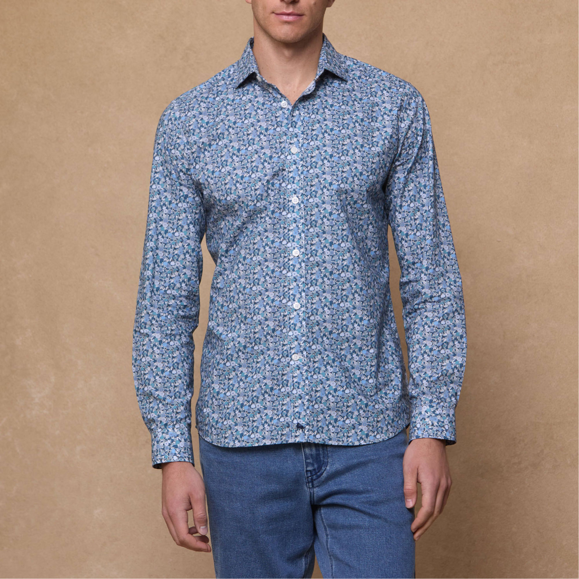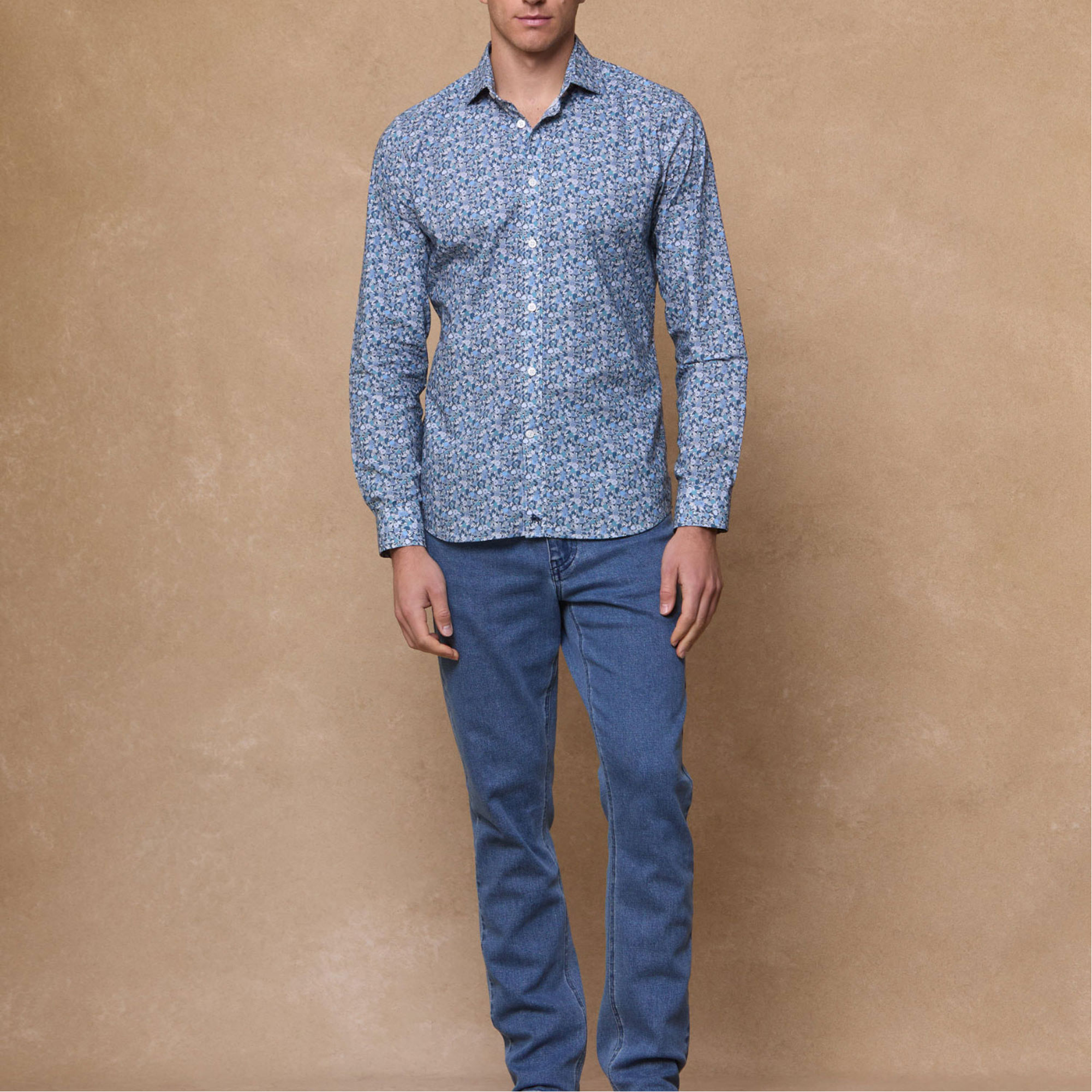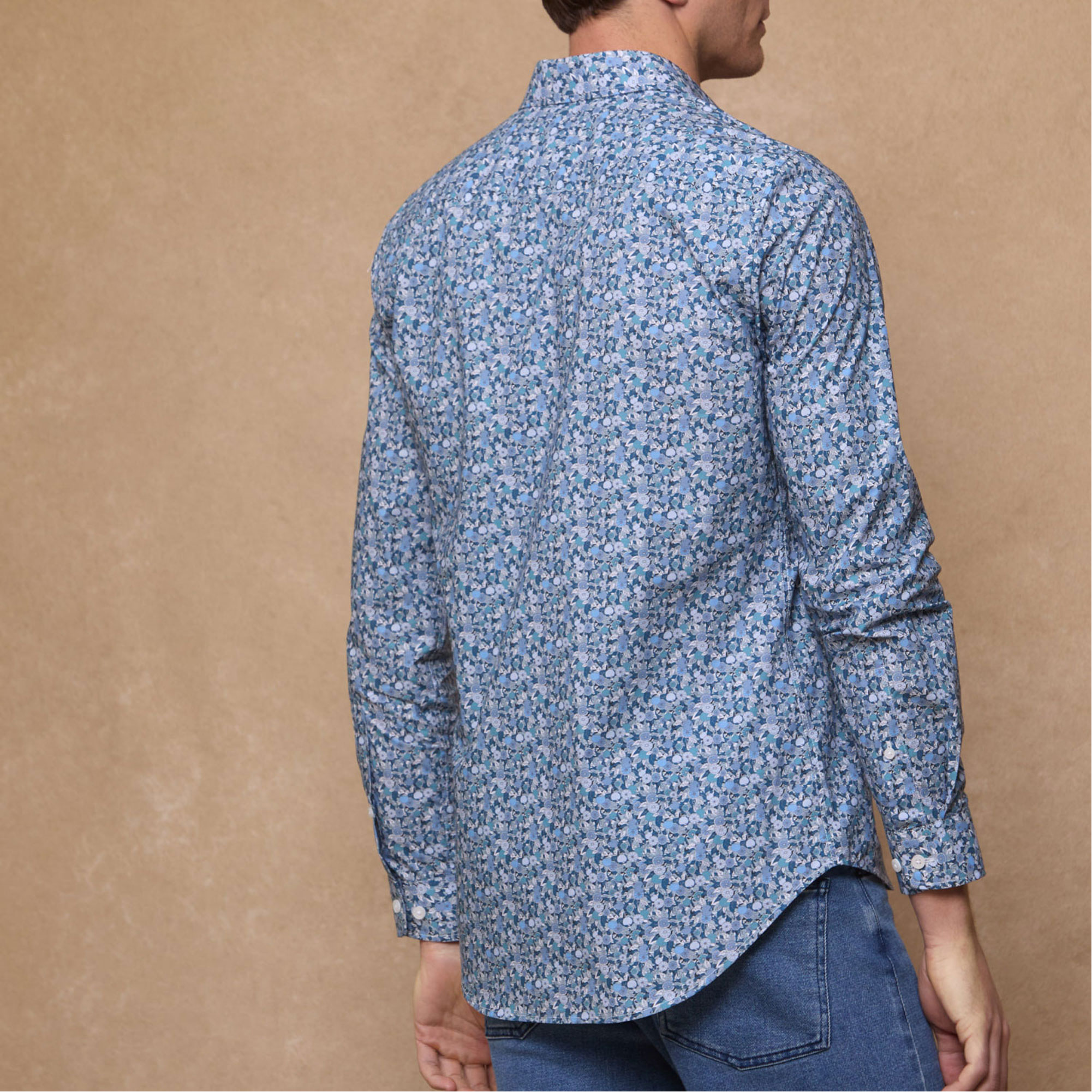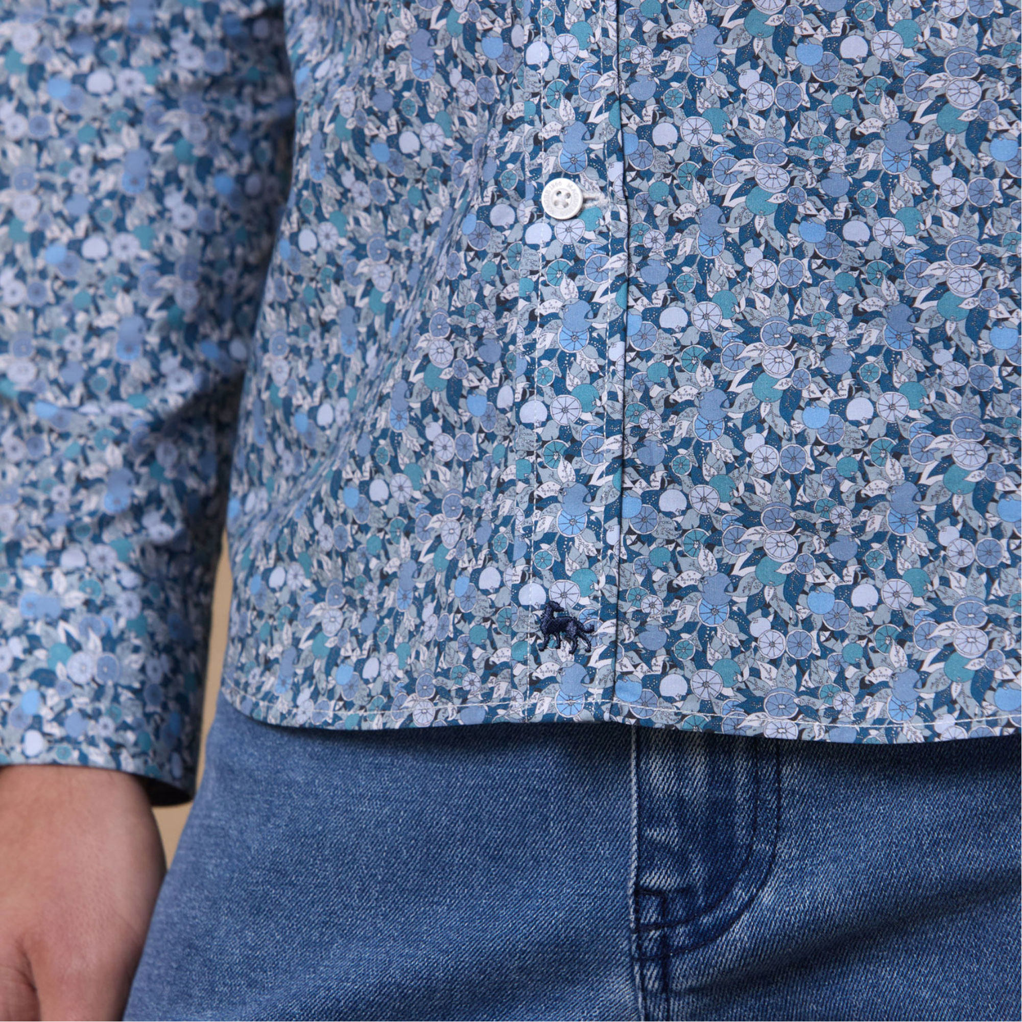 • Tailored collar , adjustable cuff , contrast wolfhound logo at placket, liberty printed fabric
