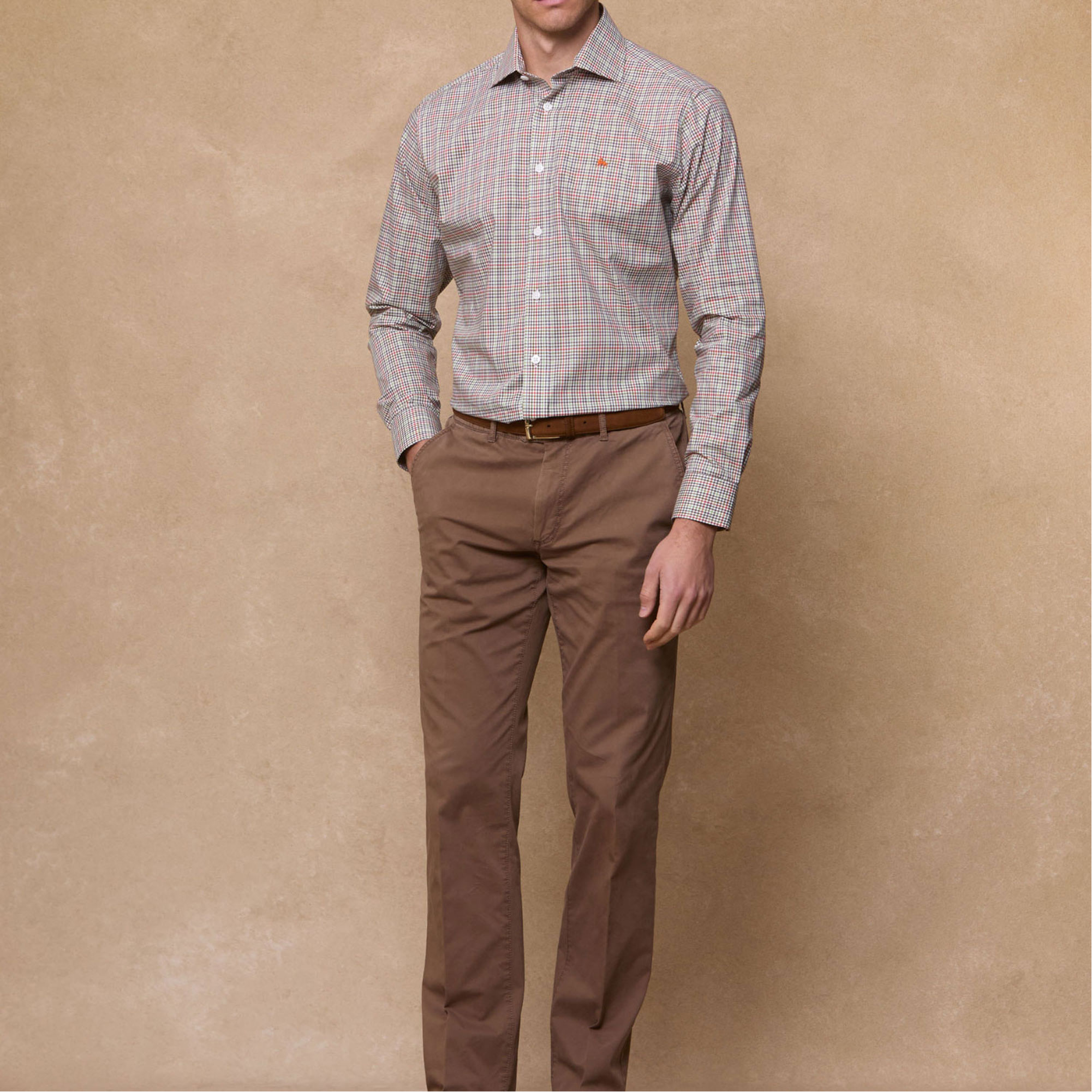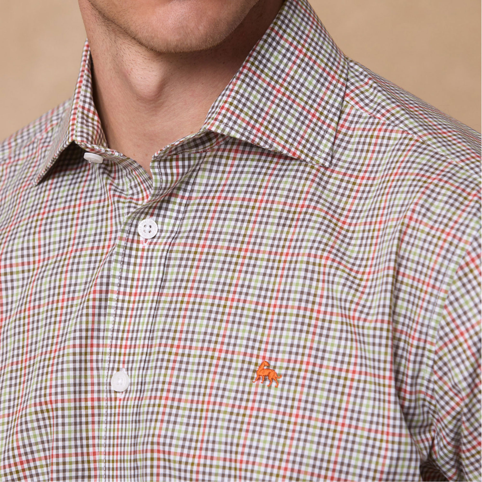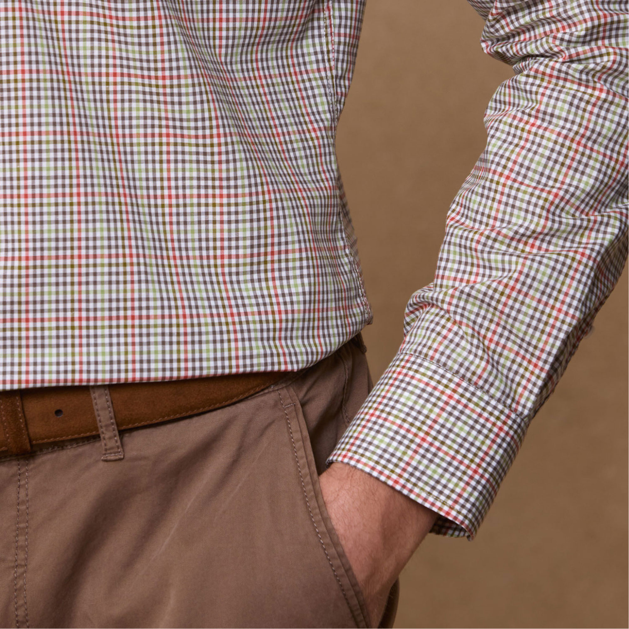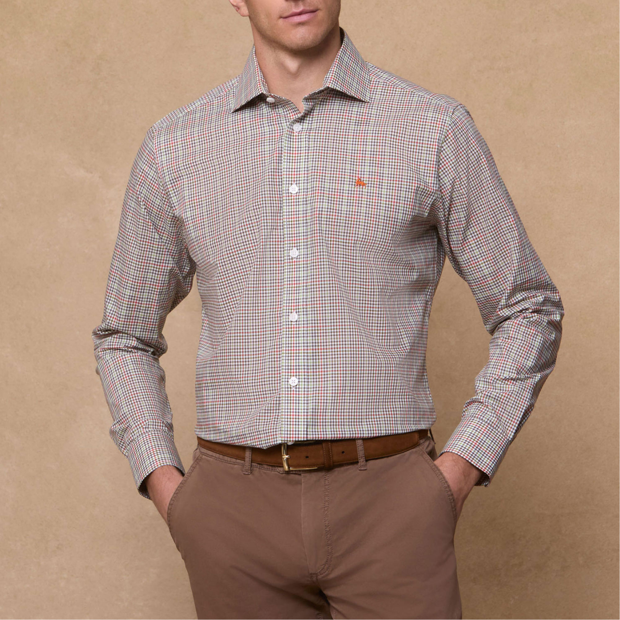 The Nephin Cotton Shirt features an olive and rust check set against a crisp white ground, crafted from soft, breathable cotton. Easy to wear and effortlessly versatile, it brings a fresh touch of colour to both smart and casual looks.
