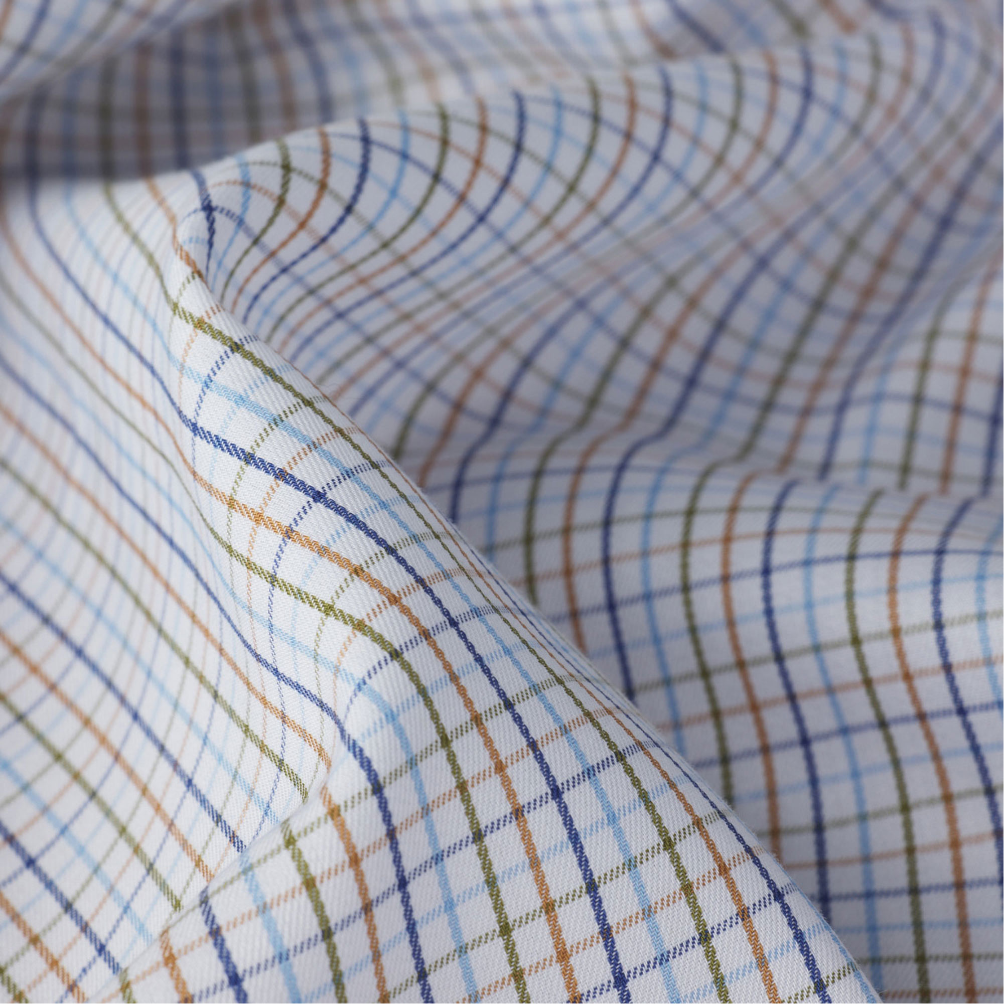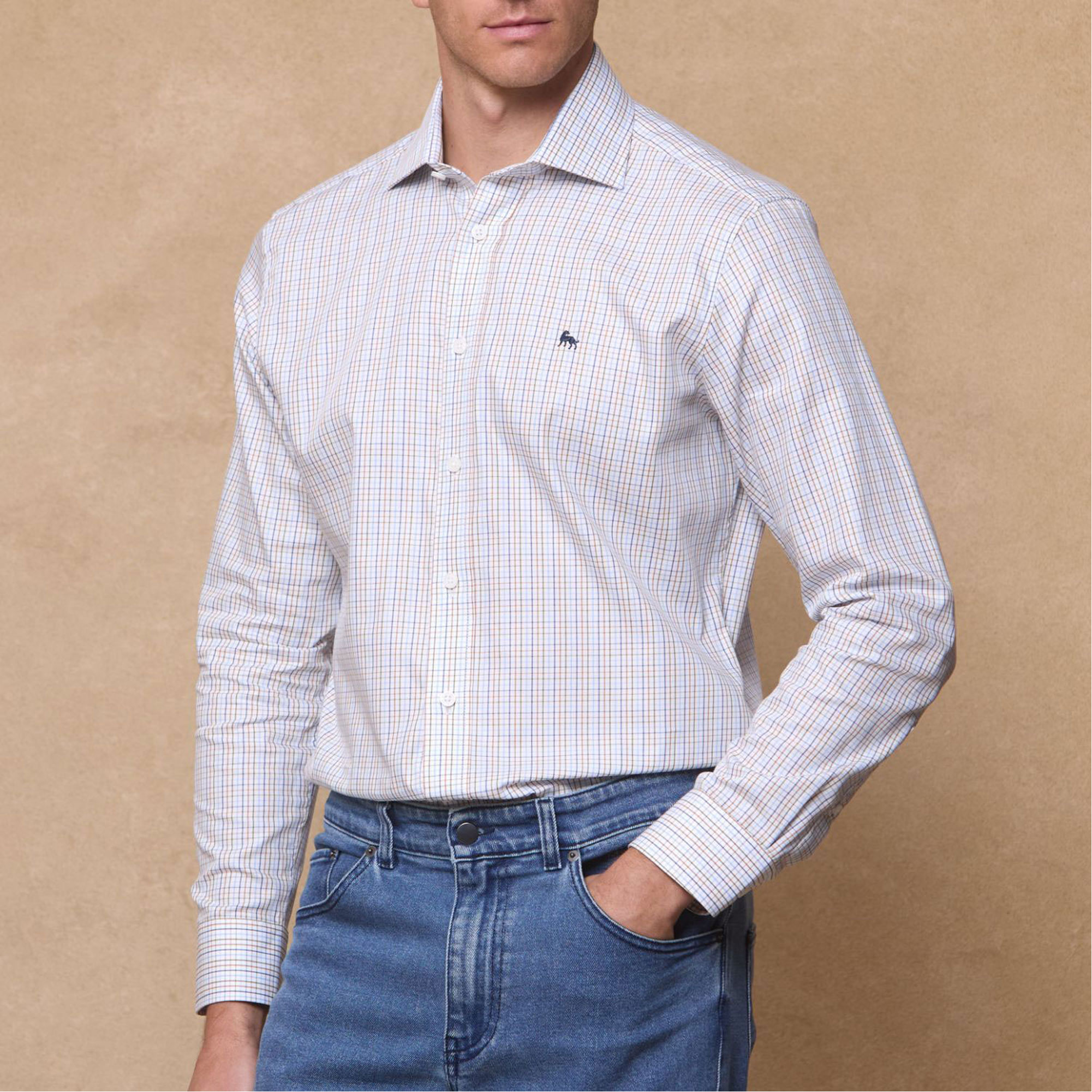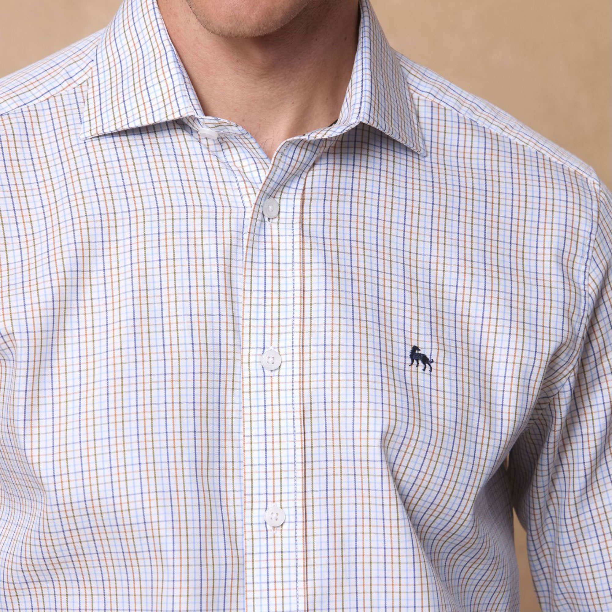 • Classic collar, removable collar bones, long sleeves, adjustable button cuffs, front button placket, curved hem, contrast Wolfhound detail, check finish
