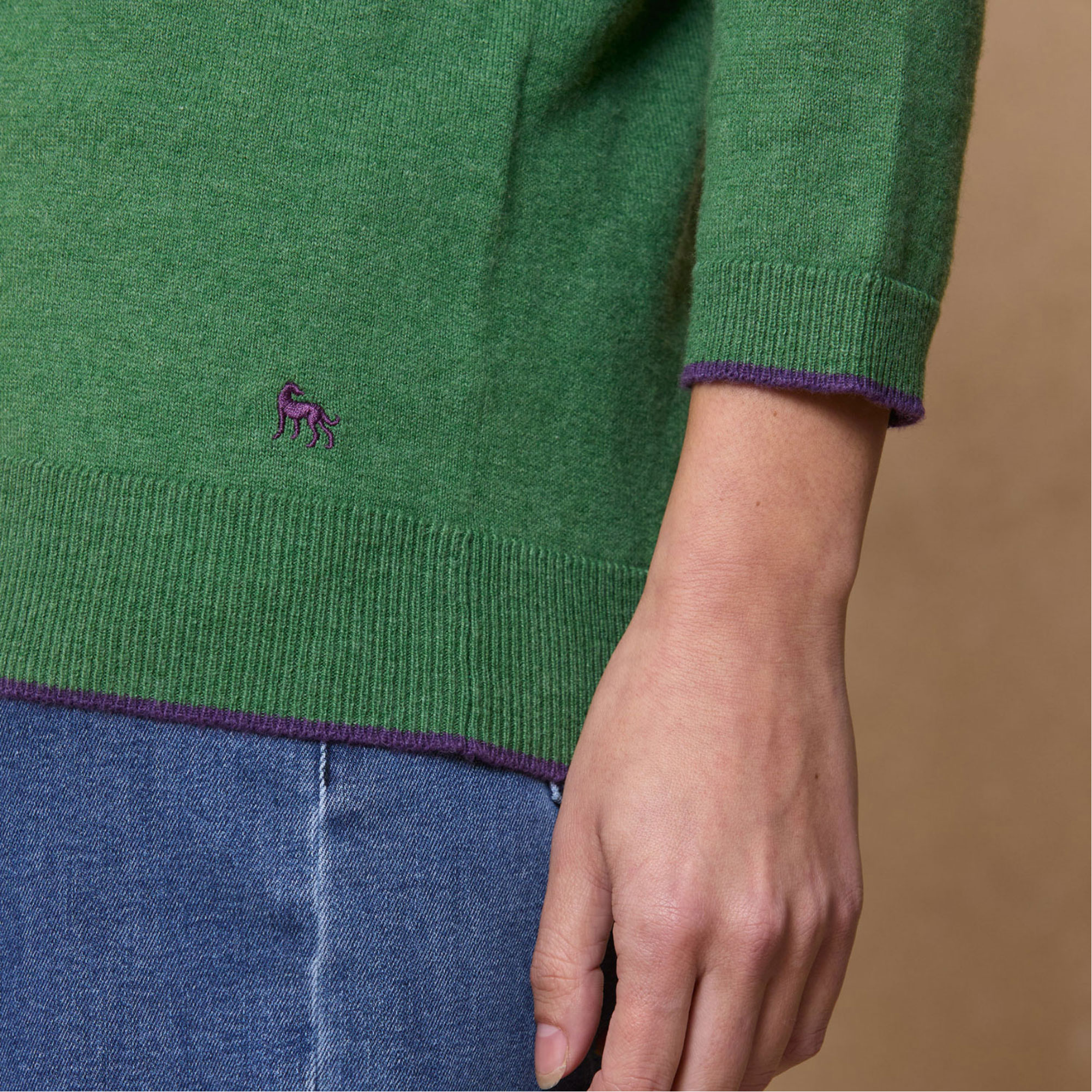 • Crew neck, long sleeves, straight hem, ribbed trims, logo detail, luxuriously soft, knit construction