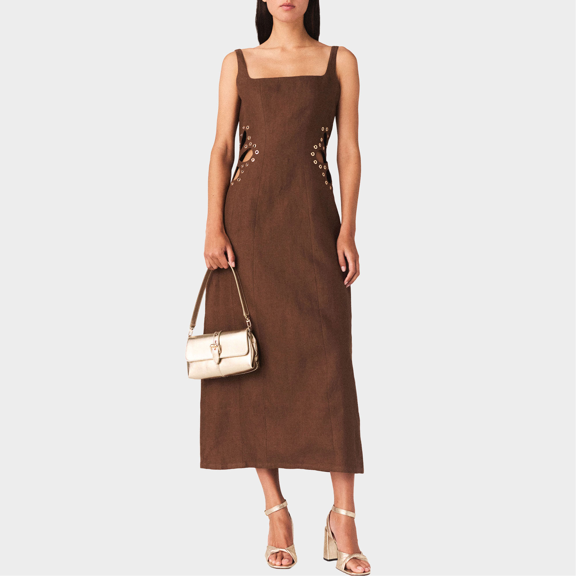 MAJE Linen Cut Out Flared Dress