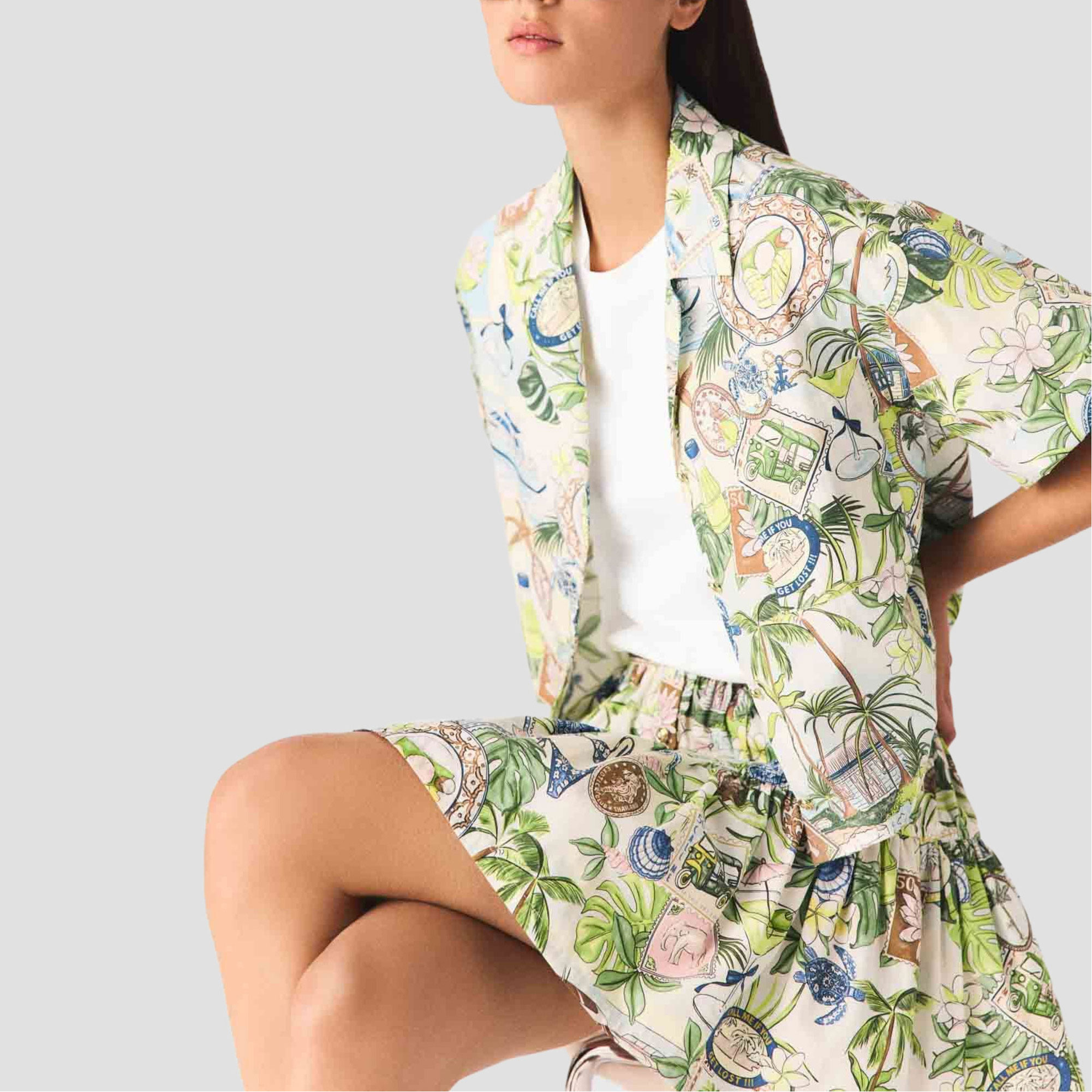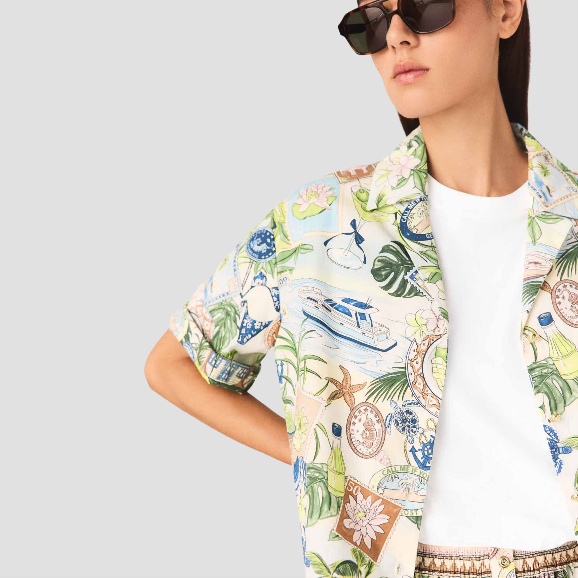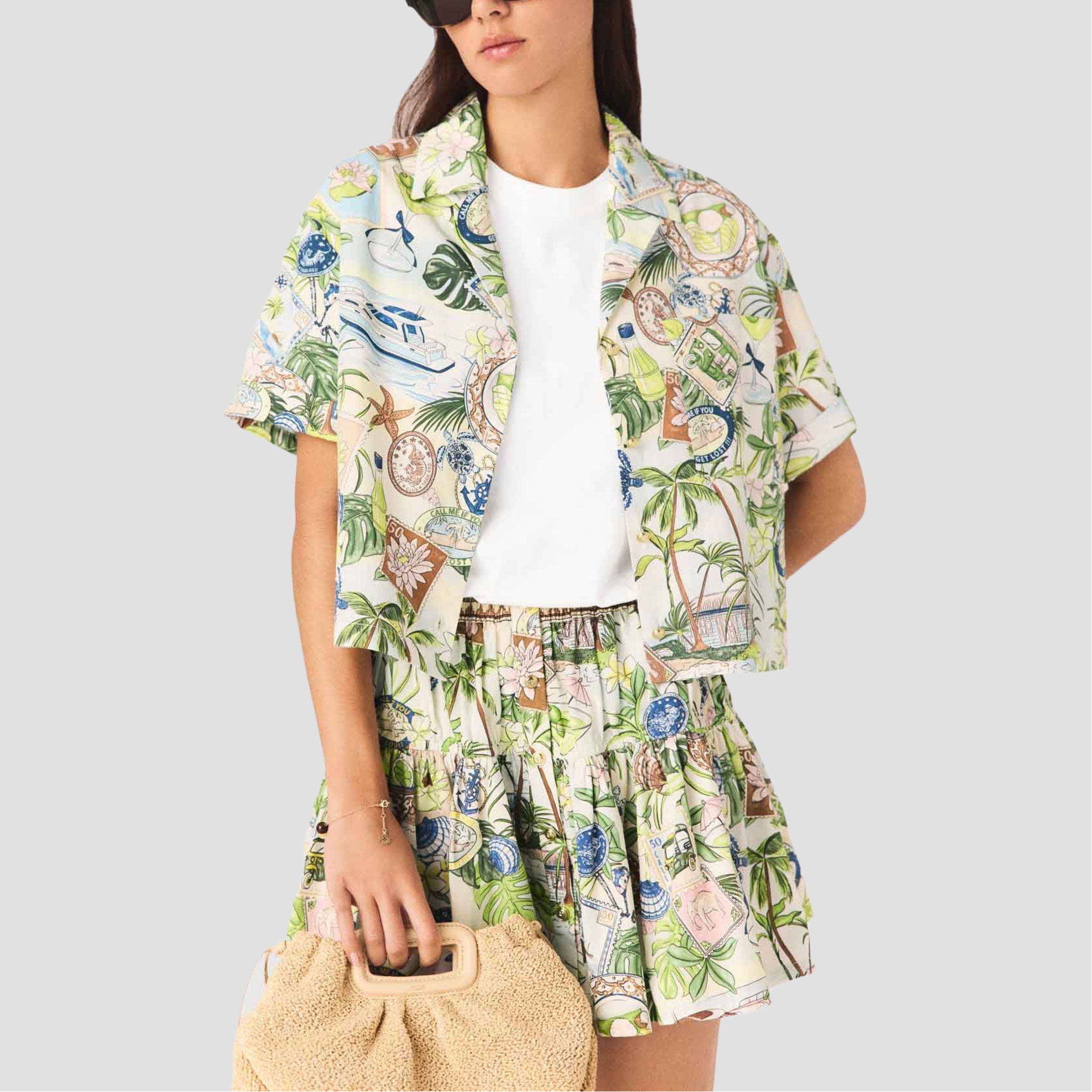 MAJE Postcard Cropped Casual Shirt