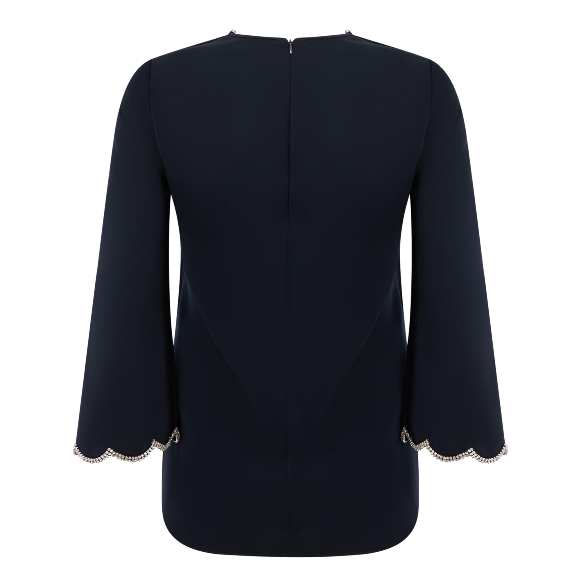• Long sleeves, scalloped neckline and cuffs with rhinestone embellishment, back zip-fastening closure, tonal stitching, smooth fabric