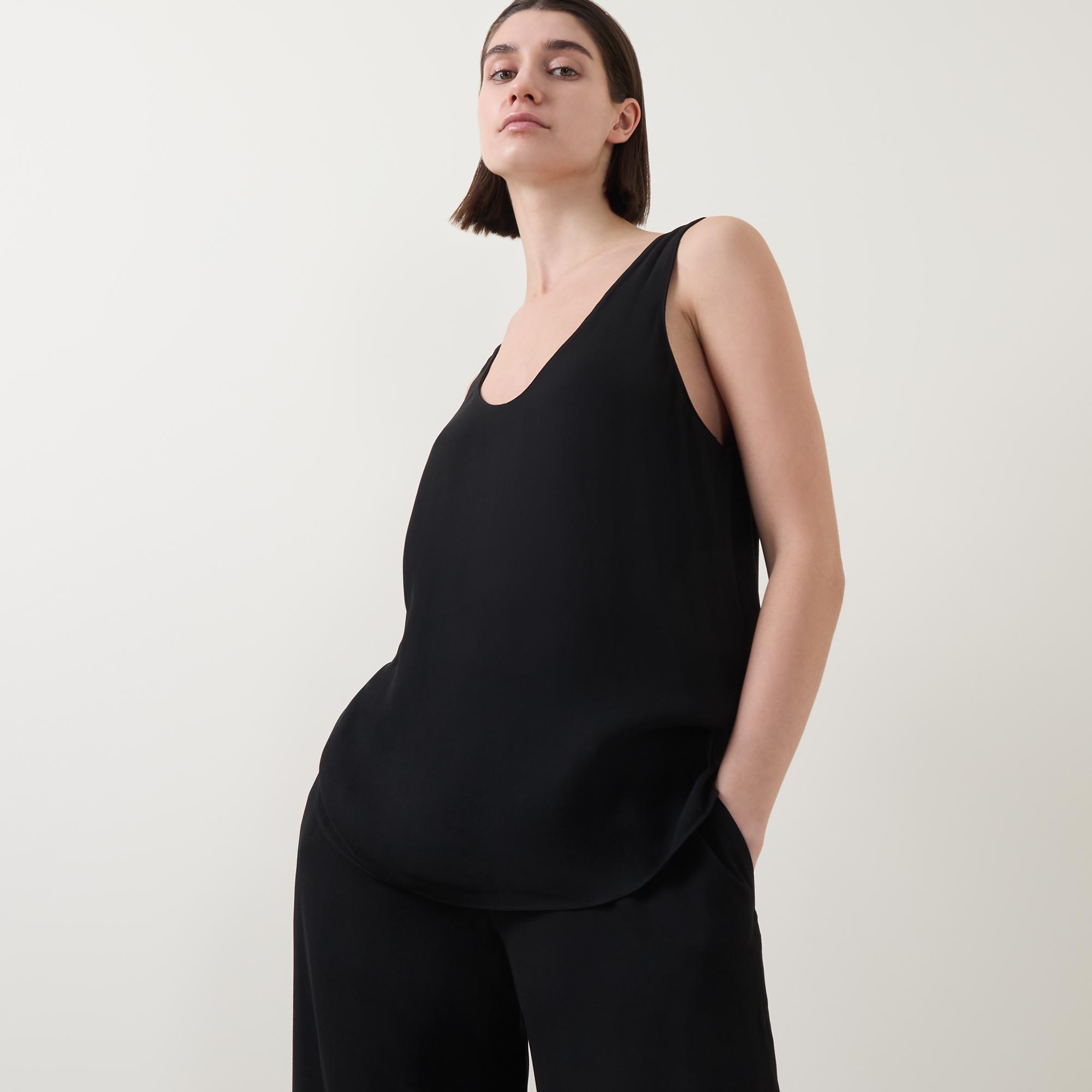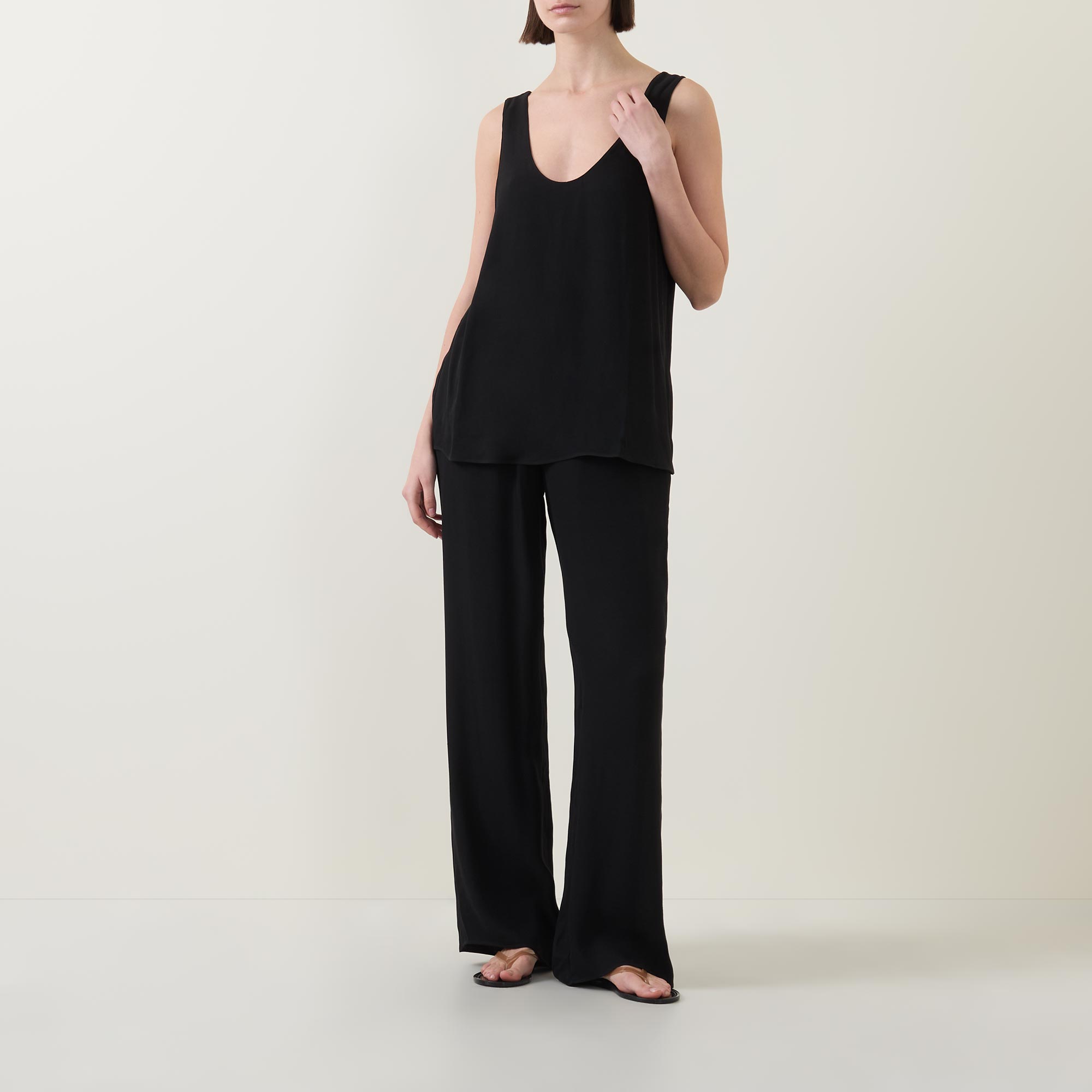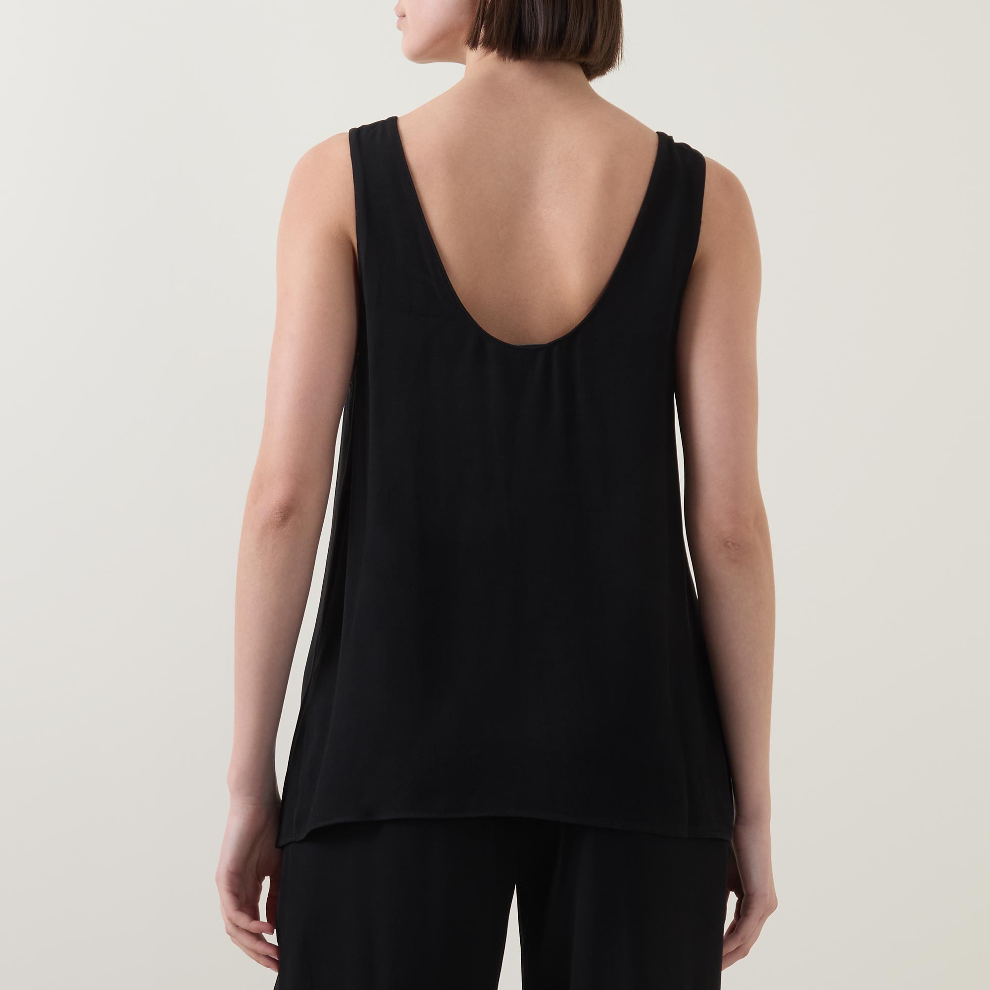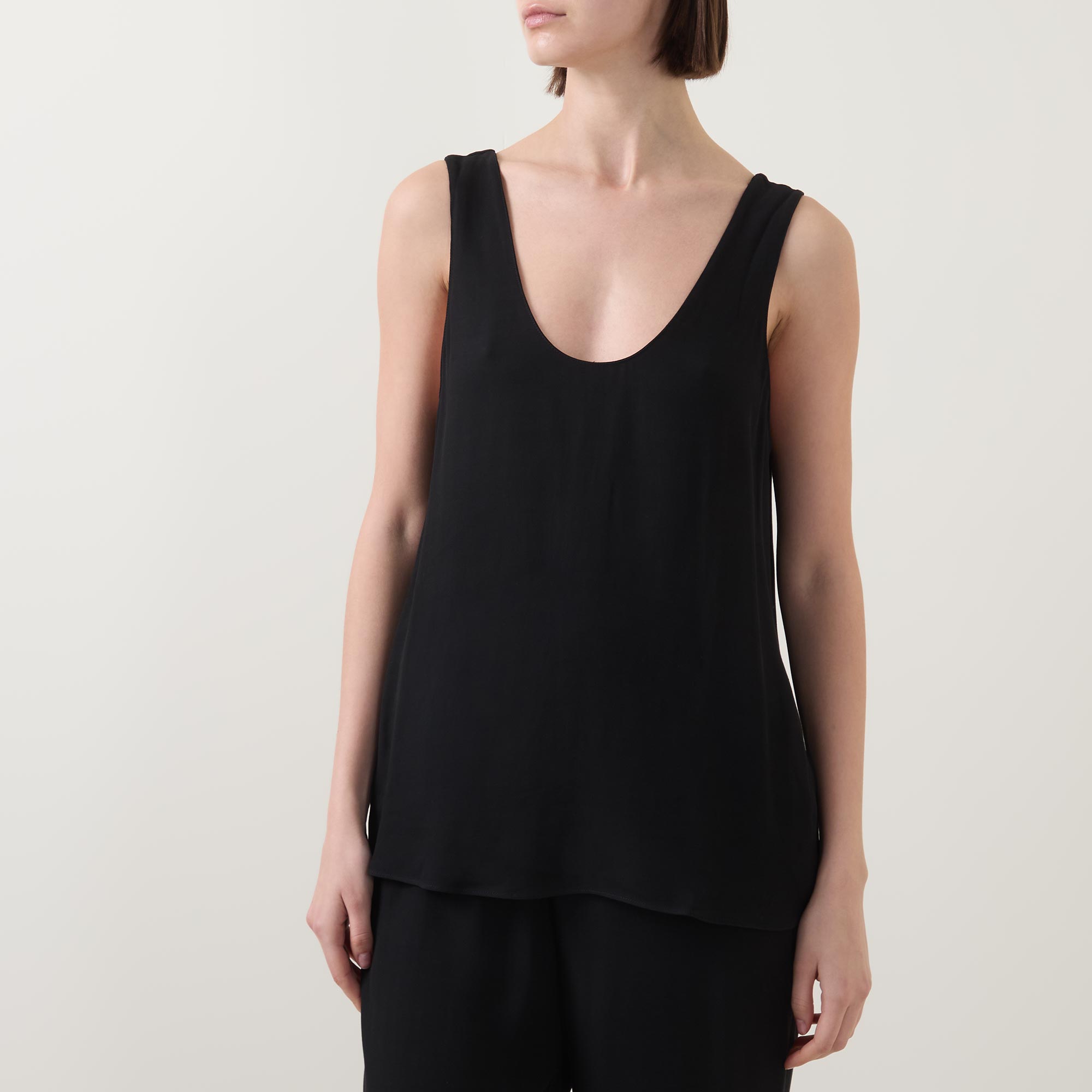 • Scoop neckline and back, sleeveless, straight hemline