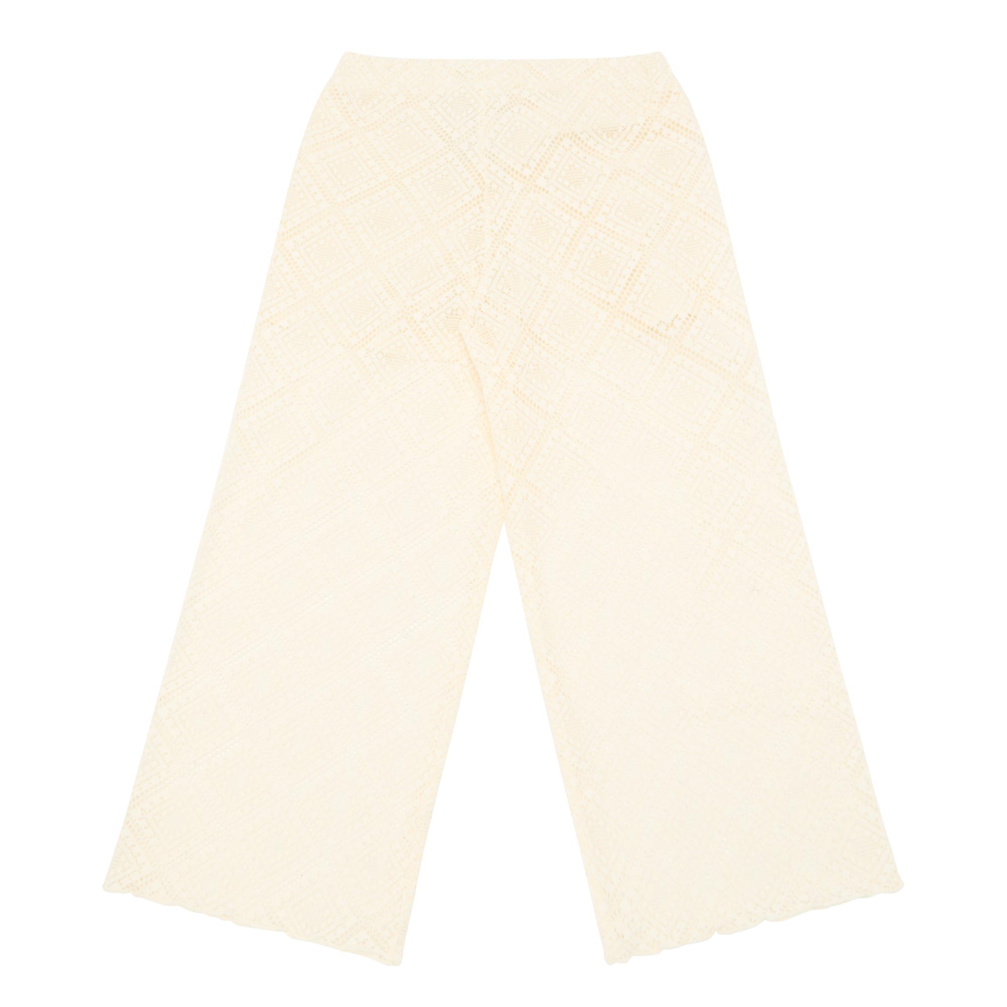 - Elasticated waistband with drawstring adjustable fit, wide-cut legs, part-lined, crochet structure