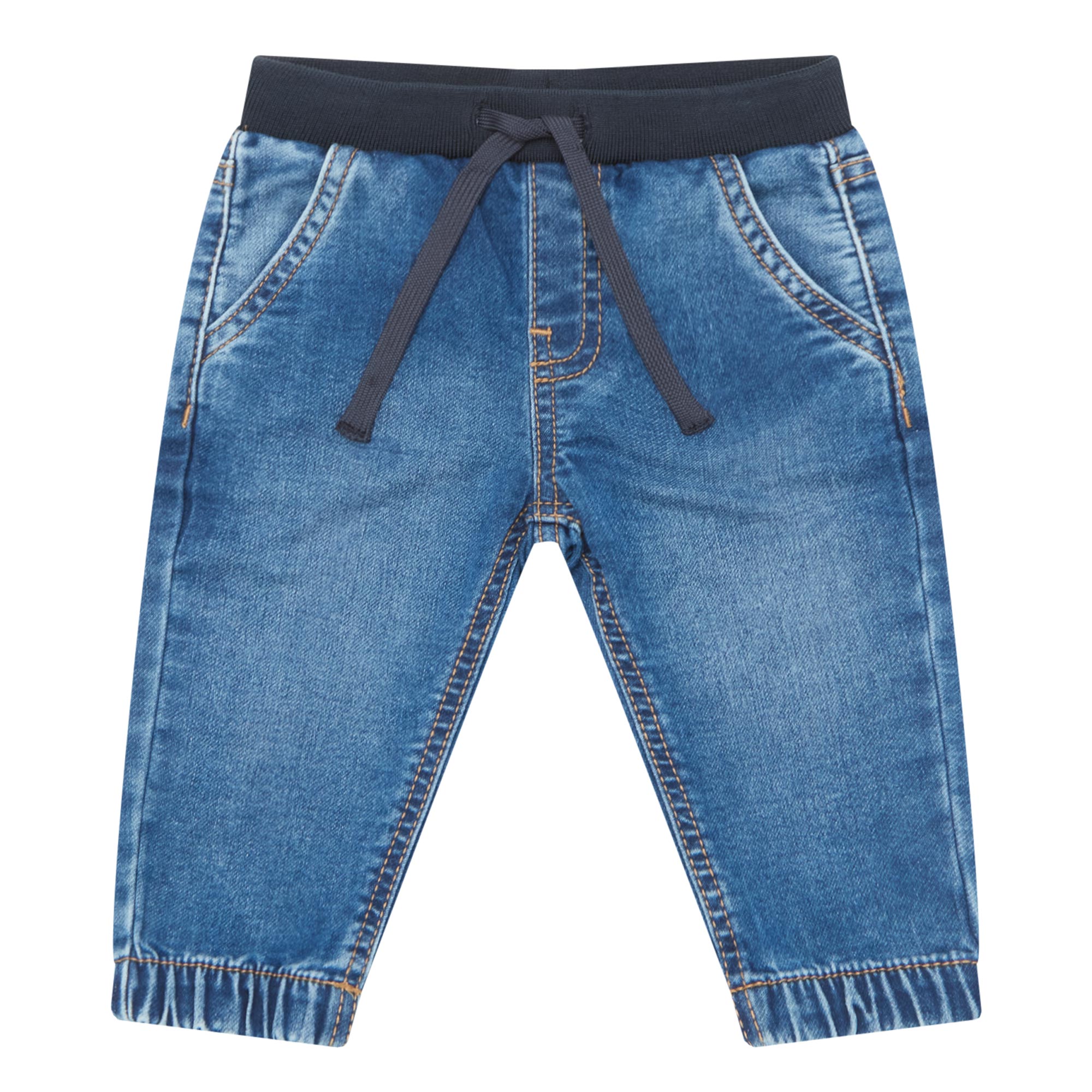 - Elasticated waistband with drawstring adjustable fit, side entry pockets, rear patch pocket, cuffed style, faded details