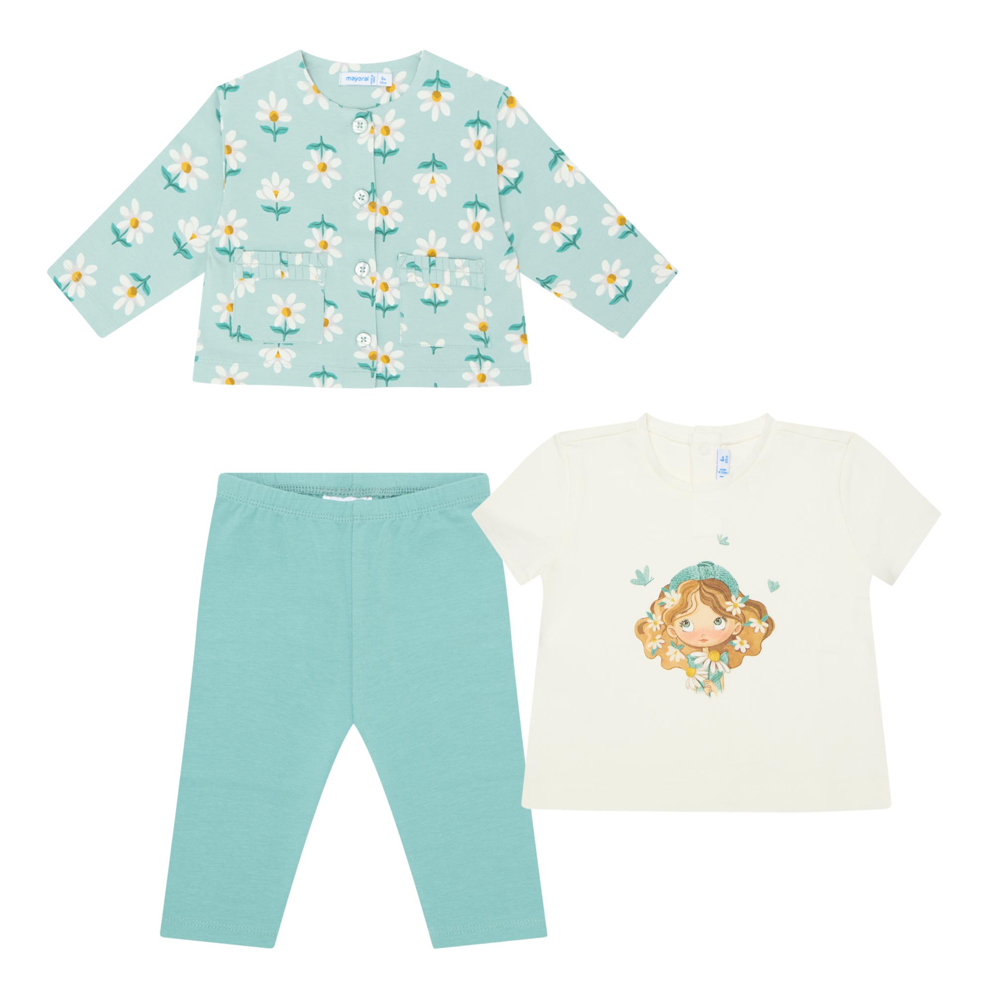 MAYORAL Floral Cardigan, Top & Leggings Three-Piece Set