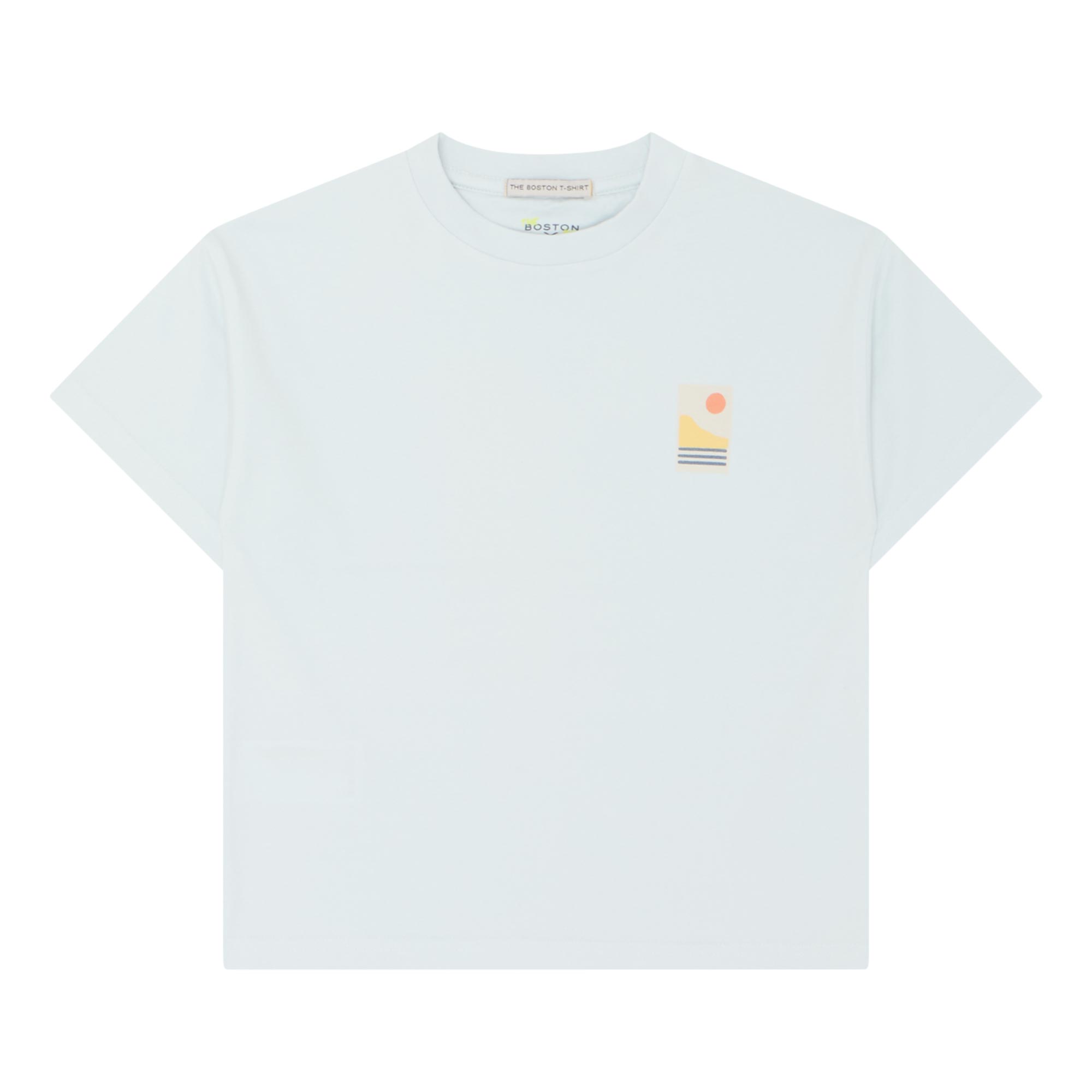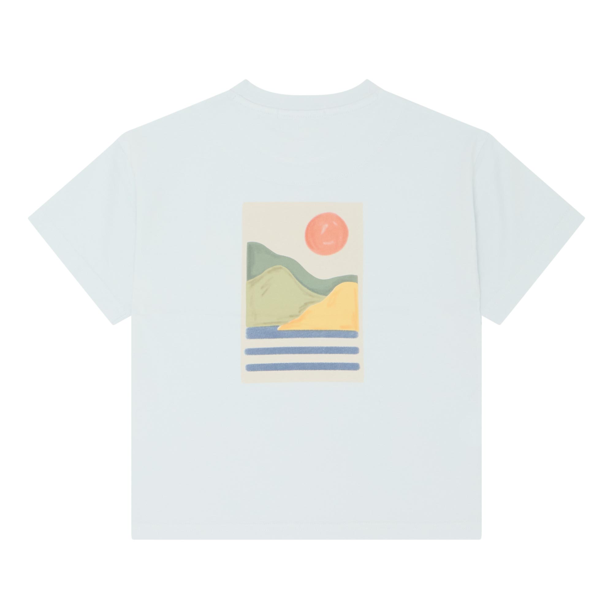 - Round neckline, short sleeves, straight hemline, sunset graphic print at chest and back