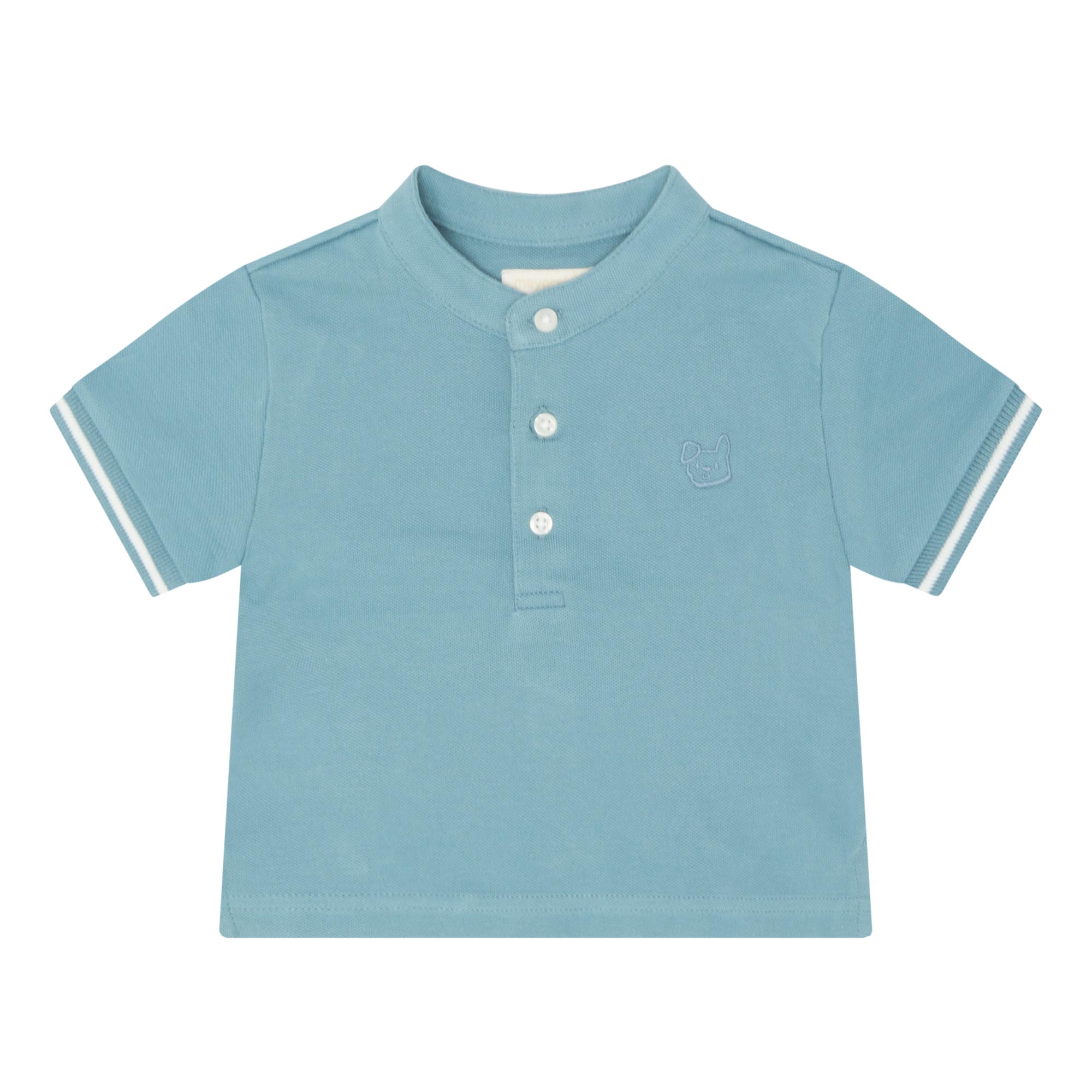 - Band collar, button fastening, short sleeves, tipped cuffs, straight hemline, embroidered dog detail