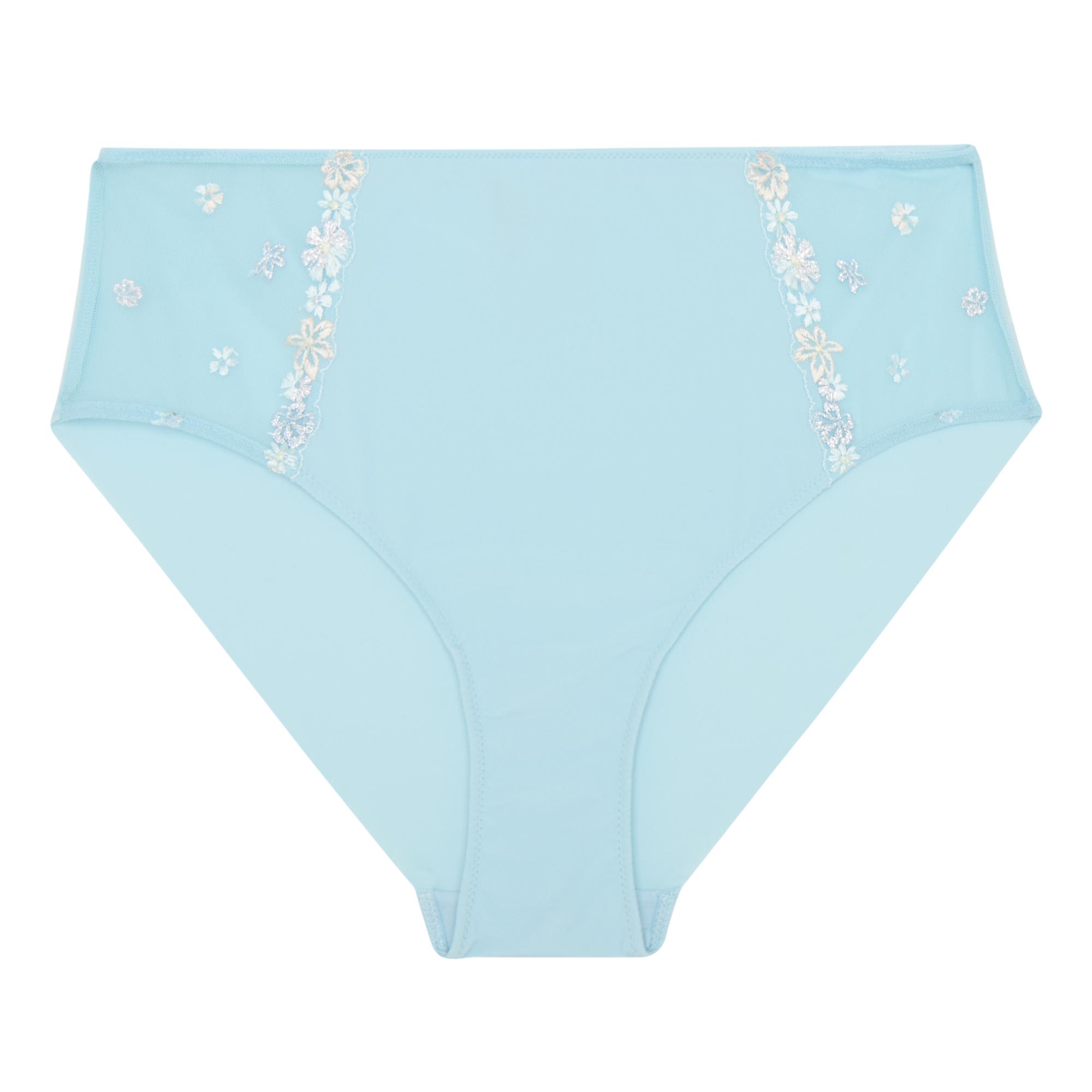• Low-rise, flat waistband, seamless look, delicate tulle embroidery on the side, full coverage