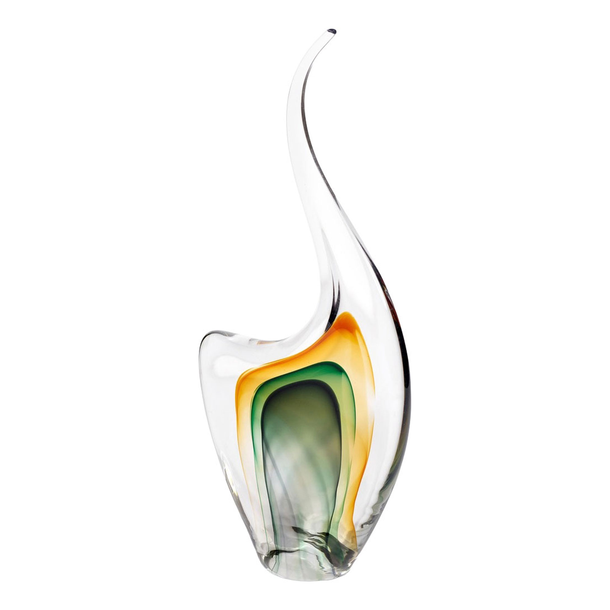 The Eliza Vase from Mindy Brownes is a decorative piece shaped with a tall slender silhouette. Featuring clear and amber tones that blend together in a gentle sweep of colour, the piece portrays a sense of movement and fluidity. Placed on a console table, mantelpiece, or sideboard, the Eliza Vase catches the light beautifully and becomes a subtle focal point in the room. Its refined presence allows it to complement both contemporary and classic interiors while adding a touch of artistic expression.