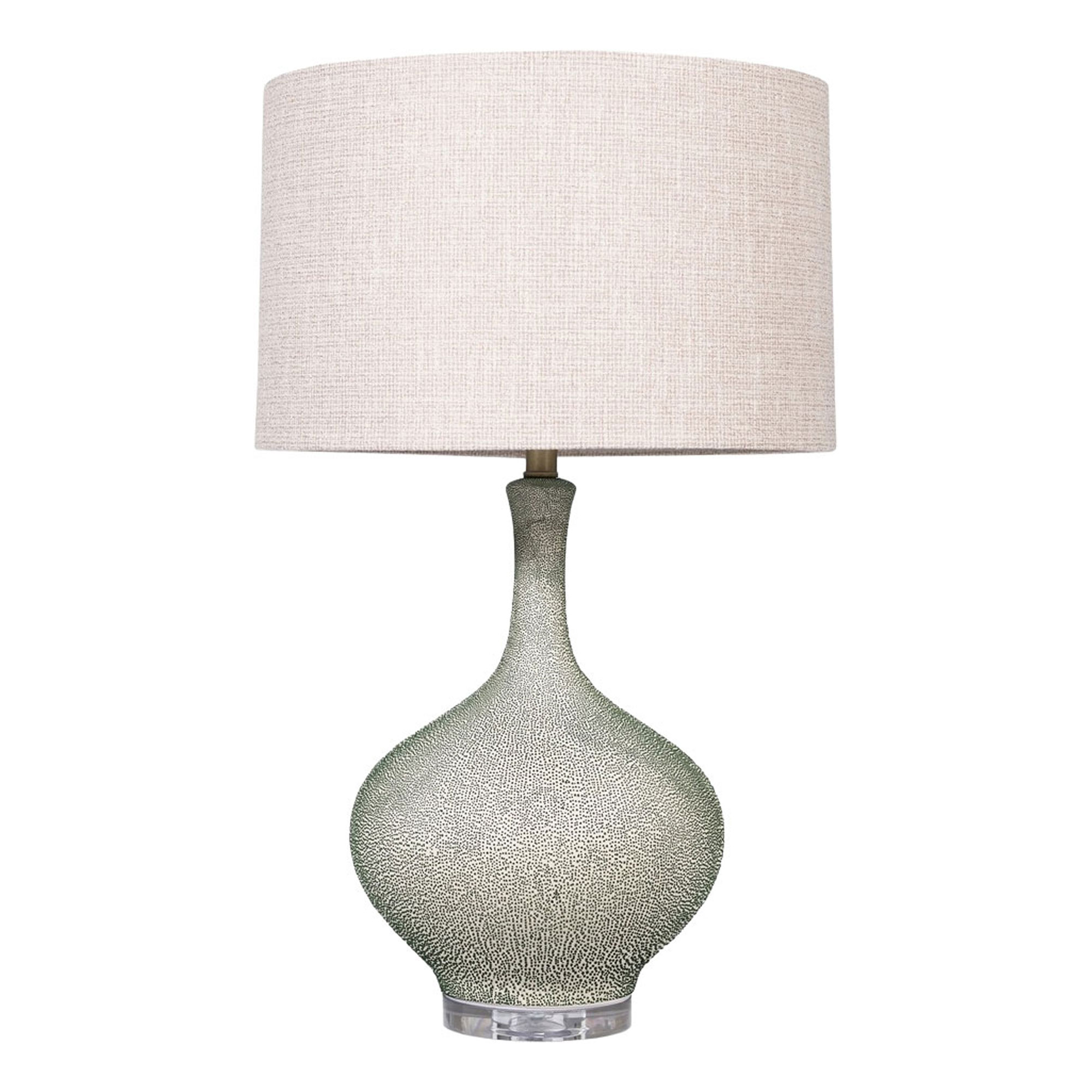 The Jasmine Lamp from Mindy Brownes stands tall with an elegant, elongated silhouette that draws inspiration from hand blown glass forms. The soft green tone of the base combined with its delicate textured finish creates a feeling of calm refinement. A neutral linen shade rests above the base and allows the lamp to cast a warm even light that enhances both intimate and open spaces. Whether placed on a hallway console or used as a pair beside a sofa this lamp brings a sense of serene sophistication.