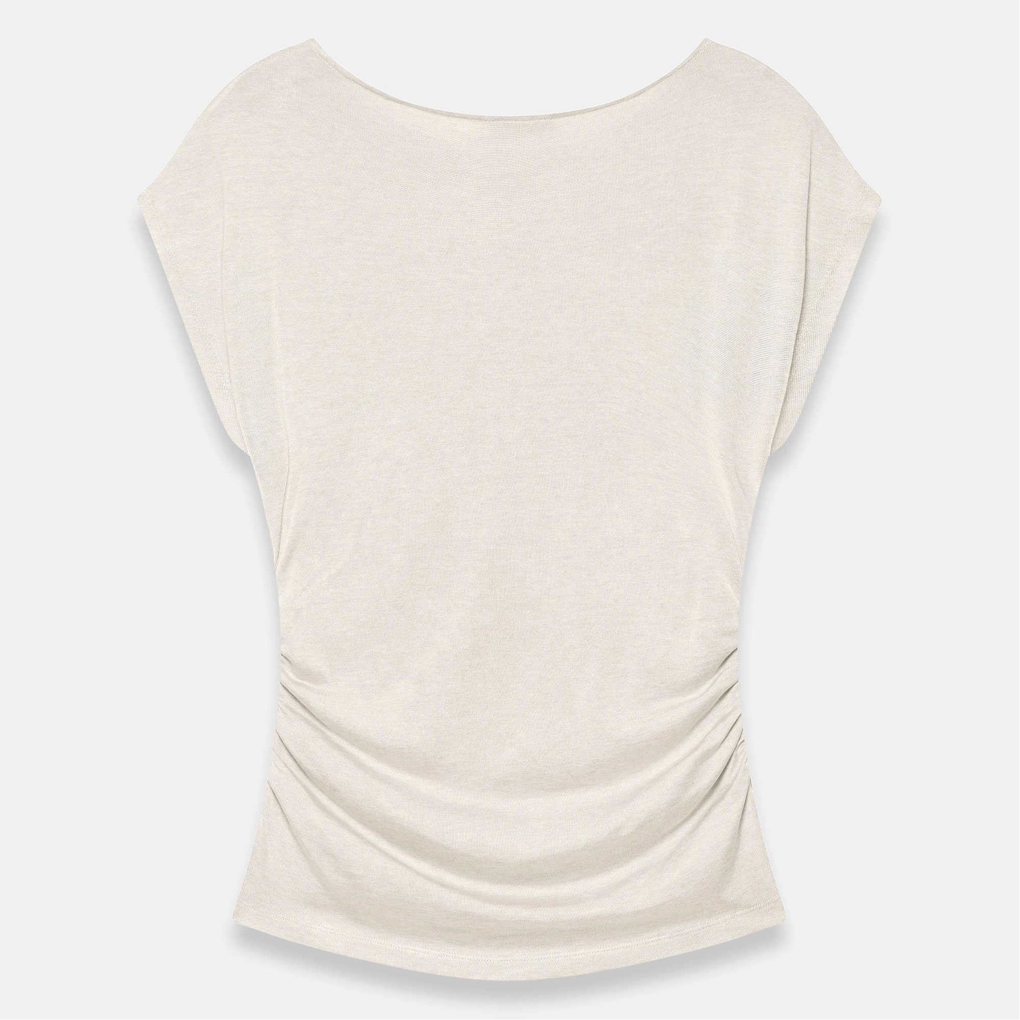 • Crew neckline, cap sleeves, drape detailing