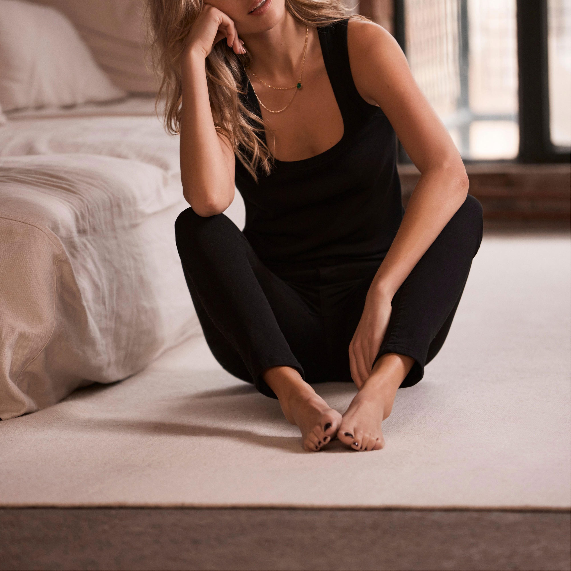 - Sleeveless, ribbed, square neckline