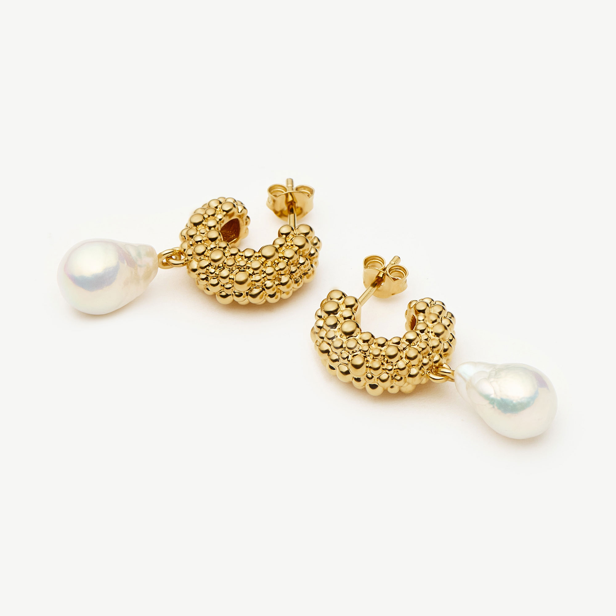 - Charm style, hoop silhouette, drop pearl charm, post and butterfly back fastening