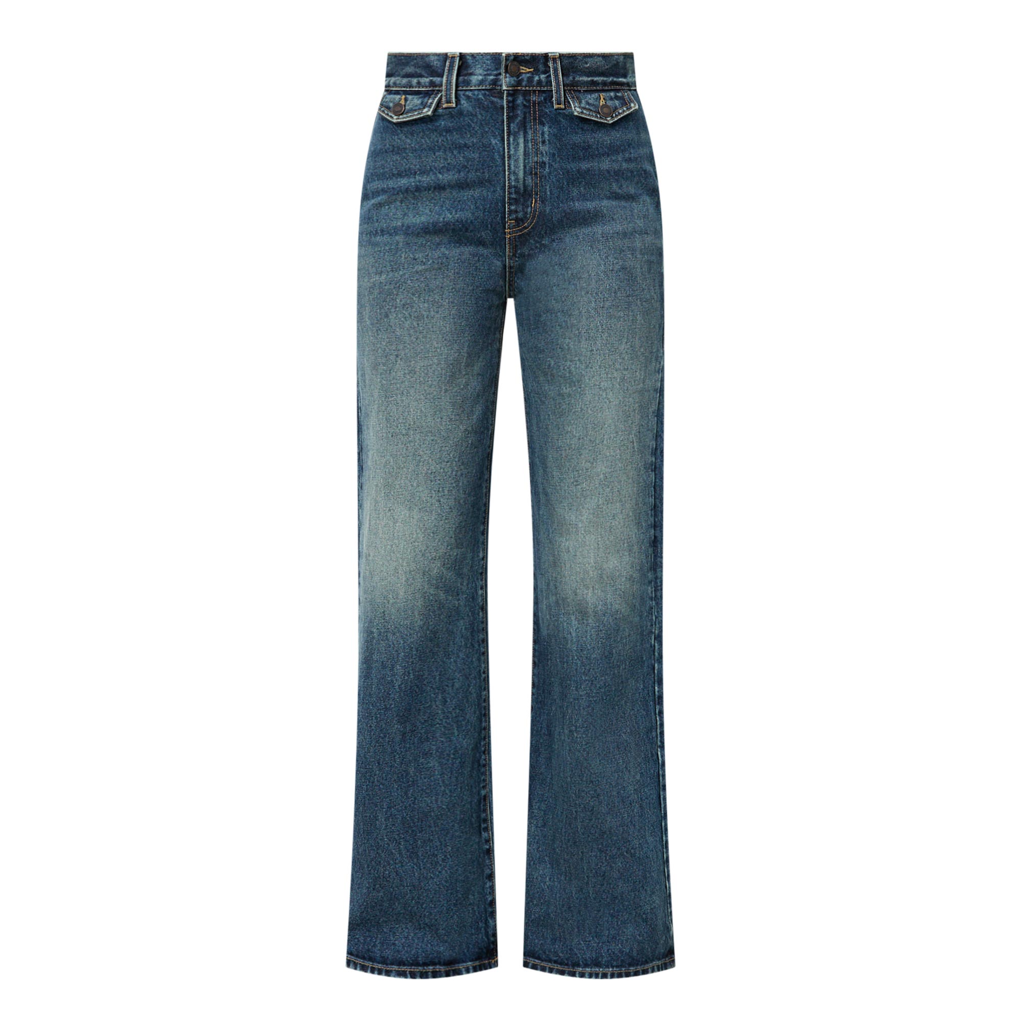 Classic essentials feature across the SS26 collection from Nili Lotan, such as the Edira jeans. Cut from a non-stretch crosshatch denim, it features flap pockets to the front and patch pockets to the rear, falling to a flared cut and finished with whiskering and faded details.