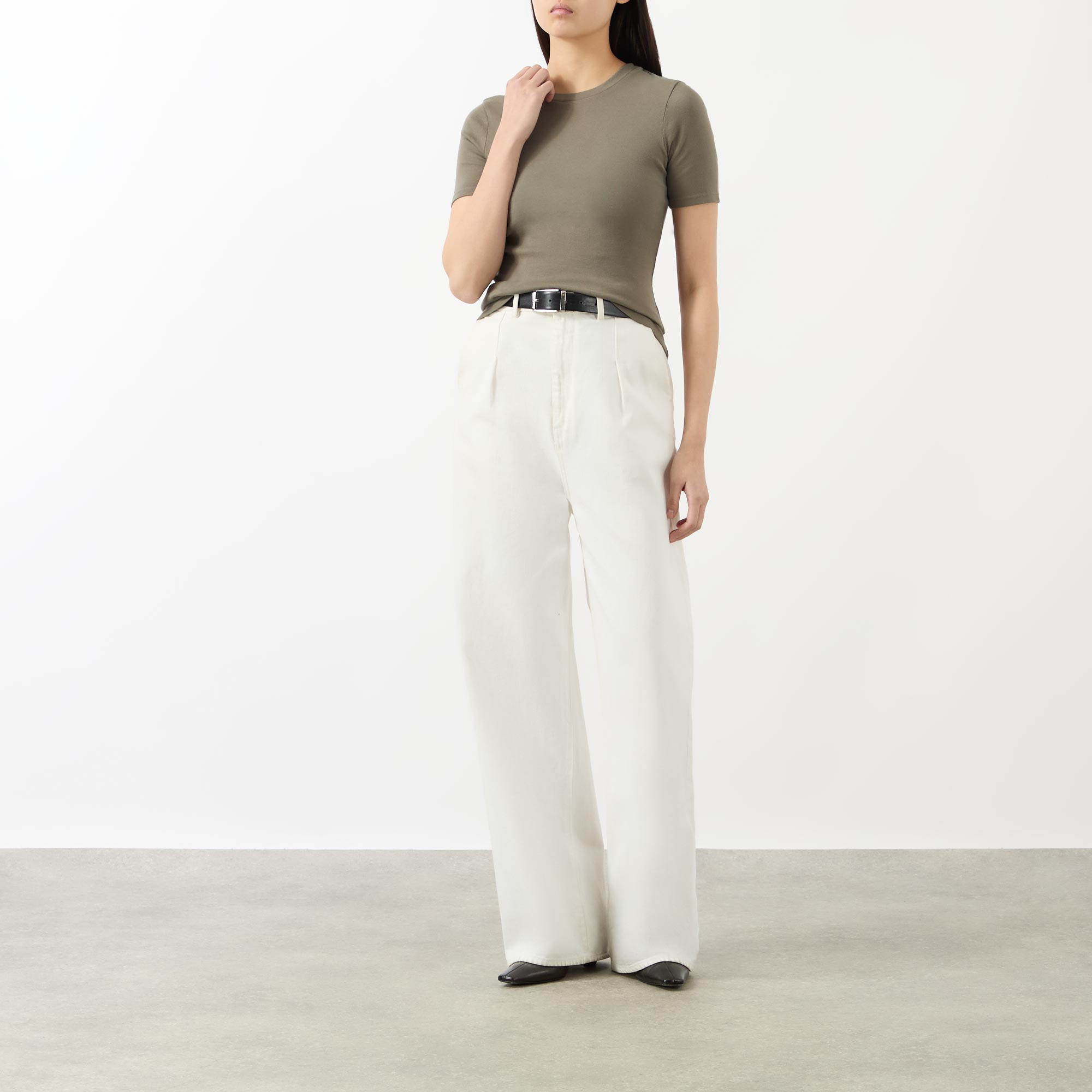 Refined minimalism underpins the SS26 collection from Nili Lotan, seen in the design of the Elin t-shirt. Cut from a lightweight fabric to a slim fit, it features a round neckline and short sleeves, finished with top stitch details.