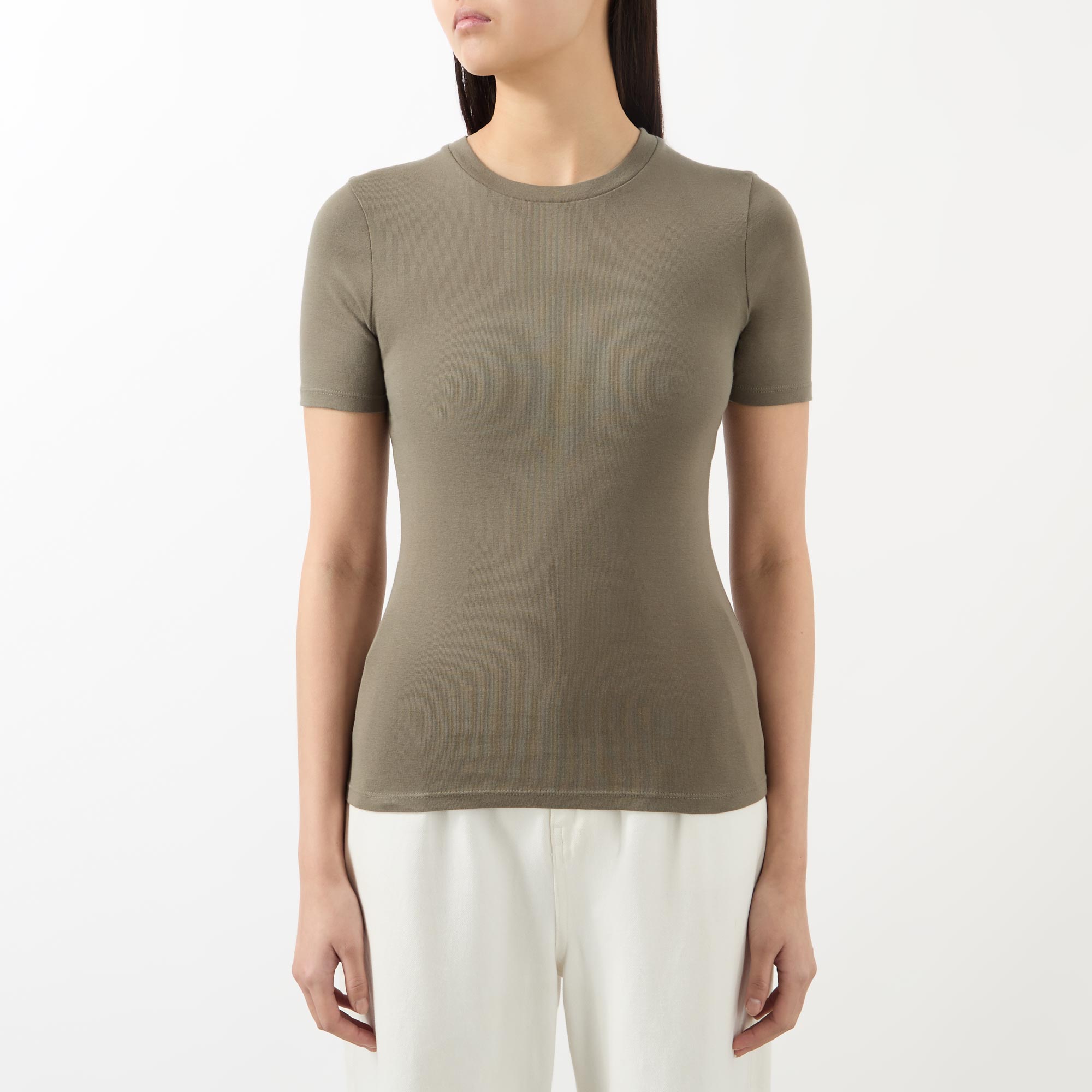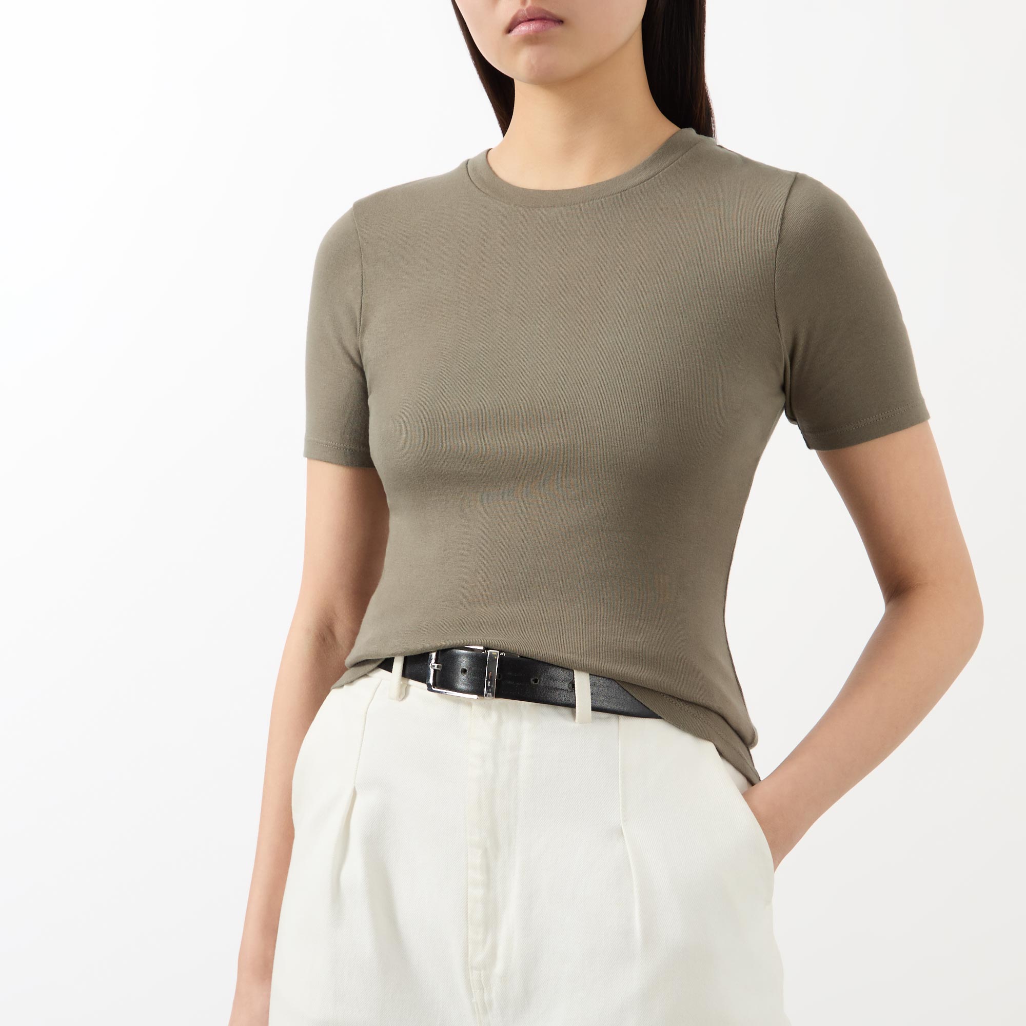 • Round neckline, short sleeves, straight hemline, top stitch details, lightweight fabric