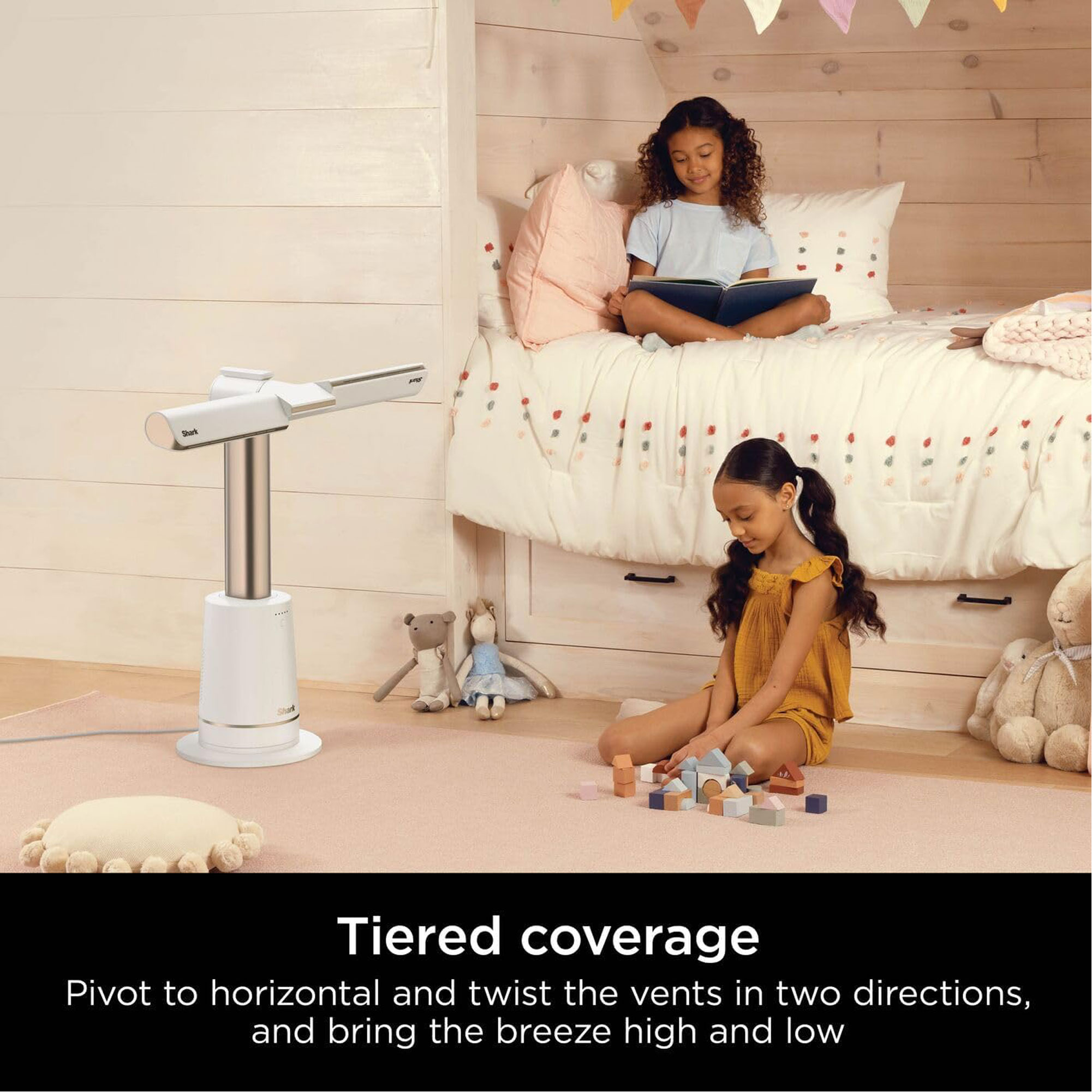 - Pivot vertically for focused cooling with a compact footprint, and horizontally for widespread air coverage in Air Blanket Mode.