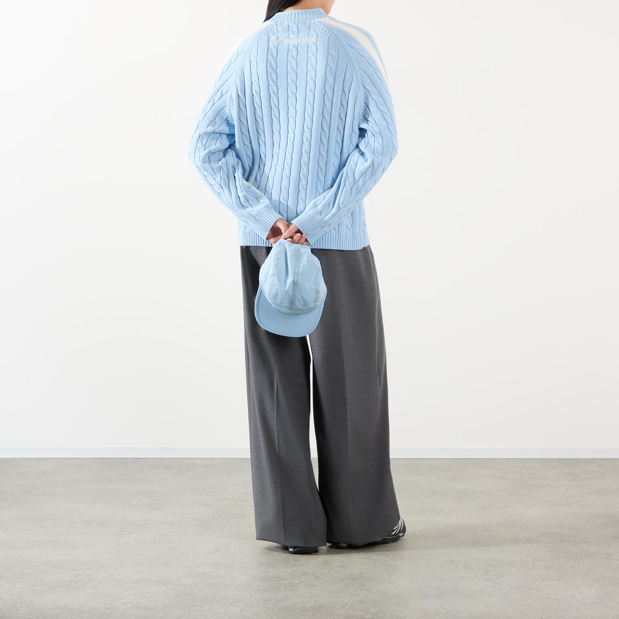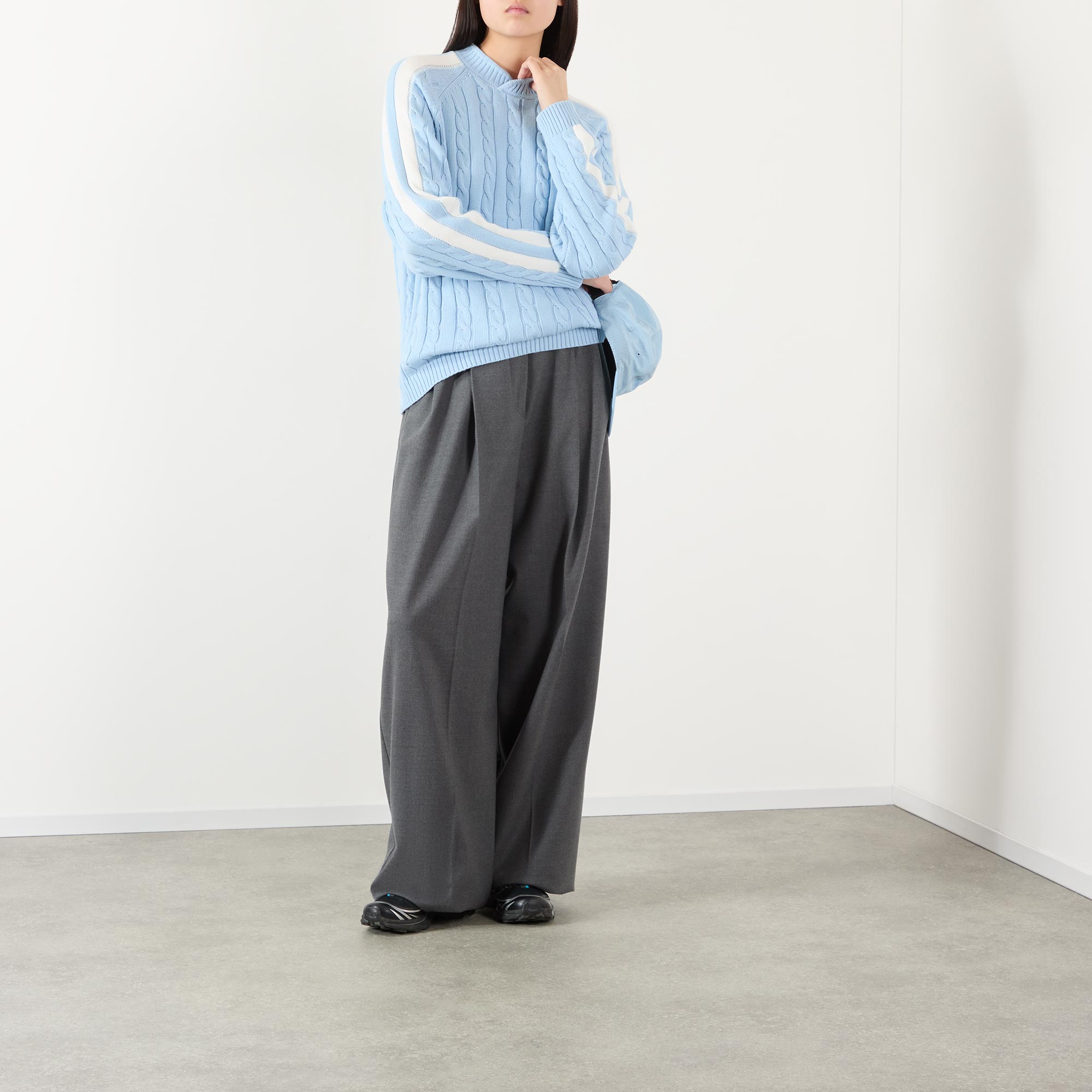 PELLADOR Logo Side Stripe Cable Knit Sweater